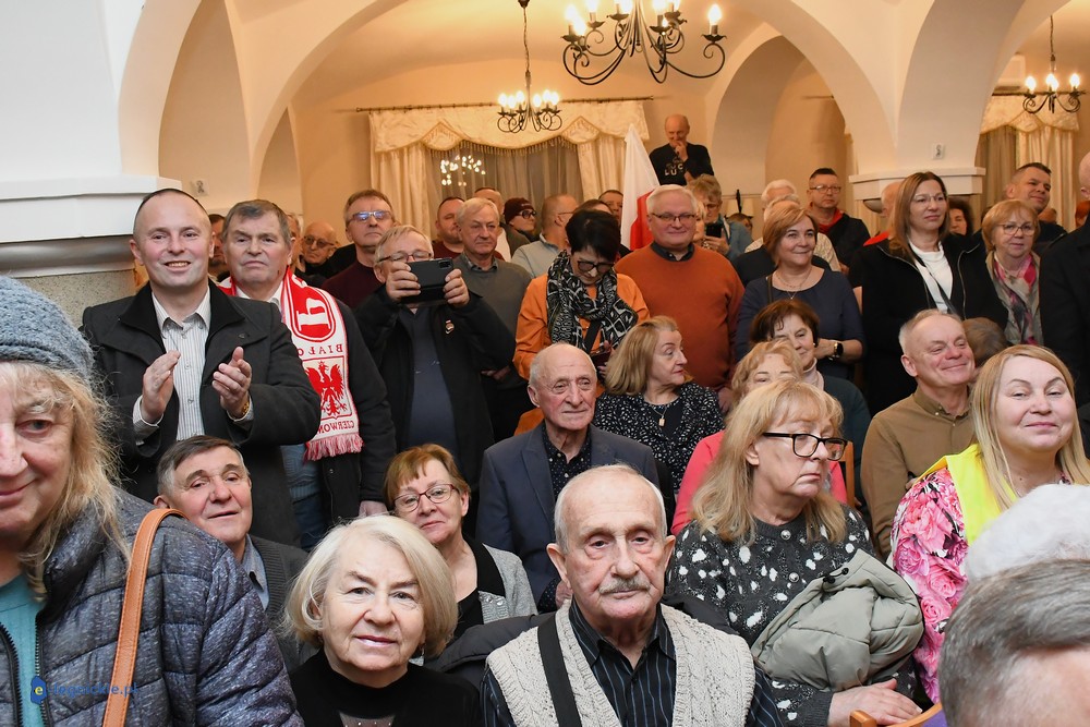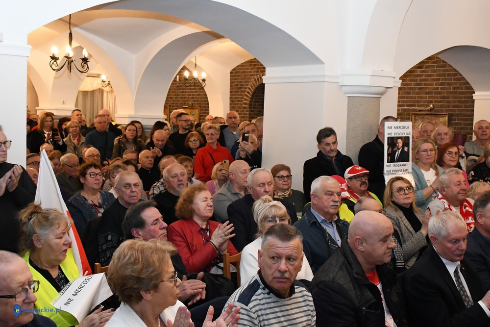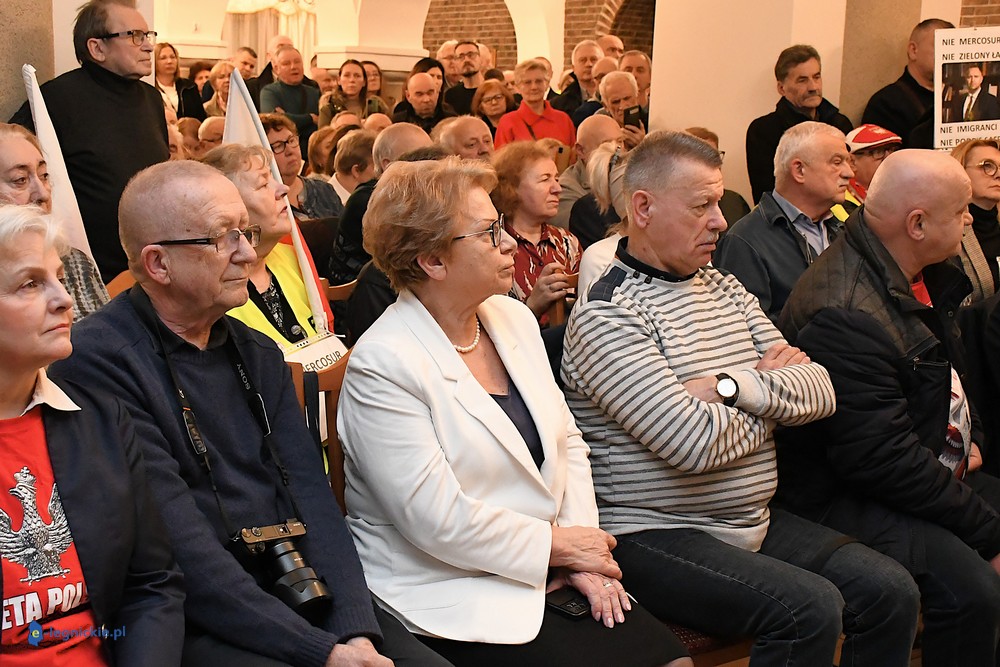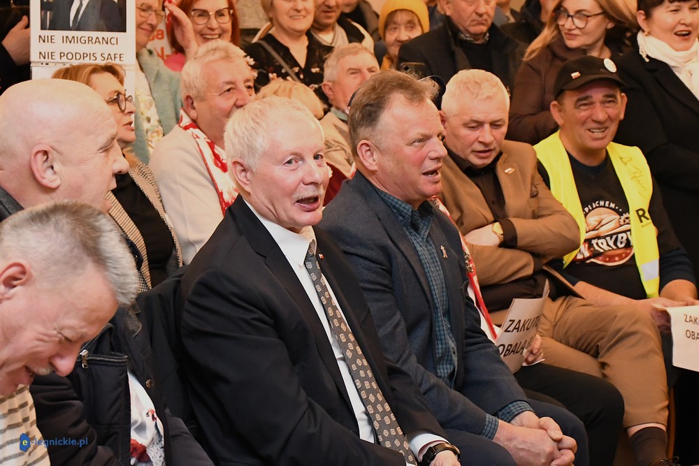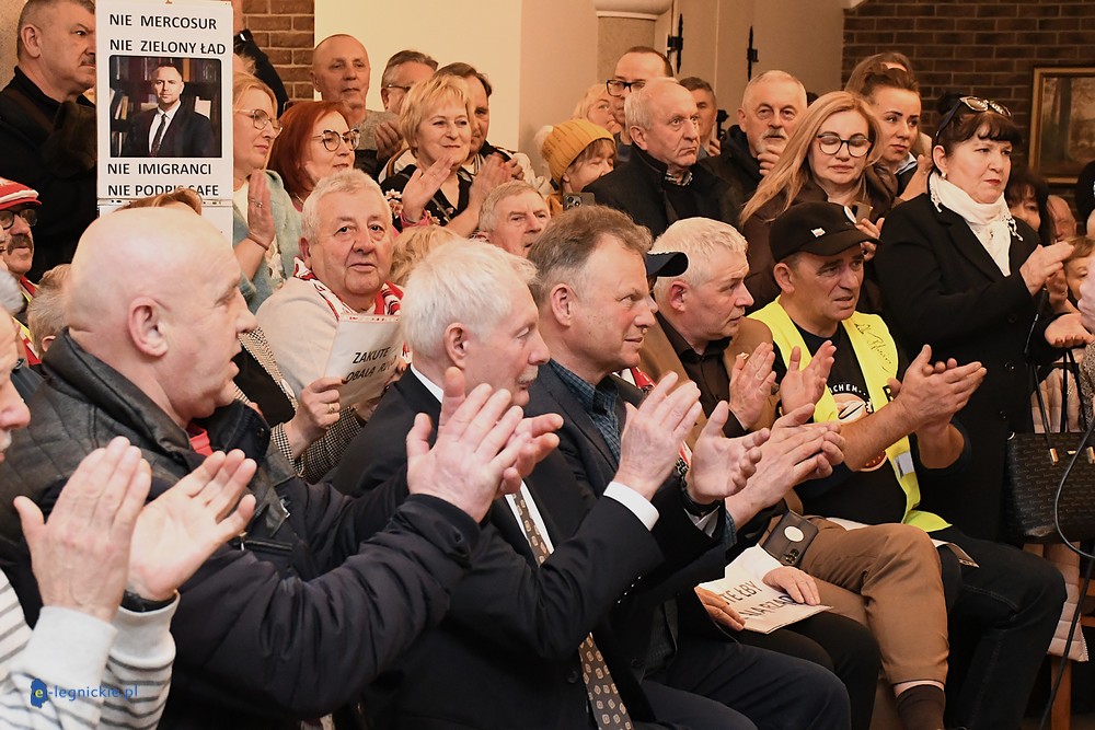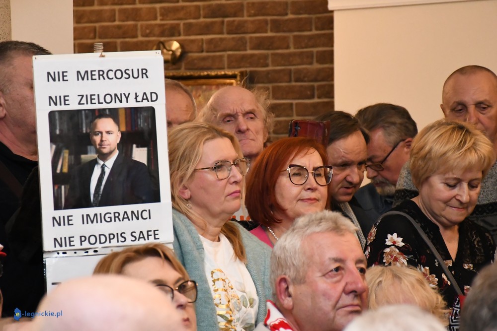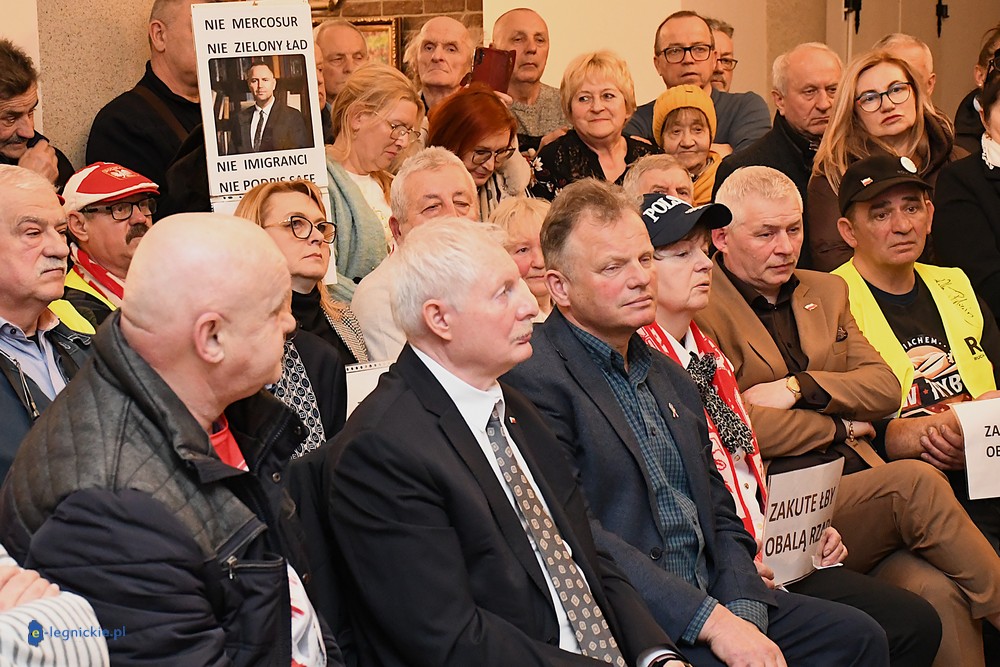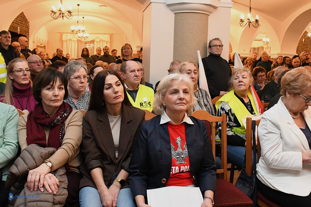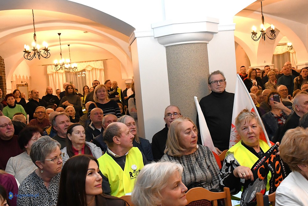 Tymczasem Sala Magnolia wypełniła się po brzegi. Byli prawicowi radni miejscy, politycy spoza Legnicy, byli parlamentarzyści i ponad 600 osób. Tłok, ścisk, duchota trudna do wytrzymania... Zapytaliśmy uczestników spotkania, co sądzą o proteście na zewnątrz lokalu?