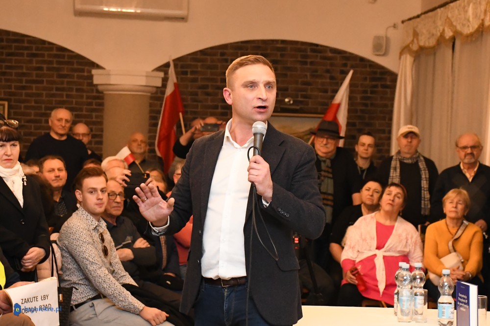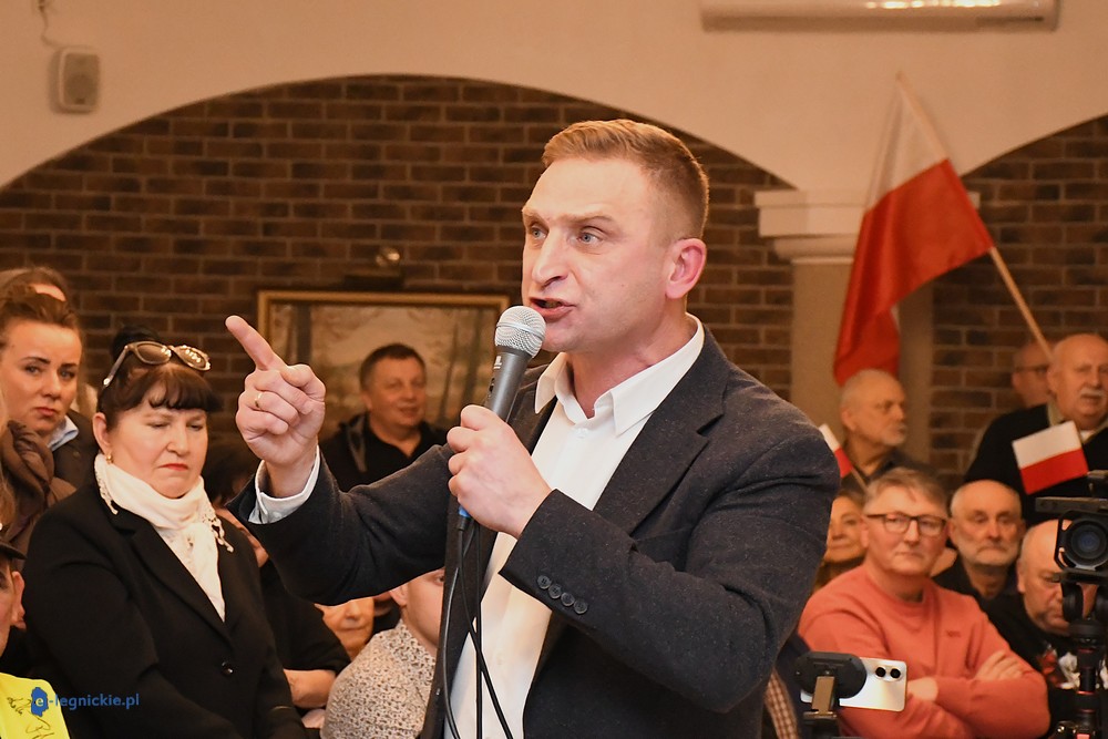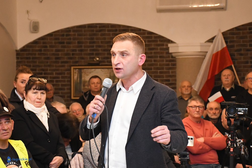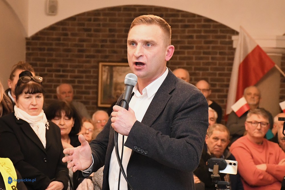 LEGNICA. Transparenty, megafony, protest, policja i pełna sala. Spotkanie z Robertem Bąkiewiczem w Legnicy wywołało wybuch skrajnych emocji. Bardzo duże emocje towarzyszyły spotkaniu Roberta Bąkiewicza z mieszkańcami w Sali Bankietowej Magnolia. Przed budynkiem zorganizowano protest wobec wizyty lidera między innymi Ruchu Obrony Granic.
