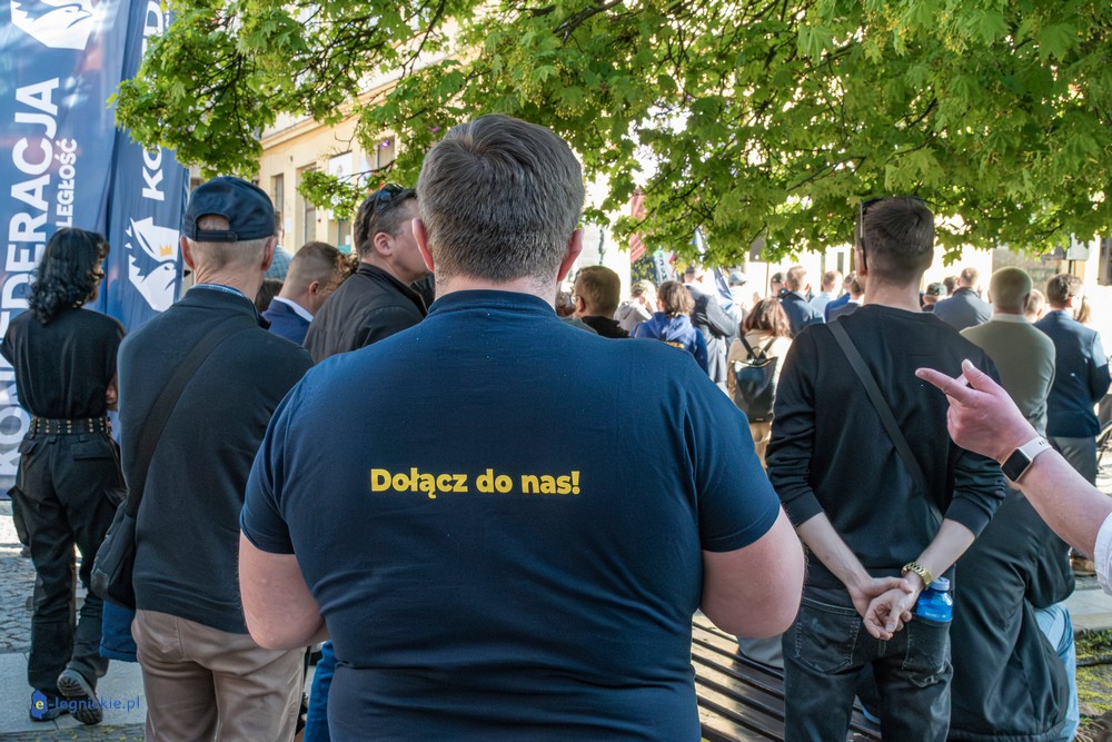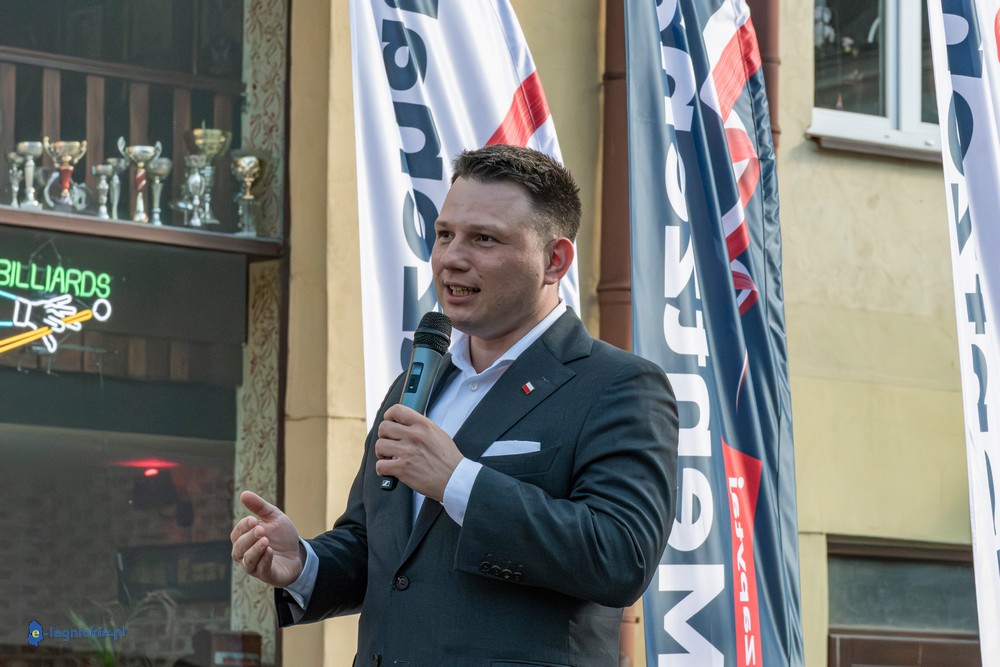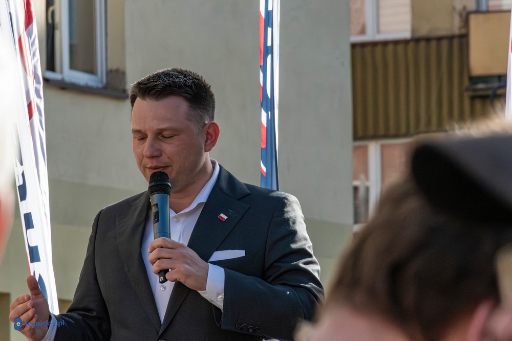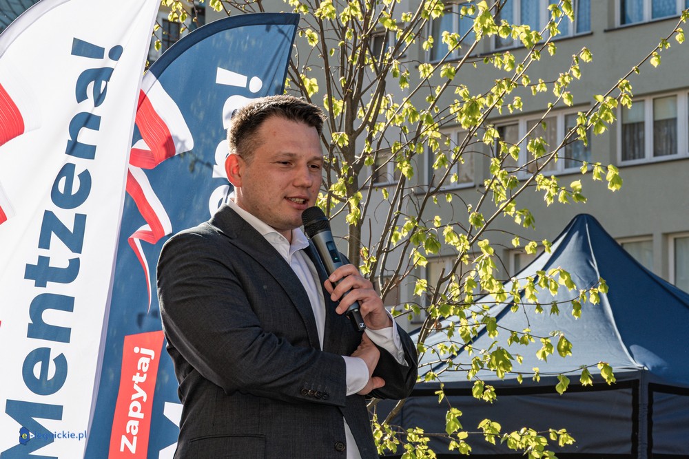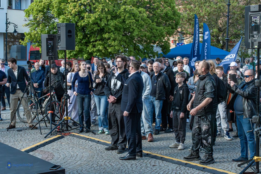 LEGNICA. Około 150 osób przyszło w środowe popołudnie na Rynek, by spotkać się z Sławomirem Mentzenem, liderem partii "Nowa Nadzieja". Otwarte spotkanie w formule Q&A rozpoczęło się o godz. 17:00 i od początku było dynamiczne – pytania sypały się jedno po drugim. Organizatorzy zadbali też o uczestników – przed wydarzeniem i w jego trakcie serwowano gorącą grochówkę.