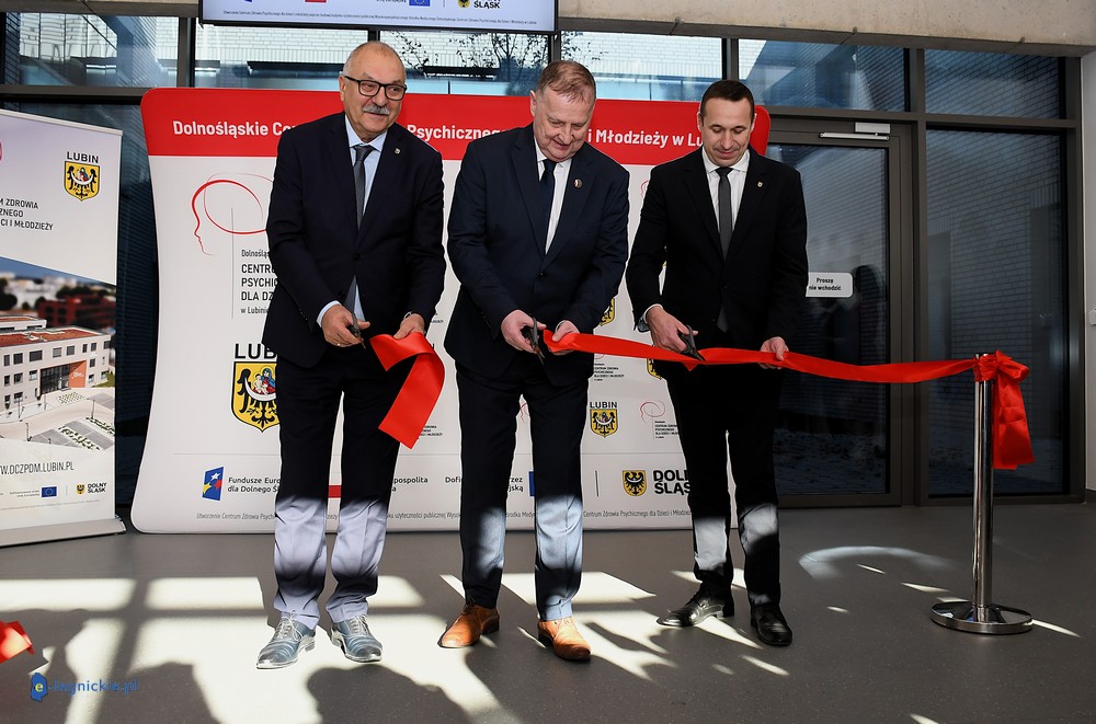LUBIN. W Lubinie z udziałem obecnego Marszałka Województwa Pawła GANCARZA, a także byłego Cezarego PRZYBYLSKIEGO, radnego Sejmiku Tymoteusza MYRDY i władz samorządowych Lubina i powiatu lubińskiego, uroczyście otwarto Dolnośląskie Centrum Zdrowia Psychicznego dzieci i młodzieży. To pierwsza na Dolnym Śląsku placówka, która kompleksowo śpieszyć będzie z pomocą dla najmłodszych zmagających się z problemami emocjonalnymi i psychicznymi. "Ojcem chrzestnym" pomysłu wybudowania Centrum był prezydent Lubina Robert RACZYŃSKI. - W momencie kiedy po raz pierwszy głośno powiedziałem o tym pomyśle, że chcemy to powołać, patrzono na nas z niedowierzaniem. Dopiero pandemia pokazała, jak bardzo taki ośrodek jest potrzebny - mówił podczas otwarcia prezydent Lubina. - W 2019 roku nie mieliśmy nawet stu tysięcy złotych zabezpieczonych w budżecie, a dziś stoimy przed obiektem, którego koszt przekroczył 130 milionów złotych. To projekt, który - co niezwykłe - nie spotkał się z żadnym hejtem. Nikt nigdy nie odmówił pomocy - podkreślał nie kryjąc łez wzruszenia Robert Raczyński. W wydarzeniu wzięli udział także dyrektor przedstawicielstwa Regionalnego Komisji Europejskiej Joanna Streżyńska-Litberg, a także wojewódzcy konsultanci w dziedzinie psychiatrii dzieci i młodzieży – dr hab. Monika Szewczuk-Bogusławska i Izabela Dancewicz-Mikulewicz.