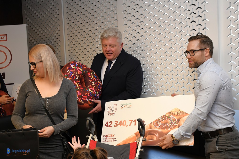 LUBIN. Blisko 19 tysięcy pączków, tysiące otwartych serc i suma, która przerosła najśmielsze oczekiwania. Wolontariusze oraz pracownicy KGHM podsumowali tegoroczną akcję charytatywną, która w tym roku przybrała rekordowy wymiar. Podczas uroczystego spotkania w Sali Okrągłej Central KGHM, prezes Polskiej Miedzi, Remigiusz Paszkiewicz, przekazał czeki dla podopiecznych, choć dla wielu z nich pomoc już realnie „działa” w szpitalnych salach i gabinetach rehabilitacyjnych.