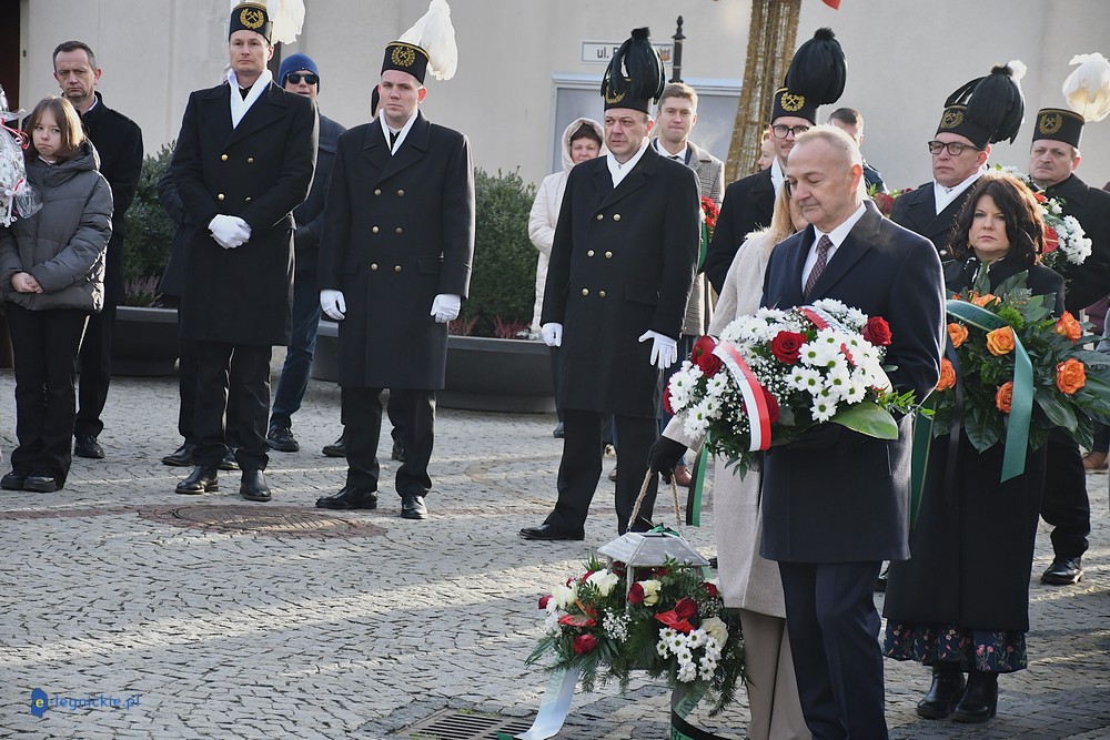 POLKOWICE. Msza św. w intencji górników i ich rodzin, złożenie kwiatów przed pomnikiem „Górnikom Polskiej Miedzi”, koncert orkiestry dętej ZG Rudna w Ratuszu. Polkowiczanie świętują Barbórkę. Oficjalna uroczystość odbyła się na Rynku, gdzie delegacje między innymi samorządowców, KGHM Polska Miedź S.A., wielu instytucji i szkół złożyły wiązanki kwiatów przed pomnikiem w asyście pocztów sztandarowych i orkiestry.