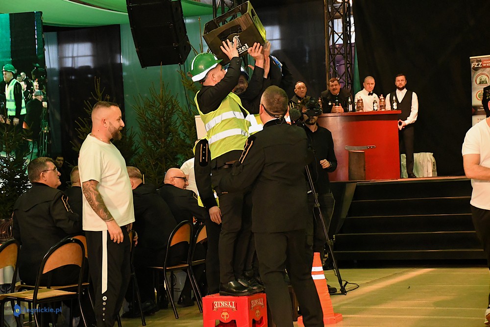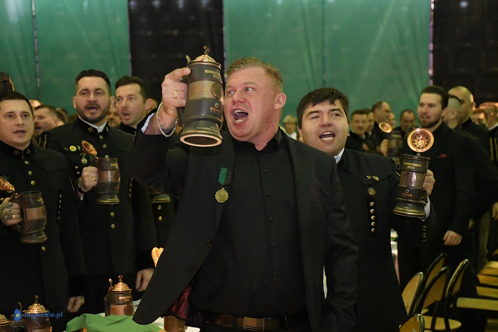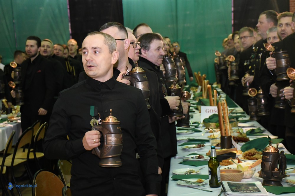 - Karczma piwna ma stały, określony przebieg. Zawsze rozpoczyna się odśpiewaniem hymnu górniczego i przywitaniem gości. Uczestnicy zasiadają przy długich stołach i dzielą się na tzw. tablicę lewą i prawą. Następnie powoływany jest przewodzący całemu wydarzeniu Prezes – a po nim kolejno: Prezydium (ma nieograniczone kompetencje), Skryba (zlicza punktację) i Herold (odczytuje regulamin). Później uczestnicy zabawy wysłuchują regulaminu Karczmy Piwnej oraz wybierani są Gospodarz Sali, Kontrapunkci (utrzymują porządek w przydzielonych im tablicach) i Kantorzy (prowadzą śpiew) - wyjaśniał nam Jan MŁYNARCZYK. - Po sprawach „organizacyjnych” przychodzi czas na wzniesienie pierwszego toastu. Przyjęte jest, że podczas karczmy pije się jedynie piwo. O tym, kiedy można wychylić kolejny kufel złotego trunku decyduje Prezes, bo to on nadaje tempo całemu wydarzeniu. Oczywiście w czasie karczmy goście spożywają posiłki, bardzo często podawana jest golonka. Po toaście przychodzi czas na tradycyjne obrzędy, śpiewy i zabawy. Najważniejszym elementem, bez którego nie może obejść się żadna biesiada górnicza, jest pasowanie na gwarków. Ta tradycja oznacza symboliczne dołączenie do stanu górniczego. Później przychodzi czas na rywalizację pomiędzy tablicą lewą i prawą. Dopiero godzinę przed zakończeniem zabawy rozpoczyna się tzw. anarchia piwna – znaczy to, że każdy może wreszcie pić, ile chce. Karczma górnicza kończy się ogłoszeniem wyników rywalizacji i wybraniem zwycięzców, którzy często otrzymują symboliczne upominki oraz Przechodni Puchar Prezesa.