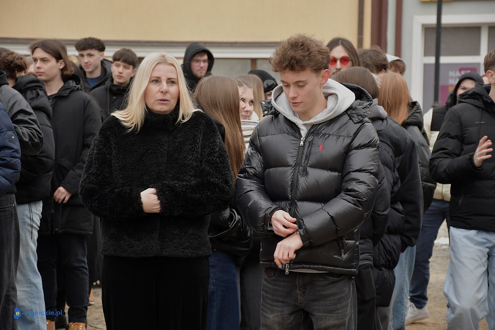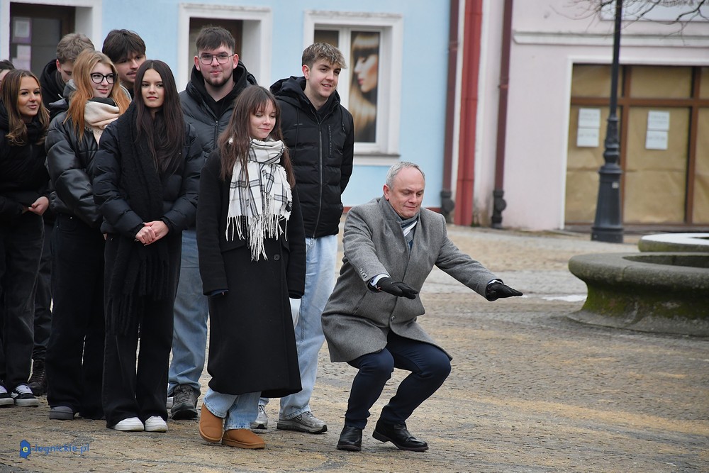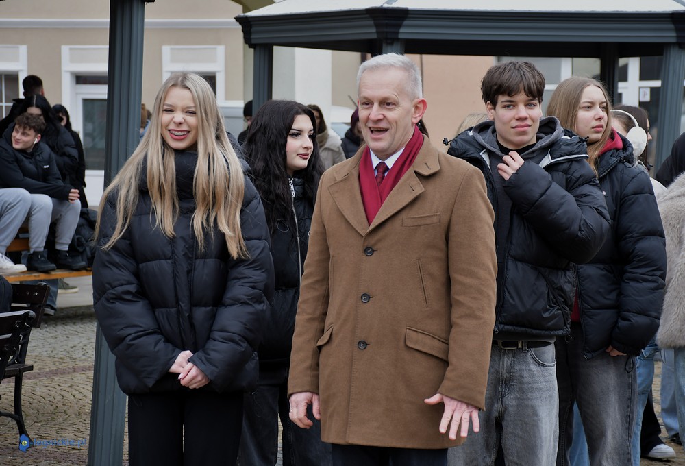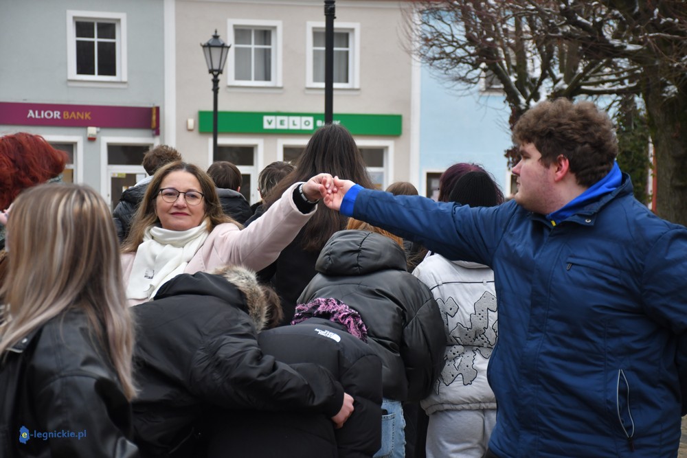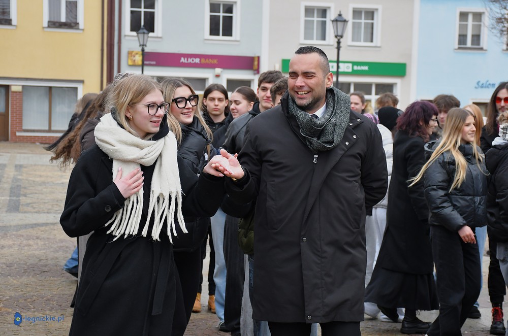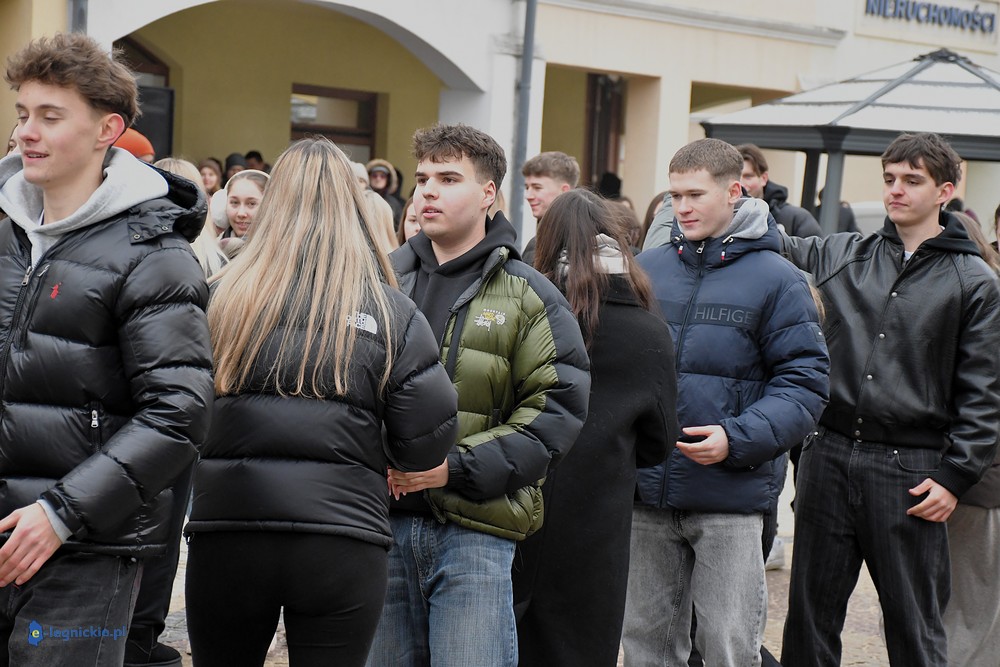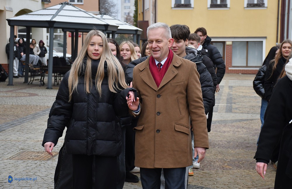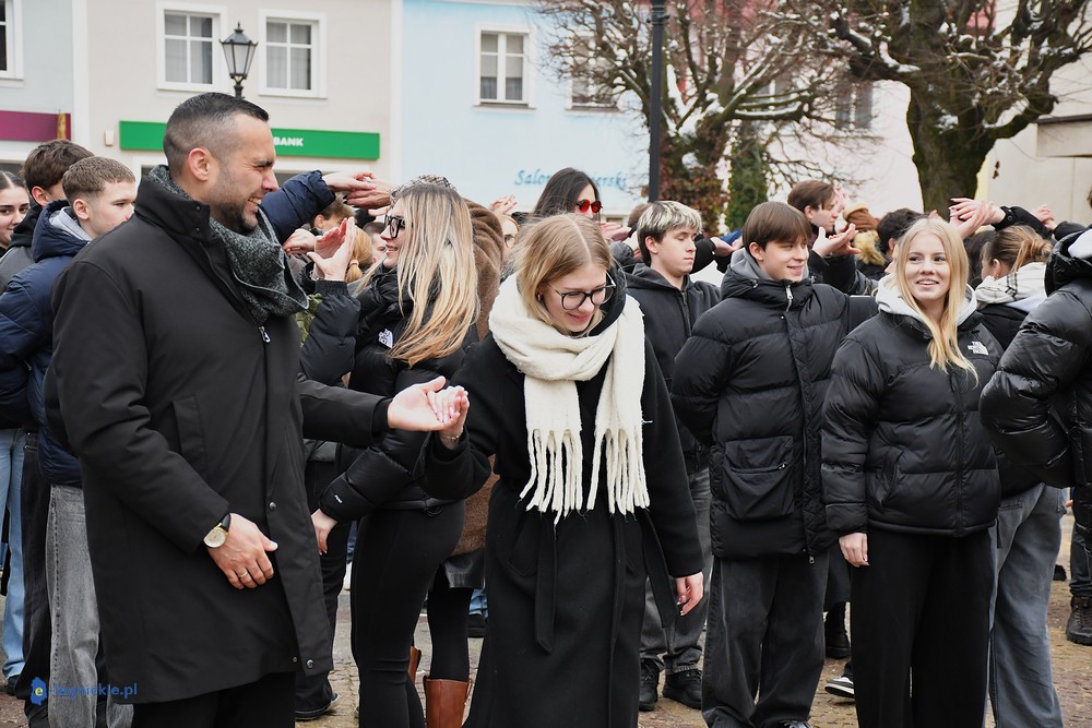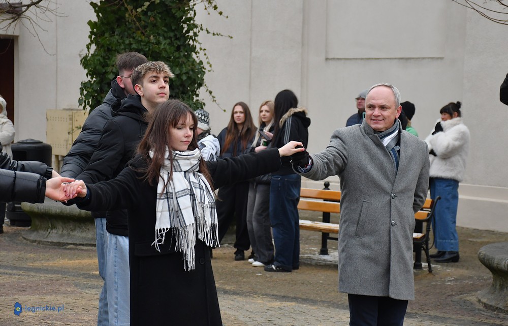 POLKOWICE. Na polkowickim Rynku już po raz 14. wybrzmiał polonez. Zatańczyli go tegoroczni maturzyści Zespołu Szkół wspólnie z władzami gminy oraz powiatu. Tym samym zaczęło się odliczanie do egzaminów dojrzałości. Zaskoczeniem dla publiczności była wyjątkowa muzyczno-taneczna niespodzianka przygotowana przez uczniów. - Stres oczywiście jest, bo będą nas obserwować mieszkańcy Polkowic. Ta tradycja sięga 2011 roku, kiedy to po raz pierwszy zatańczyliśmy poloneza na rynku. To piękne wydarzenie i jedne z ostatnich z udziałem naszych maturzystów - mówił Wiesław WABIK, burmistrz Polkowic.
