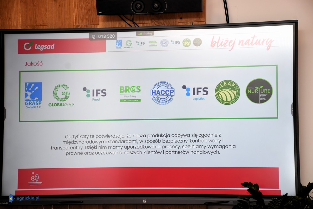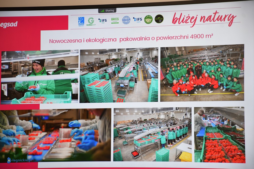- Firma LegSad na mapie Powiatu Legnickiego jest firmą wyjątkową i takie firmy chcielibyśmy prezentować za każdym razem, odwiedzając je wspólnie w ramach Konwentu - powiedział starosta legnicki Adam BABUŚKA. - Firma dająca ludziom - w sezonie 600 osób - pracę, zapewniającą dochody gminie Krotoszyce i w jakimś stopniu naszemu powiatowi. To firma rodzinna, która dzięki wytężonej pracy właścicieli i kadry kierowniczej na wielu odcinkach stała się marką rozpoznawalną w Europie. Musimy to szanować, cenić i tą firmą się chwalić. Ten lokalny producent owoców jagodowych w naszym powiecie ma jeszcze jedno ogromne znaczenie: współpracuje z Domami Pomocy Środowiskowej i przede wszystkim z Zakładem Aktywizacji Zawodowej w Legnickim Polu. I co ważne - ma plany dalszego rozwoju, rozwoju dynamicznego, we współpracy z rolnikami gmin naszego powiatu.