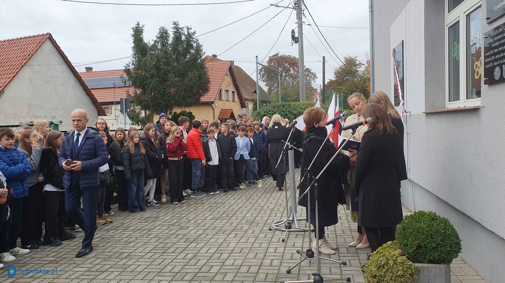 - Wyczytałam z kroniki, że pierwszym kierownikiem tej szkoły był pan Konstanty Stradowski - osadnik z Kresów, a powiat legnicki od ponad 10 lat postawił sobie za cel utrwalanie tożsamości kresowej, i wspólnie ustaliliśmy, że musimy tę postać tutaj pokazać, poświęcić jej tę tablicę, przybliżyć. Niech kolejni, którzy dzisiaj będą świadkami tego wydarzenia, biorą przykład z tego bohatera - mówi Janina Mazur, wicestarosta legnicki.