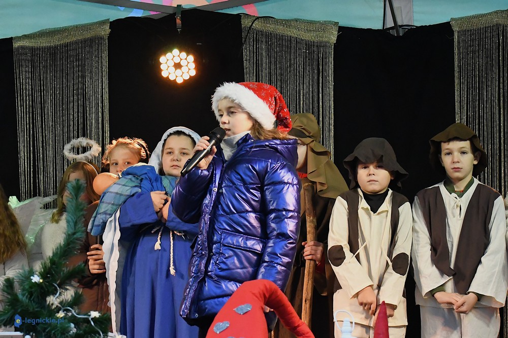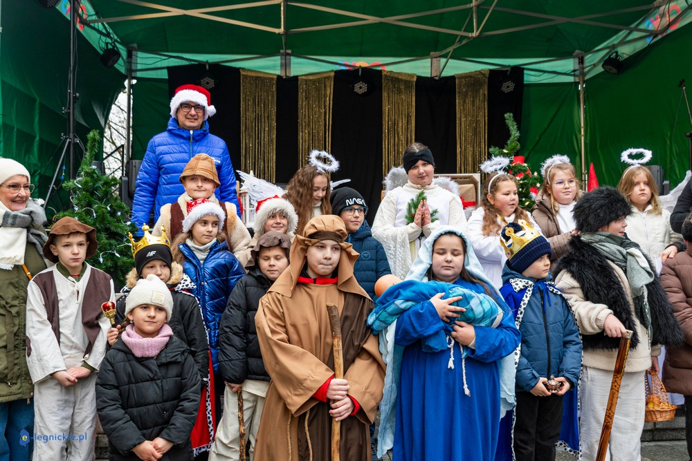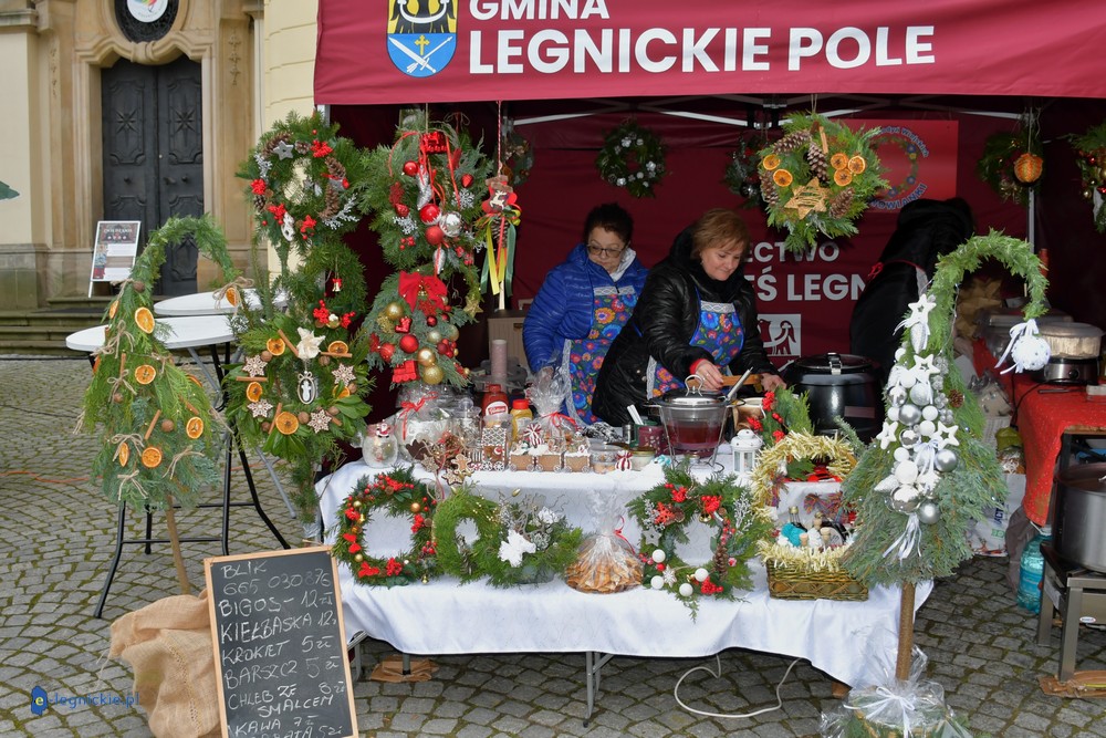 LEGNICKIE POLE. Kilkudziesięciu wystawców pojawiło się na Jarmarku Bożonarodzeniowym w Legnickim Polu. Jarmark u stóp Bazyliki Mniejszej otworzył wójt gminy Legnickie Pole Rafał PLEZIA w towarzystwie zastępczyni Małgorzaty KUBIK. Jarmark rozpoczęły dzieci ze Szkoły Podstawowej wystawiając tradycyjne jasełka i z wielkim przekonaniem wcieliły się w postaci Maryi i Józefa, a także gwiazdek, pasterzy, aniołków i Trzech Króli.
