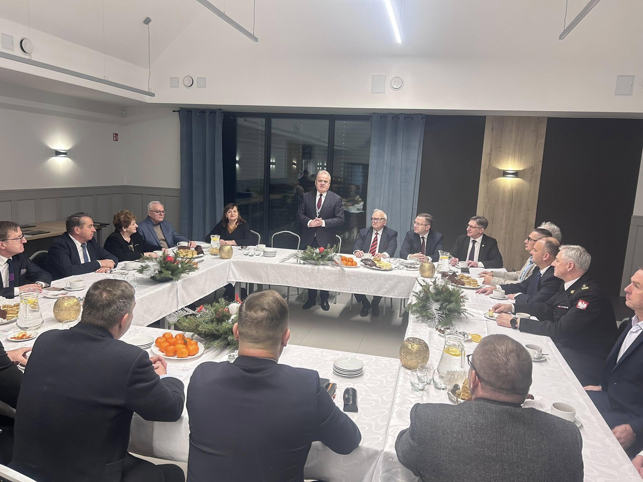 MĘCINKA. W nowej formule i w nowym miejscu – pod dużym namiotem tuż obok Urzędu Gminy – odbyło się spotkanie wigilijne mieszkańców Gminy Męcinka. Wydarzenie organizowane nieprzerwanie od 2014 roku na stałe wpisało się w kalendarz gminnych tradycji i było okazją do wspólnego kolędowania oraz dzielenia się opłatkiem. - Nasze gminne spotkania wigilijne miały przez lata różną formę i odbywały się w różnych miejscach, ale zawsze łączył je jeden fundament – wiara i tradycja. Dzięki nim wiemy, kim jesteśmy jako wspólnota. Dzisiejsze spotkanie, wspólne kolędowanie i dzielenie się opłatkiem pokazują, że mieszkańcy tej gminy chcą być razem i pielęgnować to, co dla nas najważniejsze- podkreślił wójt gminy Mirosław Brzozowski w swoim powitalnym przemówieniu , zwracając się do przybyłych.