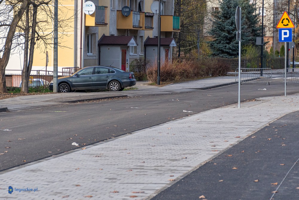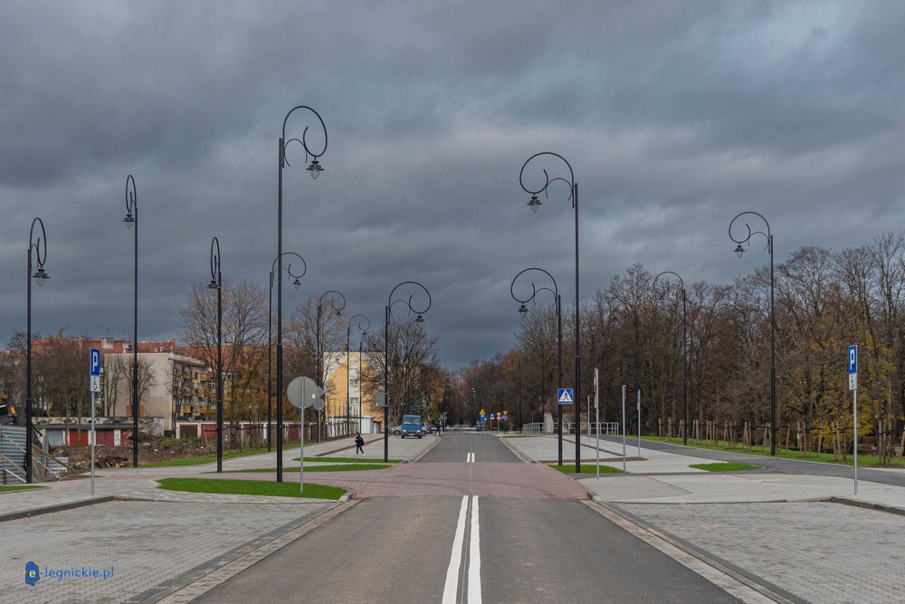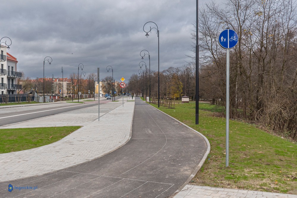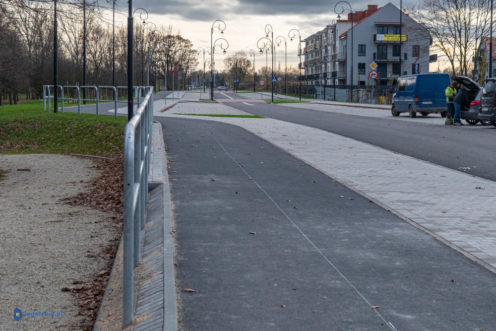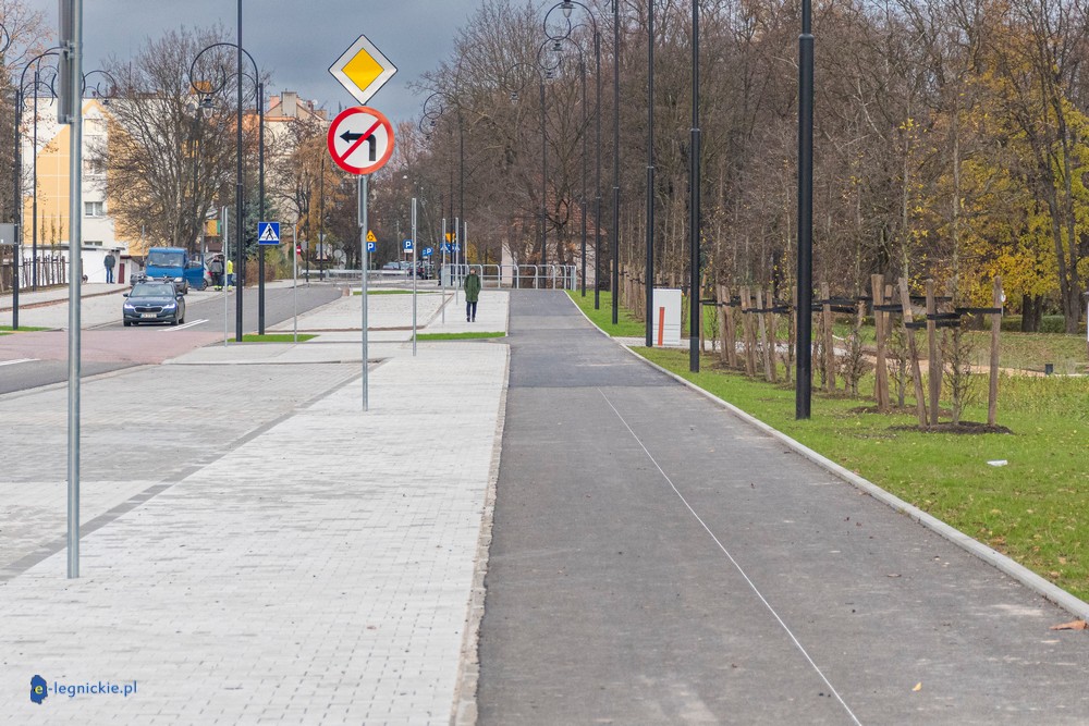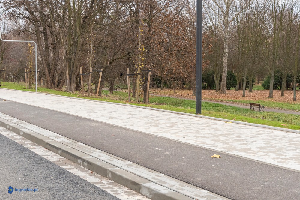 LEGNICA. Budowa ul. Adama Mickiewicza na odcinku od ul. Oświęcimskiej do al. 100-lecia Odzyskania Niepodległości dobiegła końca. W ostatnich tygodniach wykonano chodniki, ścieżkę rowerową, sporo miejsc postojowych oraz nawierzchnię jezdni. Ułożono krawężniki na rondzie przy ul. Oświęcimskiej, na samej ul. Oświęcimskiej oraz w kierunku skrzyżowania z ul. Traugutta. Gotowa jest również sieć kanalizacji deszczowej. Co ważne, po uwagach na etapie realizacji inwestycji, powstaje także ścieżka - wejście do parku, w połowie odcinka nowej ulicy.