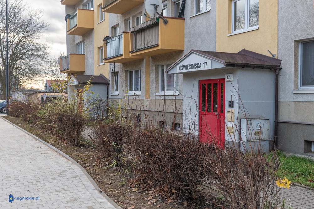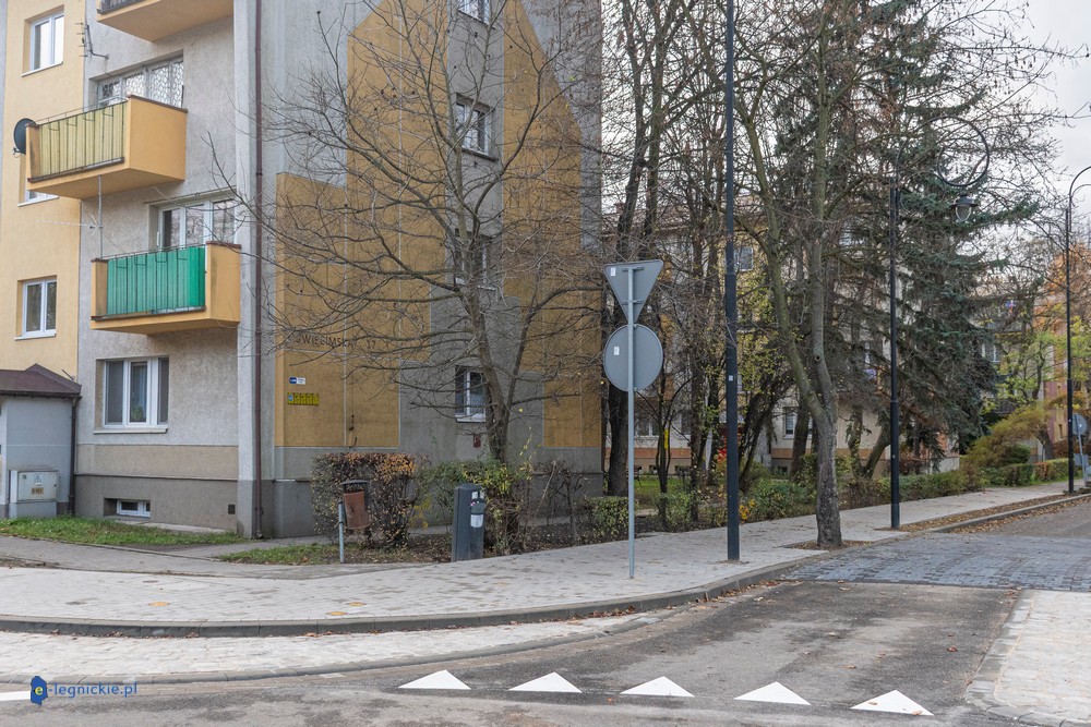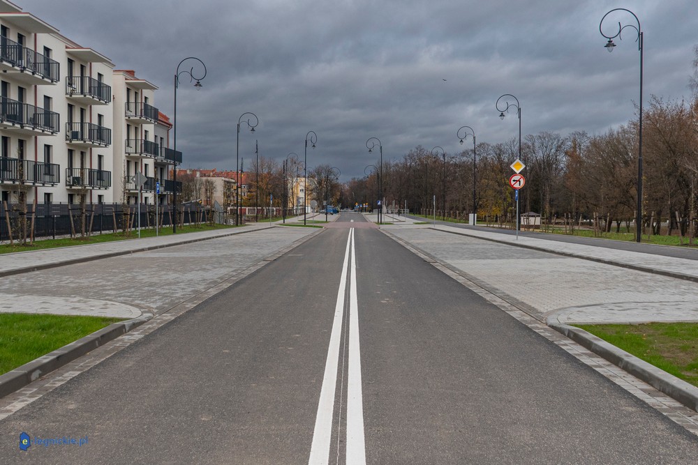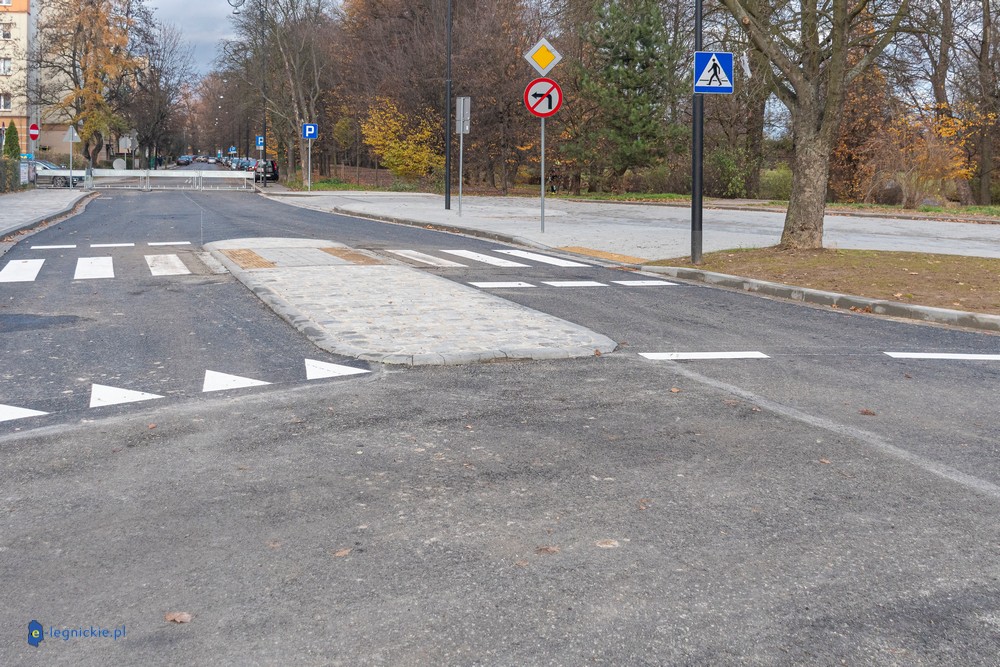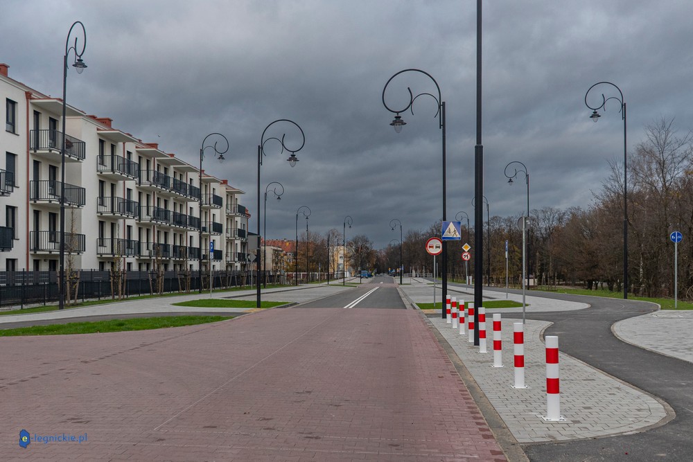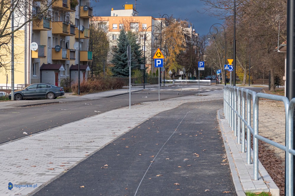 LEGNICA. Budowa ul. Adama Mickiewicza na odcinku od ul. Oświęcimskiej do al. 100-lecia Odzyskania Niepodległości dobiegła końca. W ostatnich tygodniach wykonano chodniki, ścieżkę rowerową, sporo miejsc postojowych oraz nawierzchnię jezdni. Ułożono krawężniki na rondzie przy ul. Oświęcimskiej, na samej ul. Oświęcimskiej oraz w kierunku skrzyżowania z ul. Traugutta. Gotowa jest również sieć kanalizacji deszczowej. Co ważne, po uwagach na etapie realizacji inwestycji, powstaje także ścieżka - wejście do parku, w połowie odcinka nowej ulicy.