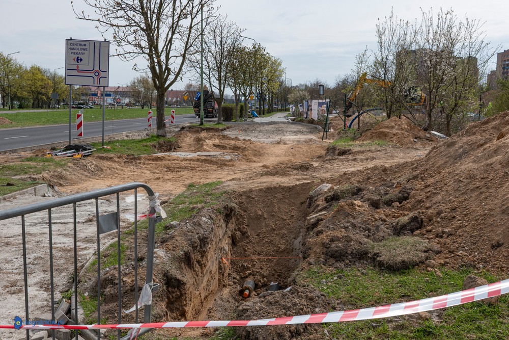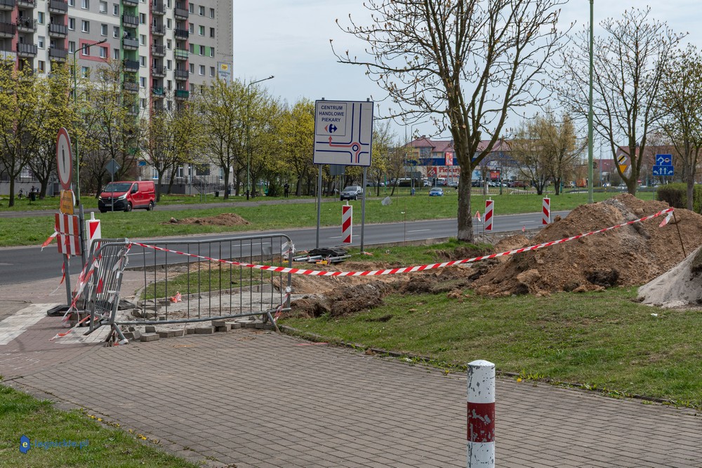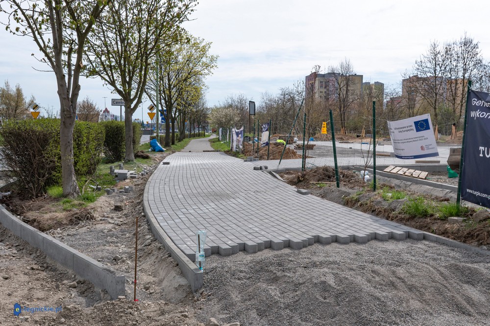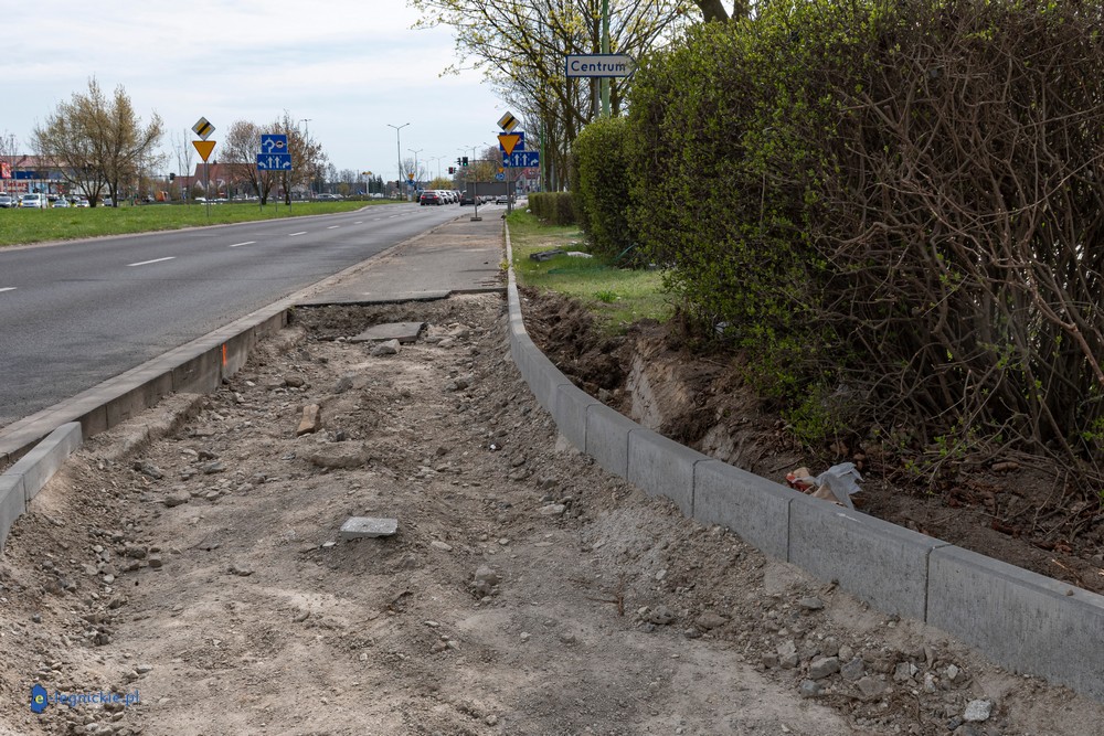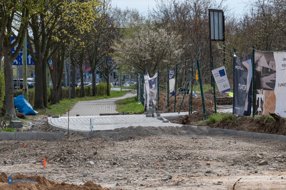 Prace prowadzone są także poza samym terenem inwestycji. Od około półtora miesiąca wyłączony z użytkowania jest odcinek chodnika i ścieżki rowerowej wzdłuż ul. Sikorskiego – od przystanku przy kościele pw. Podwyższenia Krzyża Świętego do ronda Niepodległości. Trwa tam przebudowa infrastruktury pieszo-rowerowej, która jest niezbędna, ponieważ wjazd i wyjazd do żłobka będą zlokalizowane właśnie od tej strony.