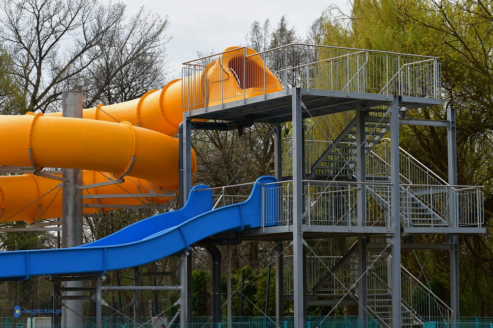 Powstały obiekty techniczne: pomieszczenia szatniowe, sanitariaty oraz kasy. Już z daleka widać wyniesioną konstrukcję zjeżdżalni, których wcześniej na ścinawskim basenie nie było, żółta rurowa oraz niebieska, płaska i falista w swej górnej części są już zmontowane. Na terenie odkrytej pływalni trwają obecnie, zlecone poza głównym kontraktem, dodatkowe prace, dotyczą one m.in.: rewitalizacji pergoli.