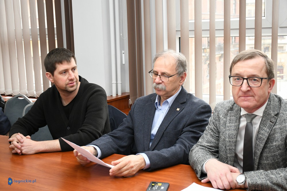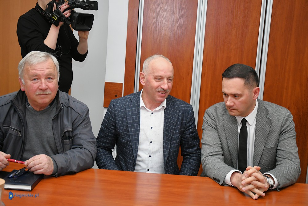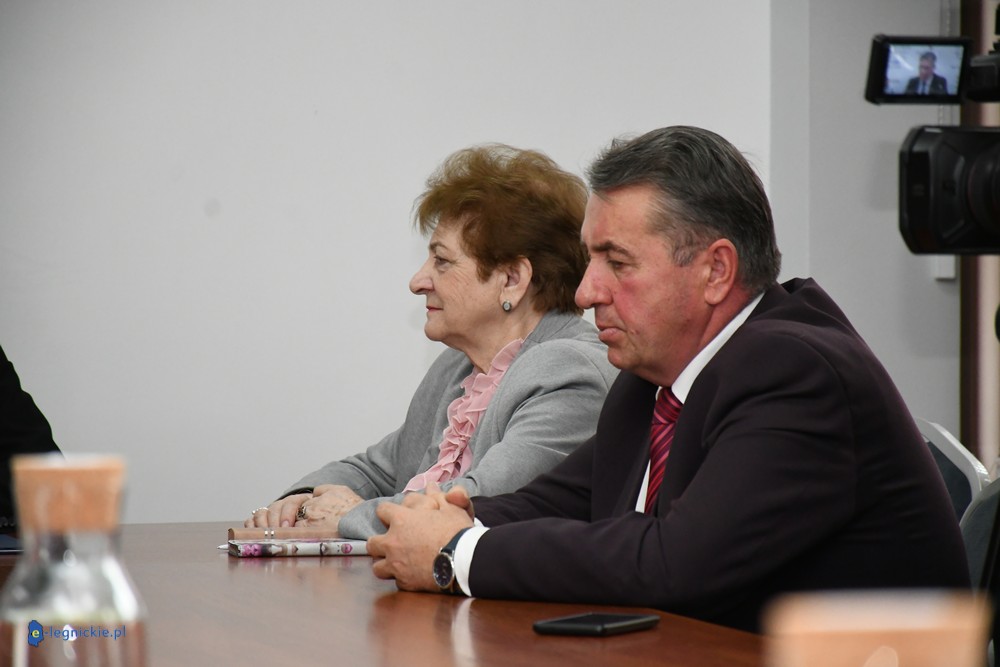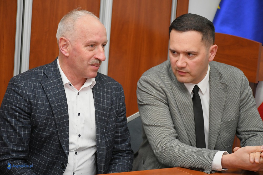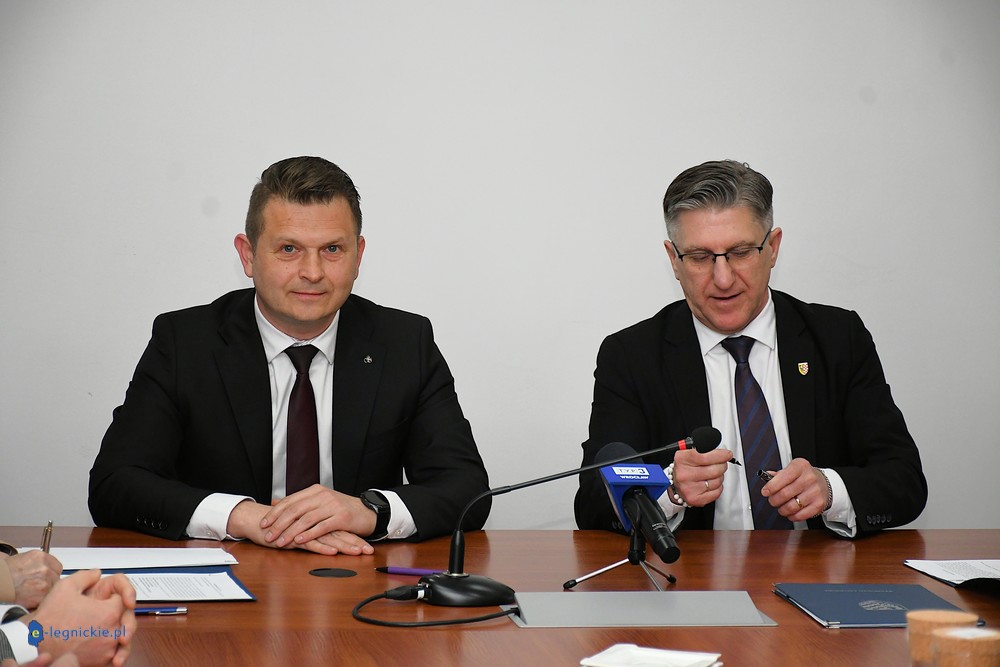POWIAT LEGNICKI. W siedzibie Starostwa Powiatowego w Legnicy spotkali się liderzy Powiatów: Legnickiego - Adam BABUŚKA i Janina MAZUR oraz Złotoryjskiego - Rafał MIARA i Beata GRALAK, aby podpisać porozumienie dotyczące wspólnego przedsięwzięcia inwestycyjnego. Mowa o modernizacji, generalnym remoncie drogi, liczącej 1912 metrów, łączącej Gniewomierowice z Goślinowem. W spotkaniu wzięli udział także wójtowie gmin: Miłkowic- Dawid Stachura, wiejskiej Złotoryja -Jan Tymczyszyn oraz Zarządu Dróg Powiatowych z Wojciechem Cichoniem na czele, wykonawca inwestycji Mateusz Chamski z PTB Wrocław, radni oraz skarbniczki obu powiatów decydujące o finansach, także tych przeznaczanych na inwestycje: Marta PŁOSIŃSKA-SOBOŃ i Katarzyna LUDYNIA.