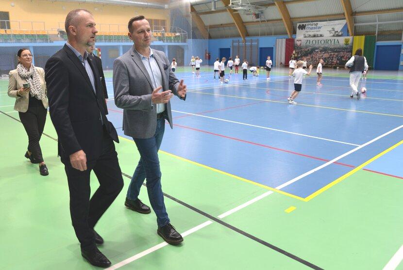 ZŁOTORYJA. Aż trudno uwierzyć, że ten obiekt ma 21 lat, wygląda, jakby dopiero co z niego wyszli budowlańcy – mówił dziś w złotoryjskiej hali sportowej Jarosław Rabczenko z zarządu województwa dolnośląskiego, który przyjechał, żeby się przekonać, jak miasto wydało pieniądze z urzędu marszałkowskiego. W Tęczy dobiega właśnie końca modernizacja . – Bardzo kibicuję panu burmistrzowi, bo widzimy, że są to świetnie wydane pieniądze. Wiem, że oświetlenie wymagało już zmiany technologicznej, to, co widzimy dziś, jest bardziej ekologiczne i bardziej efektywne energetycznie. Ta hala jest w doskonałej kondycji, mimo intensywnego użytkowania. Goszczę tu pierwszy raz, ale jestem pod dużym wrażeniem – nie krył Jarosław Rabczenko.