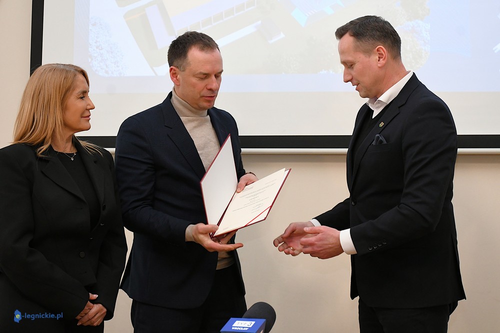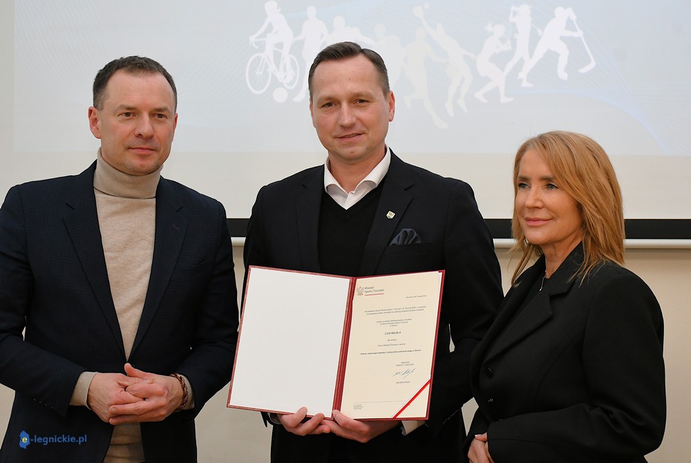 ZŁOTORYJA. W Urzędzie Miejskim w Złotoryi odbył się briefing prasowy poświęcony rządowemu dofinansowaniu budowy lodowiska w mieście. W wydarzeniu wzięli udział Sekretarz Stanu w Ministerstwie Sportu i Turystyki Piotr Borys, Burmistrz Miasta Złotoryja Paweł Kulig oraz Poseł na Sejm RP Iwona Krawczyk.