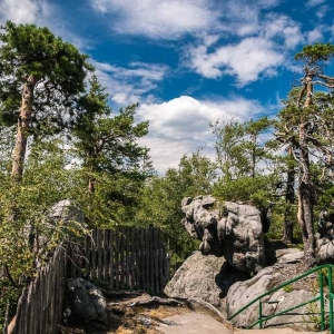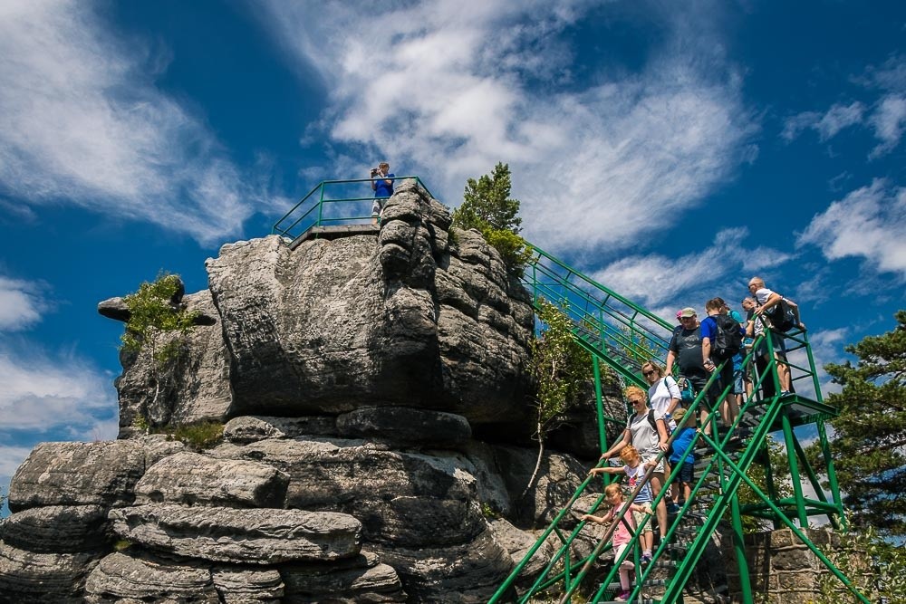 REGION. Szczeliniec Wielki (919 m.n.p.m.) jest najwyższym szczytem w Górach Stołowych, położony 10 km od Kudowy Zdrój. To główna górska atrakcja w tej części pasma Sudetów, która leży po polskiej stronie. Fani rekordów zdobywają Szczeliniec, gdyż zalicza się on do Korony Gór Polskich – listy 28 najwyższych szczytów pas górskich. Zbudowany jest z niesfałdowanego piaskowca, dzięki czemu turystyczna trasa wiedzie przez prawdziwe skalne labirynty, przepiękne tarasy widokowe oraz głębokie szczeliny. Wymyślne formy skalne działają na wyobraźnię i łatwo w nich rozpoznać m.in. „Murzynka”, „Pałac”, „Pannę”, ”Słonia”, „Wielbłąda” czy „Żyrafę . Najwyższym punktem tego pasma jest Fotel Pradziada zwany również Tronem Liczyrzepy. Ciekawostką jest to, że rzeźba Gór Stołowych a szczególnie labirynt Błędnych Skał zachwycił reżysera Andrewu Adamsona. Stały się one tłem niektórych scen jego 2 filmów, amerykańskich superprodukcji ,,Opowieści z Narnii - Lew" oraz ,,Opowieści z Narnii: Książę Kaspian".