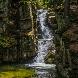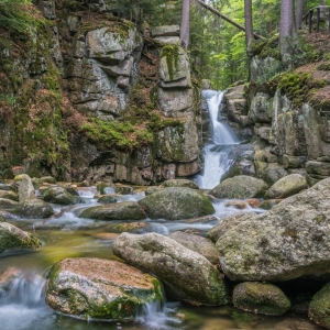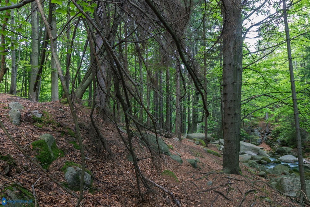 Niewątpliwie każdy i to co najmniej dwukrotnie, przemierzył szlaki na dwa najwyższe w polskich Karkonoszach wodospady – Kamieńczyka ( 27 m wysokości) i Szklarki (13 m). Natomiast cel naszej dzisiejszej wyprawy - Wodospad Podgórnej, ze swoją 10 -metrową kaskadą, zajmuje trzecie miejsce na tym podium. To jedna z głównych atrakcji dla turystów odwiedzających Przesiekę i na pewno mekka dla miłośników zimnych kąpieli. Właśnie to miejsce upodobali sobie morsy, którym przyjemność kąpieli w lodowatej wodzie Podgórnej nie tylko dostarcza powera, ale wyostrza wszystkie zmysły, by chłonąć piękno otaczającej przyrody. Proszę mi wierzyć, każdy z tych fanatyków morsowania, zna na wylot ten wodospad. Ale nie każdy zagląda trochę dalej, gdzie po dwóch kilometrach trasy można zobaczyć czwarty pod względem wysokości wodospad Karkonoszy po stronie polskiej.