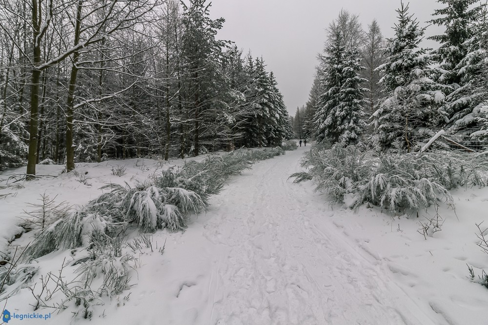 Auto zostawiamy w Czerniawie Zdrój na bezpłatnym parkingu u zbiegu ulic Sanatoryjnej i Spadzistej, obok dawnego Domu Zdrojowego. Następnie ruszamy do góry ulicą Spadzistą, mijamy domy uzdrowiskowe i wchodzimy do lasu. Docieramy do szlaku czarnego i idziemy dalej wzdłuż niego , po paruset metrach dołącza szlak zielony. Po przejściu ok.2 km po lewej stronie ukazuje się drewniana wieża widokowa. Ze szczytu wieży roztacza się widok na pobliskie miejscowości i Góry Izerskie. Niestety w dniu naszej wizyty, niski pułap chmur znacznie te widoki ograniczał. Po nasyceniu oczu widokami z wieży wracamy na szlak i idziemy dalej wzdłuż razem biegnących szlaków zielonego i czarnego. W miejscu, gdzie szlaki rozwidlają się skręcamy ostro w lewo za szlakiem czarnym. Po kolejnych 2 km dochodzimy do parkingu. Przed parkingiem znajduje się łąka z drewnianymi rzeźbami zwierząt. Cała wycieczka to ok 4.5 km do przejścia, razem z wizytą na wieży zajmie nam to 2- 2.5 godziny. Skala trudności: łatwa trasa.