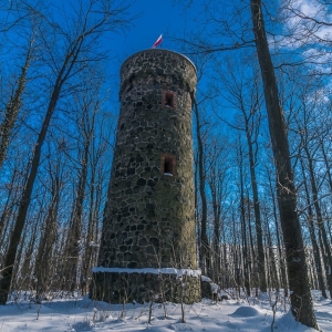 W odróżnieniu od swej sąsiadki, wieża na Radogoście , spełni oczekiwania każdego turysty. Została wzniesiona w 1893 r. jako budowla w stylu pseudogotyckim. W 1993 roku przeszła gruntowny remont i ponownie został udostępniona turystom. Platforma widokowa znajduje się na wysokości 22 m i oferuje dookólną panoramę z wyróżniającymi się przede wszystkim najbliższymi Wzgórzami Strzegomskimi, Równiną Jaworską, wschodnią częścią Gór Kaczawskich i Pogórzem Kaczawskim.