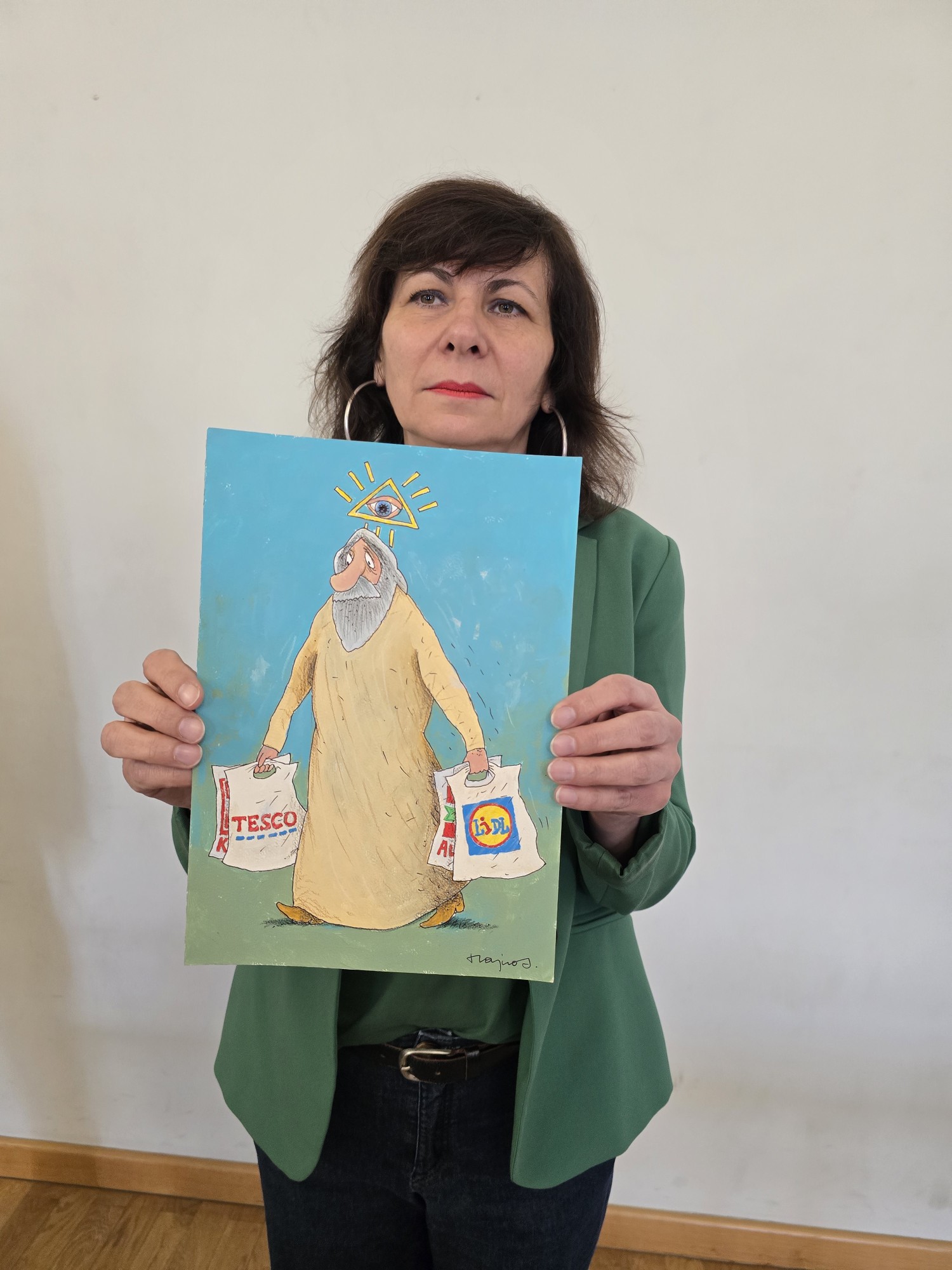 „Strefa komfortu” to jest tegoroczne hasło Satyrykonu. Lokalny kontekst w zwycięskiej pracy „Niedziela handlowa” znalazł dziennikarz Radia Wrocław Andrzej Andrzejewski i to go głównie zmotywowało do zagłosowania na ten rysunek. - To wielowymiarowa praca, każdy interpretuje ją po swojemu, przez swój zestaw najróżniejszych doświadczeń, natomiast ja widzę tutaj sytuację, która wychodzi z obrad sesji Rady Miejskiej w Legnicy. W takich reklamówkach są przynoszone, przez radnego, rzeczy, które nie licują z powagą.
