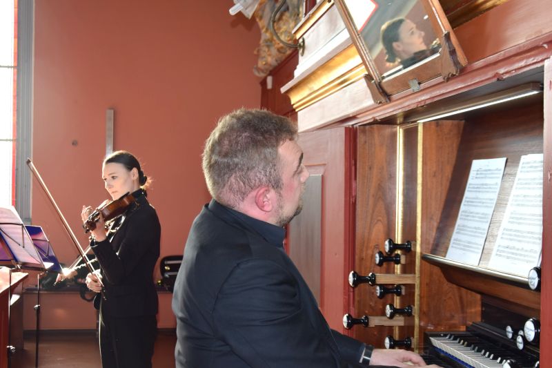 Podczas koncertu wystąpili: Daniel Strządała - wirtuoz organów, Ewa Zaborny - Strządała - skrzypaczka o niezwykłej wrażliwości muzycznej oraz Aleksandra Pawełek - Zaborny - utalentowana skrzypaczka, której interpretacje poruszyły serca wielu. Ich wspólne wykonania utworów klasycznych, przeplatane kompozycjami współczesnymi, stworzyły niepowtarzalną mozaikę dźwięków. Akustyka świątyni doskonale podkreśliła bogactwo brzmienia organów oraz liryczny ton skrzypiec, tworząc magiczną przestrzeń, w której muzyka stawała się uniwersalnym językiem emocji.