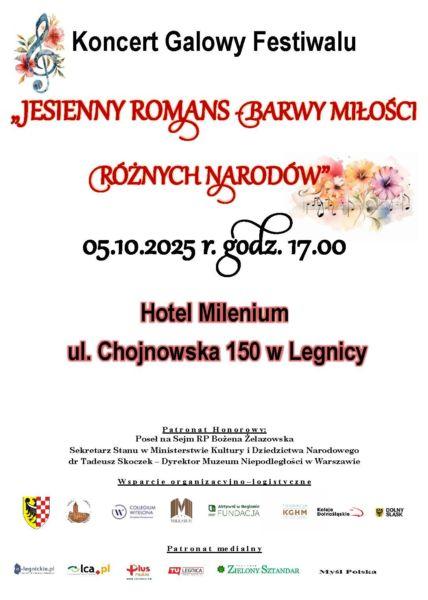 LEGNICA. Zarząd Powiatu Legnickiego, Stowarzyszenie Kulturalne „Krajobrazy” w Legnicy oraz Collegium Witelona Uczelnia Państwowa serdecznie zapraszają na Koncert Galowy XIV edycji Festiwalu „Jesienny Romans - Barwy Miłości Różnych Narodów”.