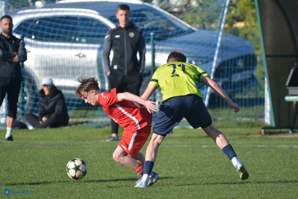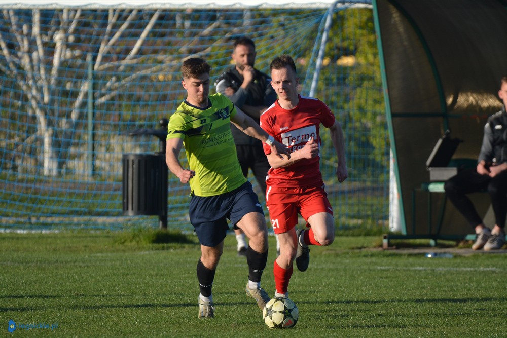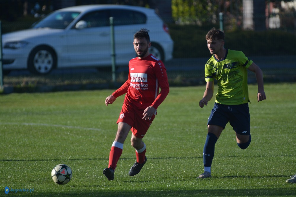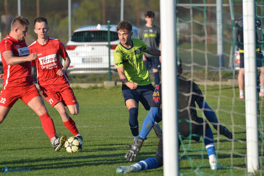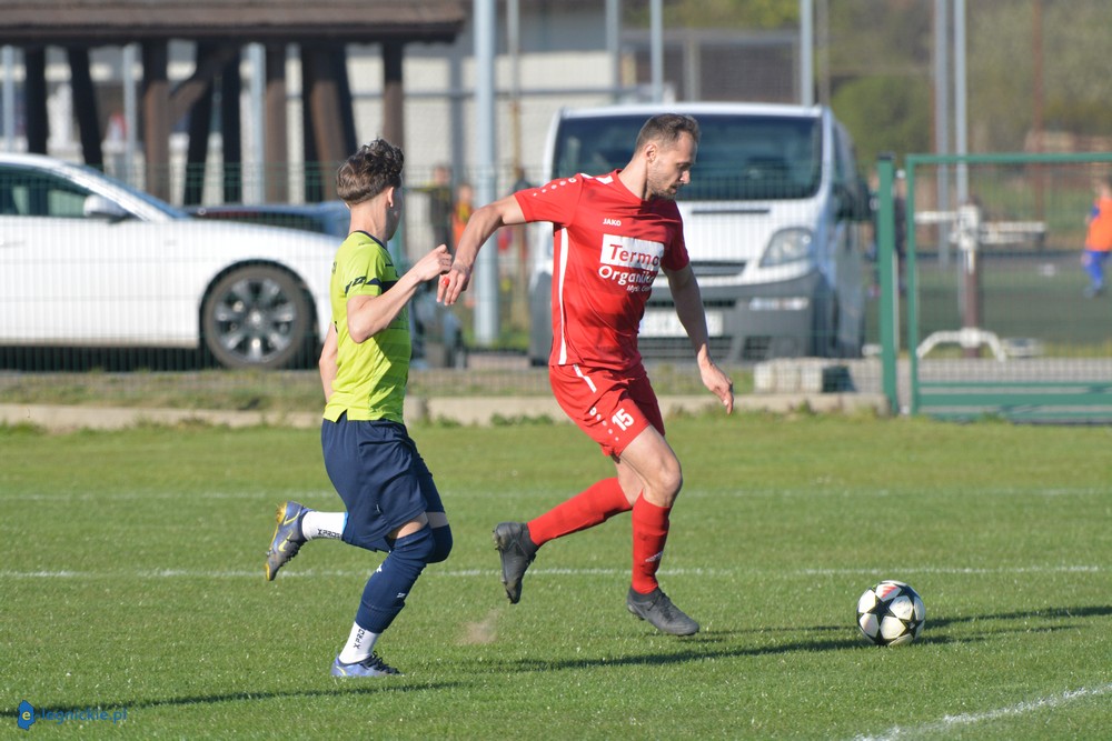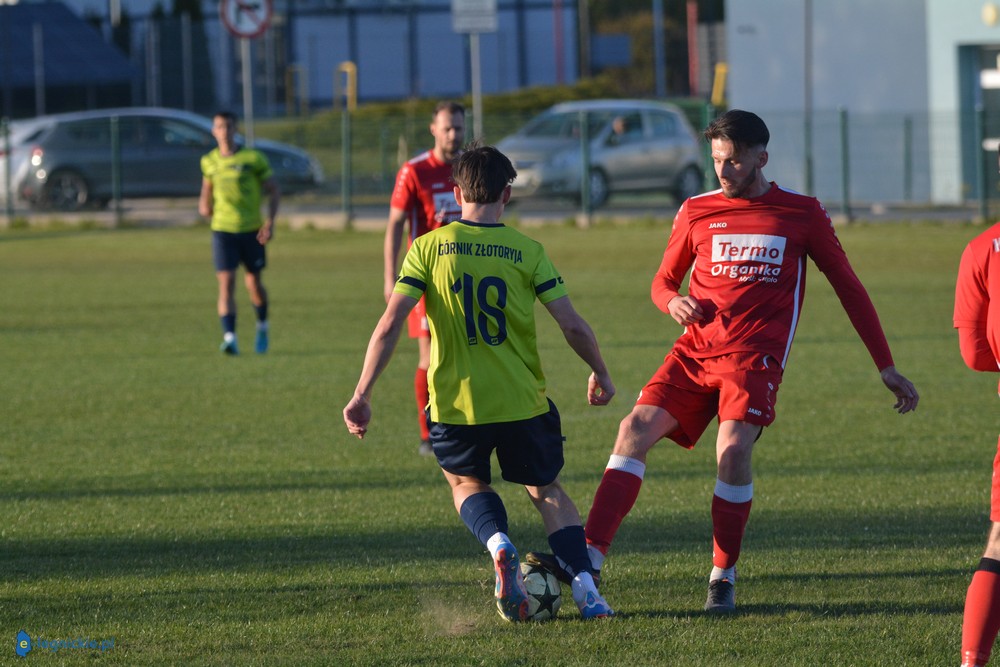 Jednak mimo sporej ilości szans dla gospodarzy jak i gości, w pierwszych 45 minutach to jedynie beniaminek ze Złotoryi potrafił je zamieniać na bramki i czynił to aż cztery razy. Po dwa razy trafiali Kacper Tokarz i Michał Terembuła.