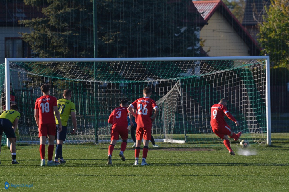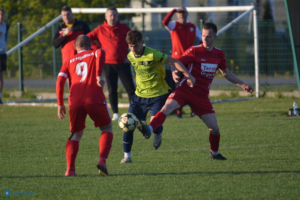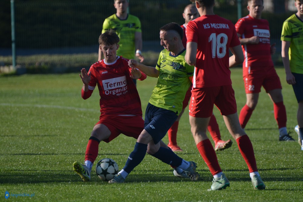 MĘCINKA. W czwartek rozpoczęła się majówkowa kolejka legnickiej Klasy Okręgowej. Spośród trzech zaplanowanych na ten dzień meczów, najszybciej rozpoczął się ten w Męcince. Miejscowy KS podejmował zamykające stawkę rezerwy Górnika Złotoryja. Był to kolejny pojedynek z serii tych bezpośrednich o utrzymanie. Padło aż dziesięć goli, a więcej strzelili ich Złotoryjanie, dla których są to pierwsze punkty w 2026 roku.