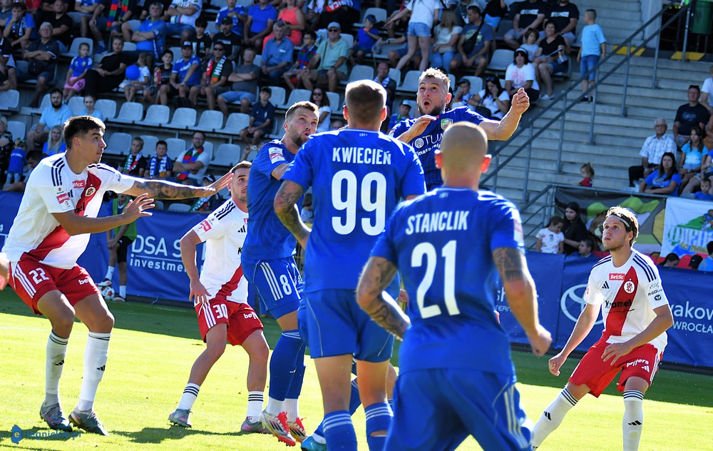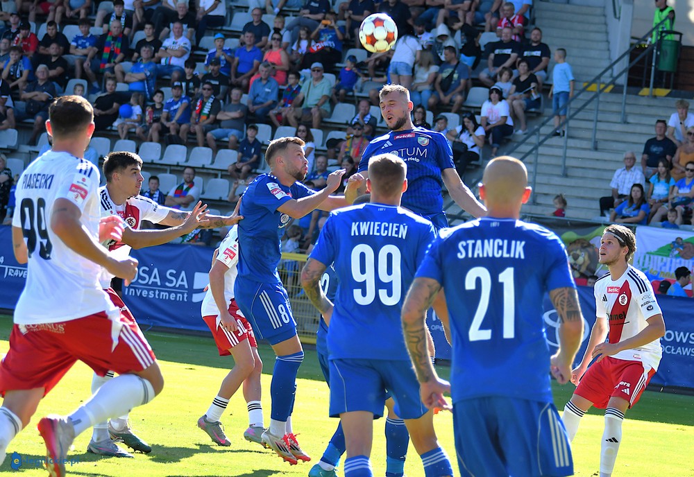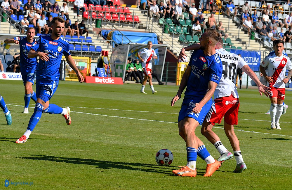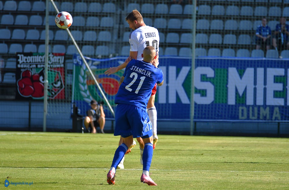 Miedź próbowała pójść za ciosem, ale nie było łatwo. Poza tym legniczanie popełniali sporo prostych błędów w ustawieniu, były też „ślepe” podania, ale to można było zrzucić na karb zmian taktycznych, innego pomysłu na grę trenera Janusza Niedźwiedzia niż to, co zespół przygotowywał przed sezonem.