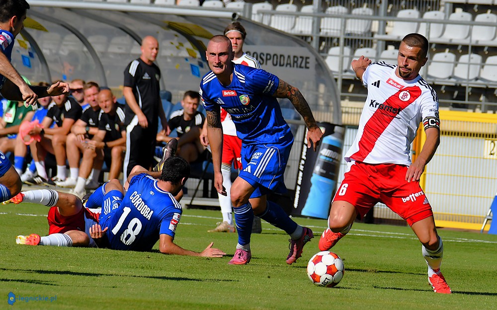 LEGNICA. Pierwsze zwycięstwo w sezonie odnieśli piłkarze Miedzi Legnica. W końcu po meczach wyjazdowych wrócili na swój stadion i ograli ŁKS Łódź 2:1 (2:0). Gole padły po samobójczym trafieniu Sebastiana Rudola i strzale Asiera Cordoby. Dla gości z rzutu karnego bramkę zdobył Fabian Piasecki.