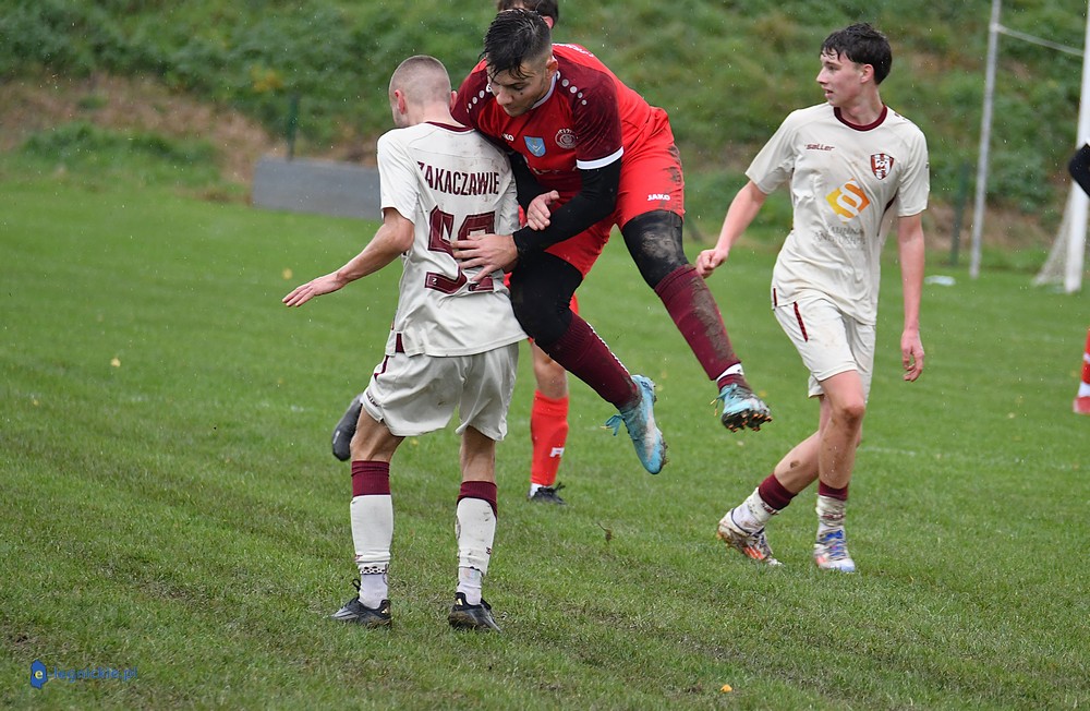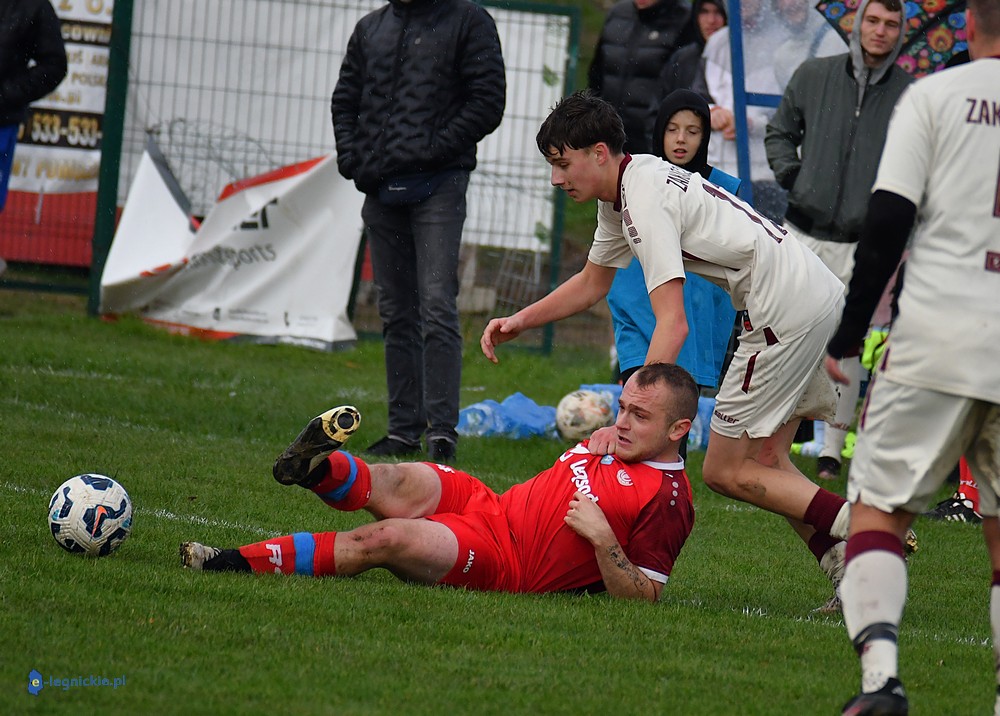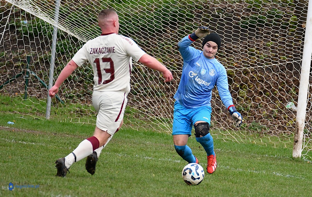 Zacznijmy od pokonanych. To fajna sprawa, że beniaminek 4 ligi dba o młodzież w swoim klubie i o tzw. zaplecze. No i drużyna pod wodzą młodego szkoleniowca którym jest Daniel MATYSIAK czyni systematyczne postępy, i z pewnością już w tym sezonie w silnej grupie B-klasy zamelduje się na ligowym podium za mocarzami jakimi są Zakaczawie , Rycerz Legnickie Pole czy Krokus Kwiatkowice. W zespole gra kilku zawodników dla których kwestią czasu i wylanego potu na treningach jest sprawa zameldowania się w szeregach pierwszego LegSadu. Dzisiaj Zakaczawiu wysoko zawiesili poprzeczkę i pokazali kawał solidnego, jak na ten poziom rozgrywek, futbolu...