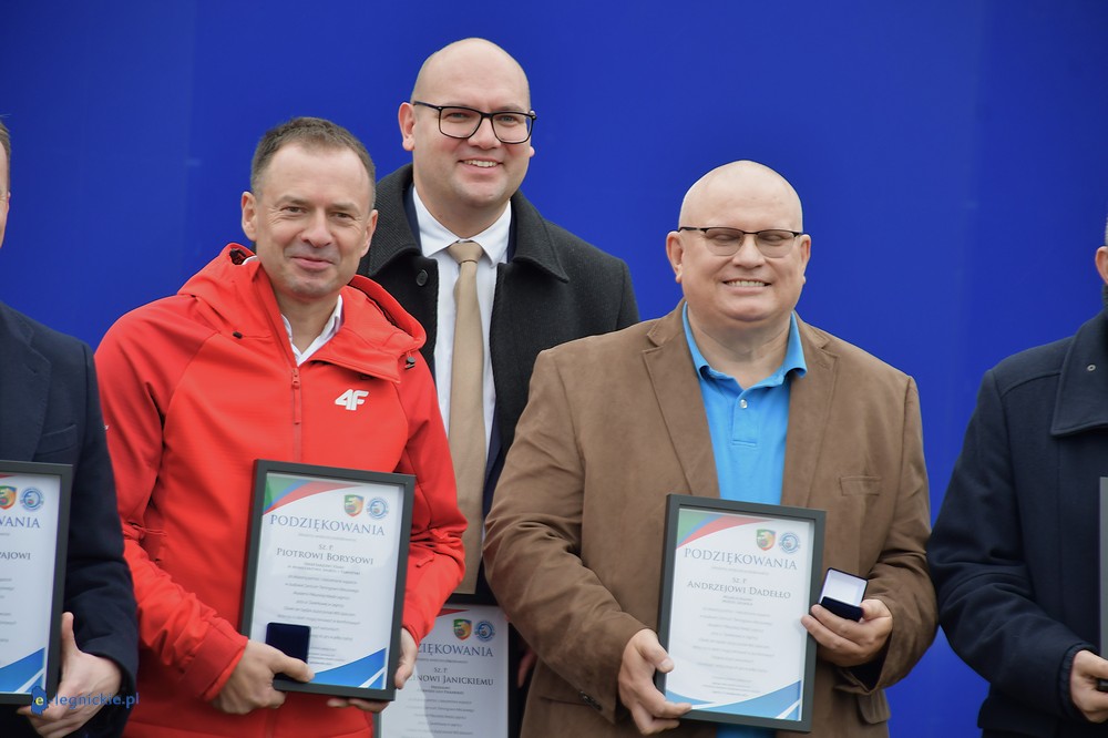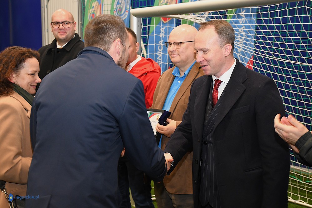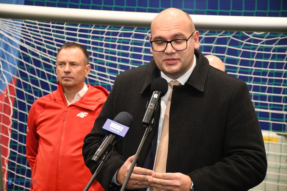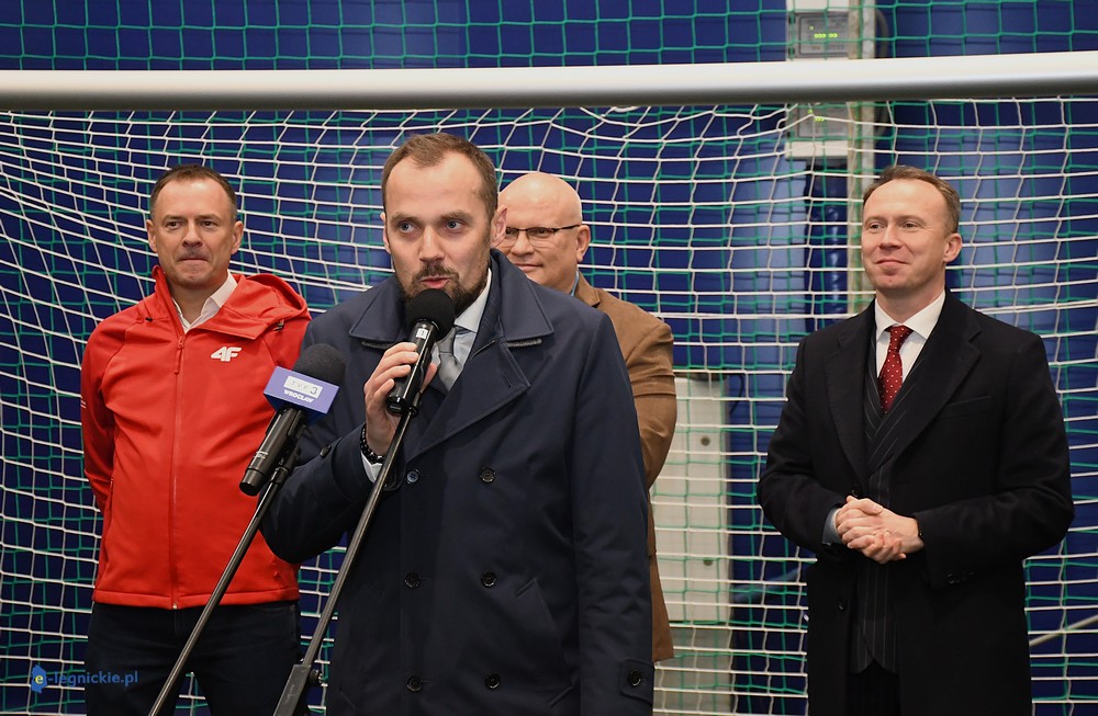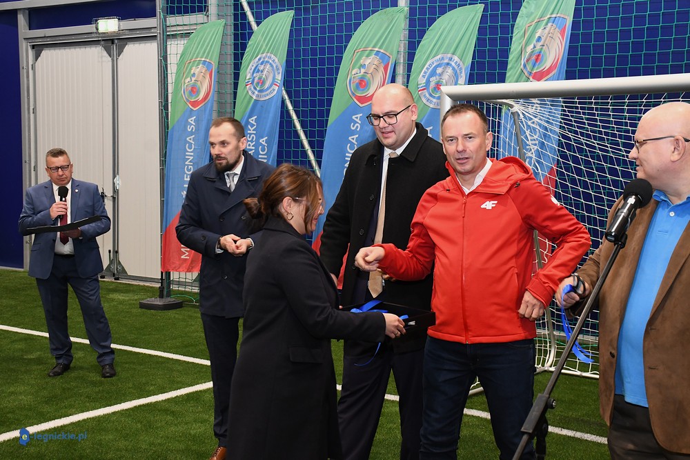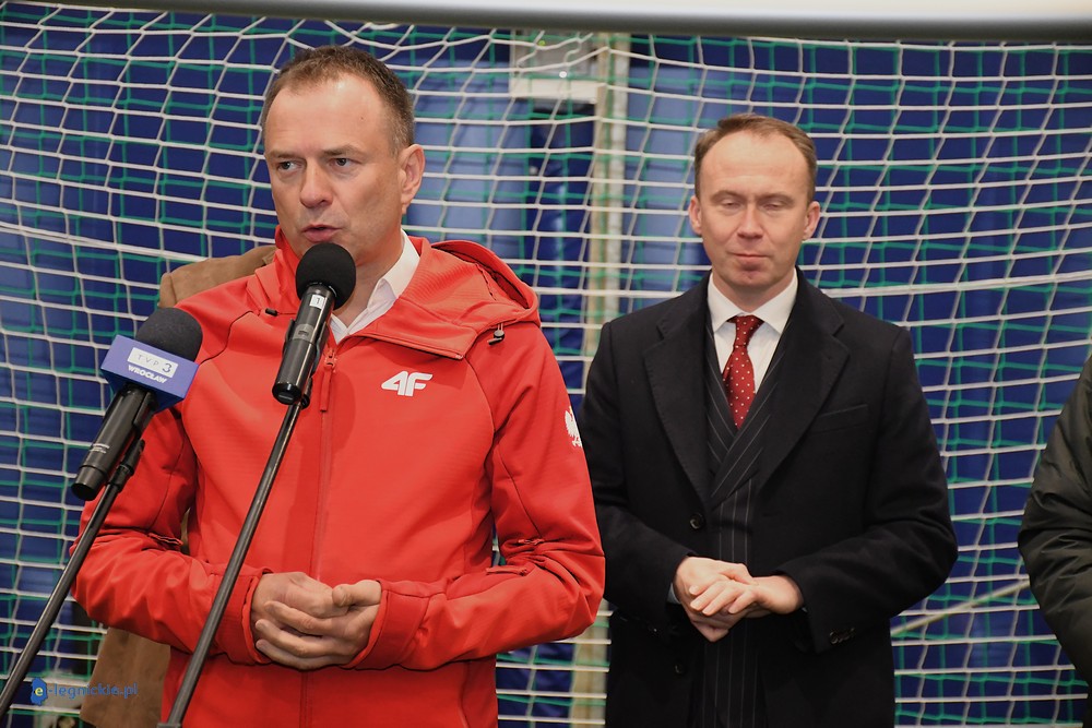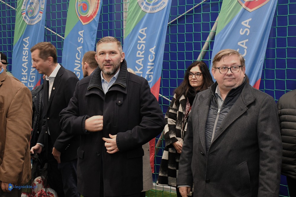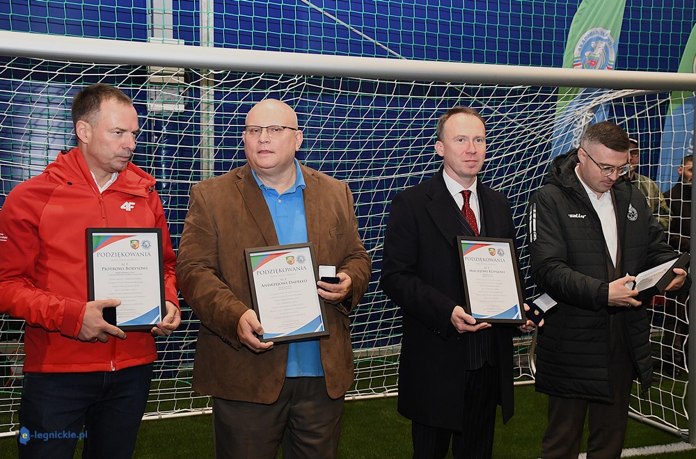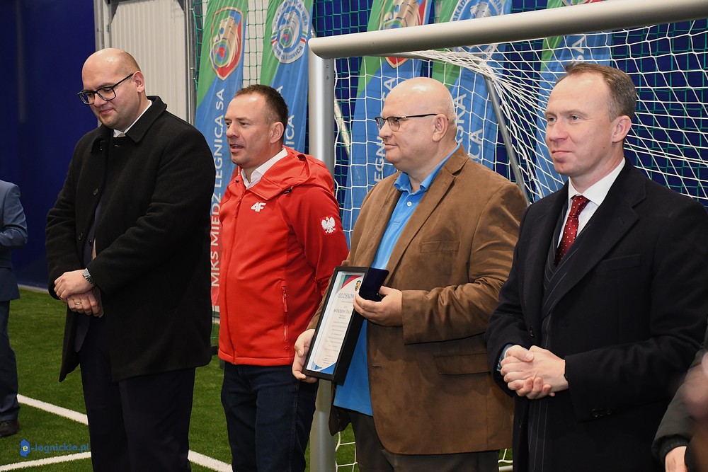 Piotr OCHOCKI, właściciel firmy BUD - ZIEM. - Inwestycja trwała prawie 2 lata ale z efektu końcowego trudno nie być zadowolonym. Trzy boiska i zwłaszcza boisko w hali robi wrażenie. Od razu uprzedzę, że latem ten obiekt pod dachem nie będzie "parownikiem". Zostaje dach a boki hali są rozsuwane i z pewnością żaden piłkarz nie zaparzy się trenując czy grając mecze. Element hali był najdroższym elementem inwestycji , kosztował ponad 4,5 mln złotych ale jego uniwersalność sprawi , że baza Akademii Piłkarskiej Miedzi zyska na jakości i to bardzo. Dla nas partnerem w realizacji inwestycji była Miedź Legnica i z tego miejsca chciałbym podziękować klubowi, Spółce Akcyjnej za bardzo, ale to bardzo profesjonalną współpracę w realizacji inwestycji. Życzyłbym sobie wszędzie mieć taki partnerów przy moich kolejnych inwestycjach.
