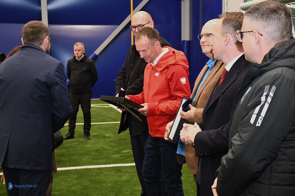 LEGNICA. "...kiedyś było ściernisko a obecnie jest...". Może nie San Francisco ale z pewnością obiekt Akademii Piłkarskiej Miedzi Legnica,którym można pochwalić się w ekstraklasie czy na arenie międzynarodowej. Z udziałem ministra sportu, posła Piotra BORYSA, właściciela Miedzi Andrzeja DADEŁŁO, prezydenta Legnicy Macieja KUPAJA, Marcina JANICKIEGO, prezesa Pierwszej Ligi Piłkarskiej oraz Łukasza CZAJKOWSKUEGO, prezesa Dolnośląskiego Związku Piłki Nożnej uroczyście oddano do użytku Centrum Treningowe "Świerkowa Arena" Akademii Piłkarskiej Miedzi Legnica.