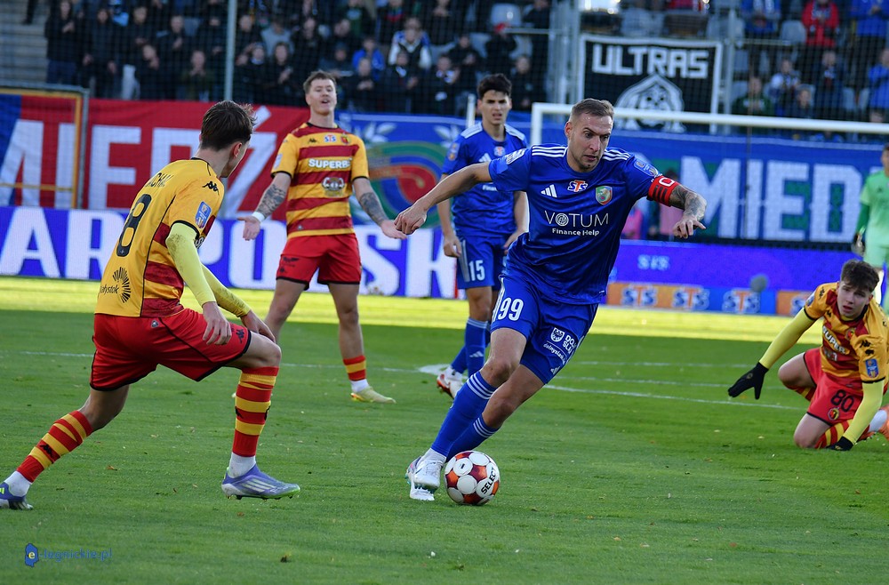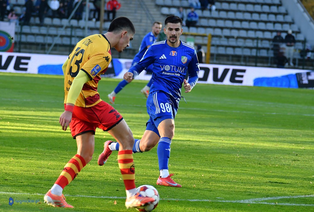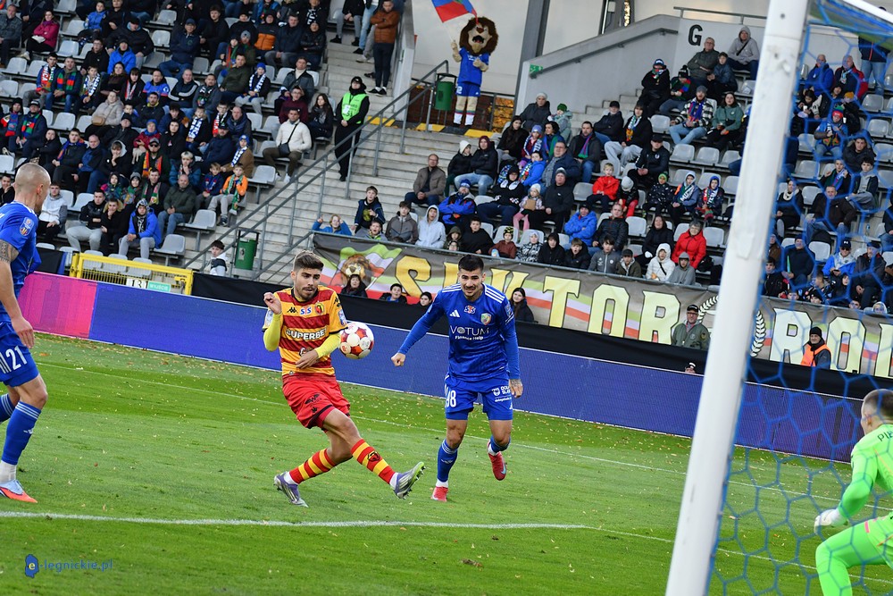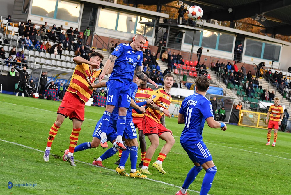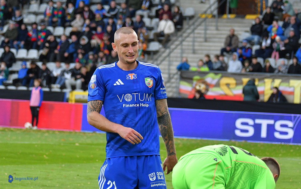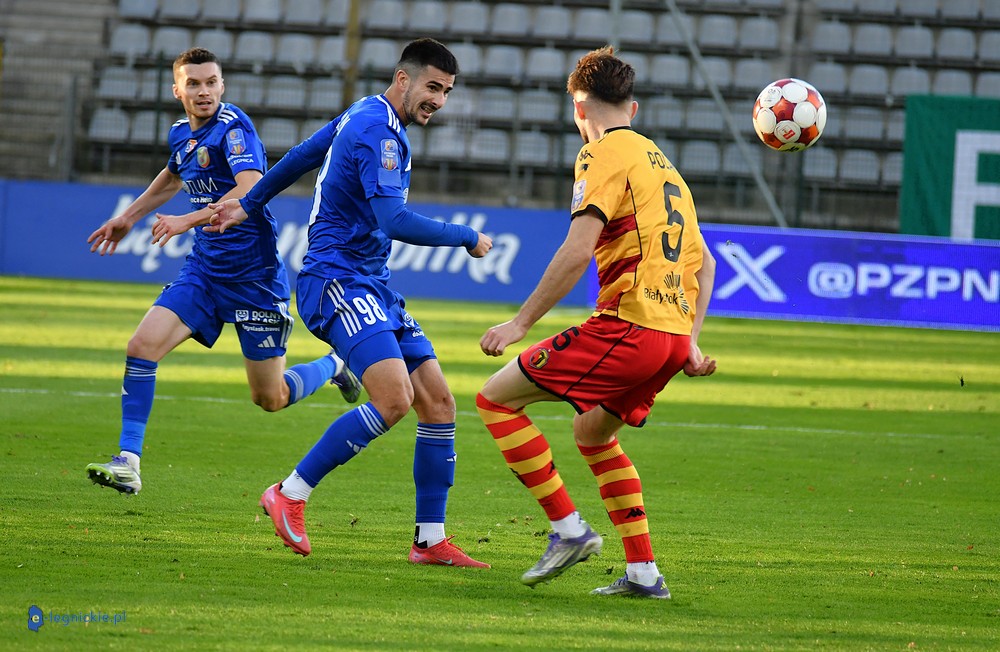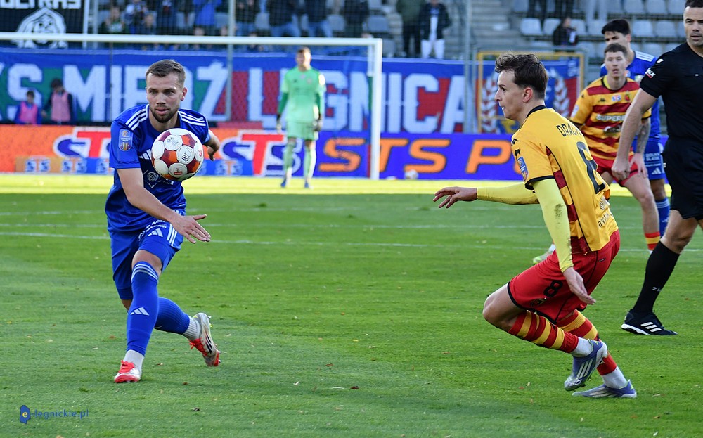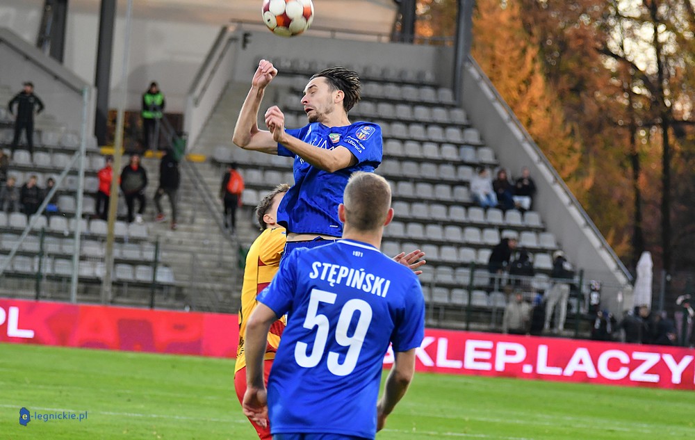 Legniczanie zdołali wyrównać w 36. minucie, kiedy Kamil Antonik uderzył głową i piłka jeszcze odbiła się od Alejandro Pozo i wpadła do siatki.