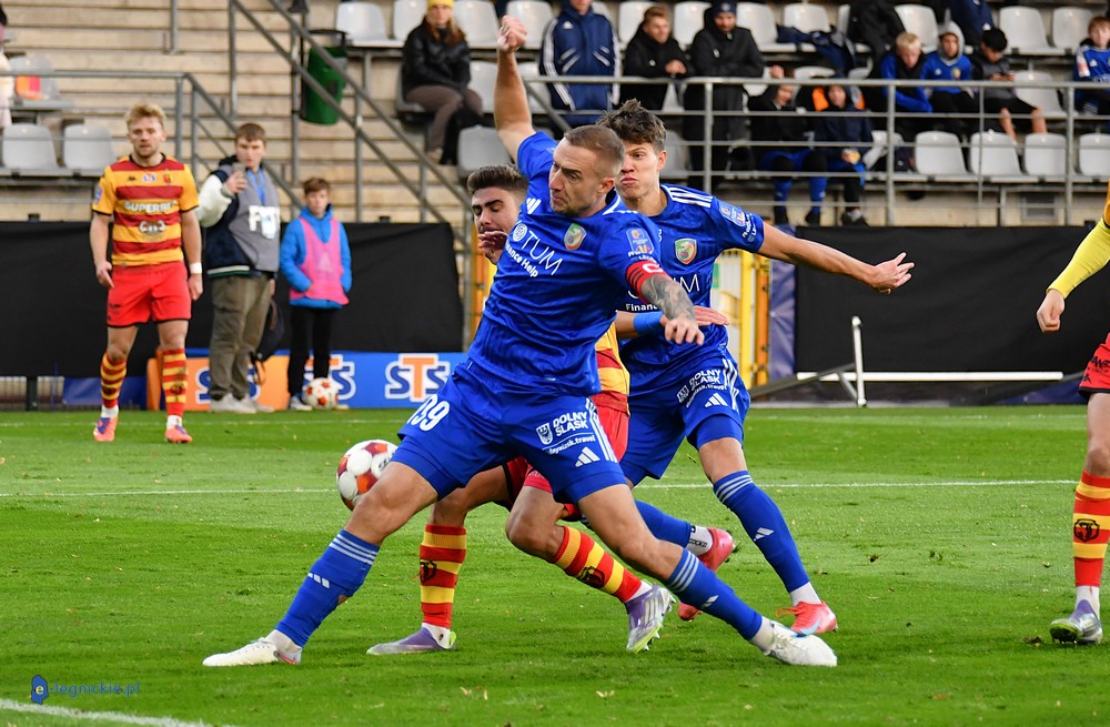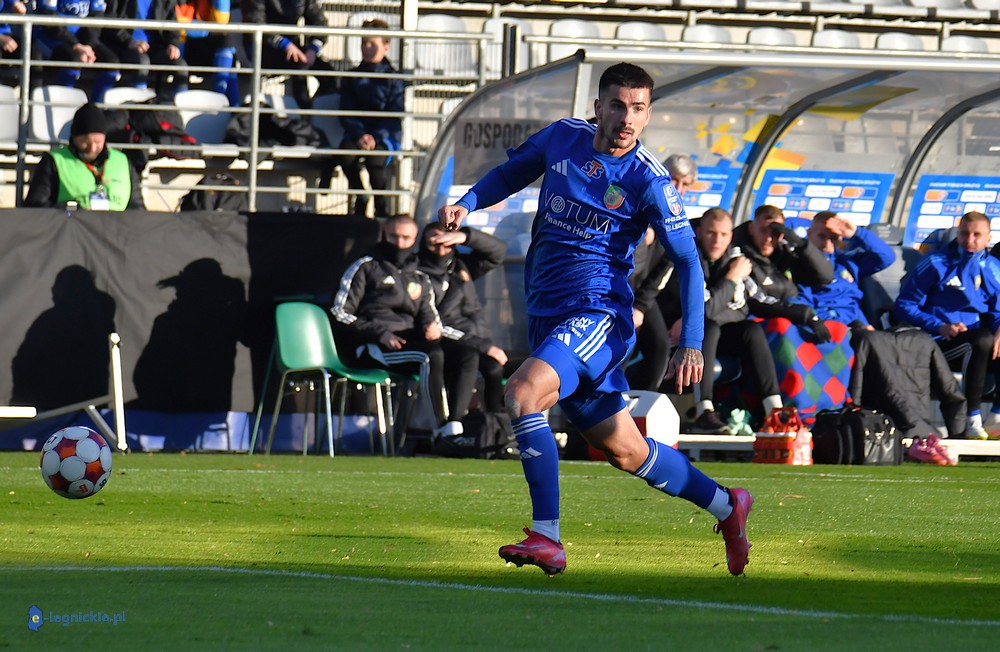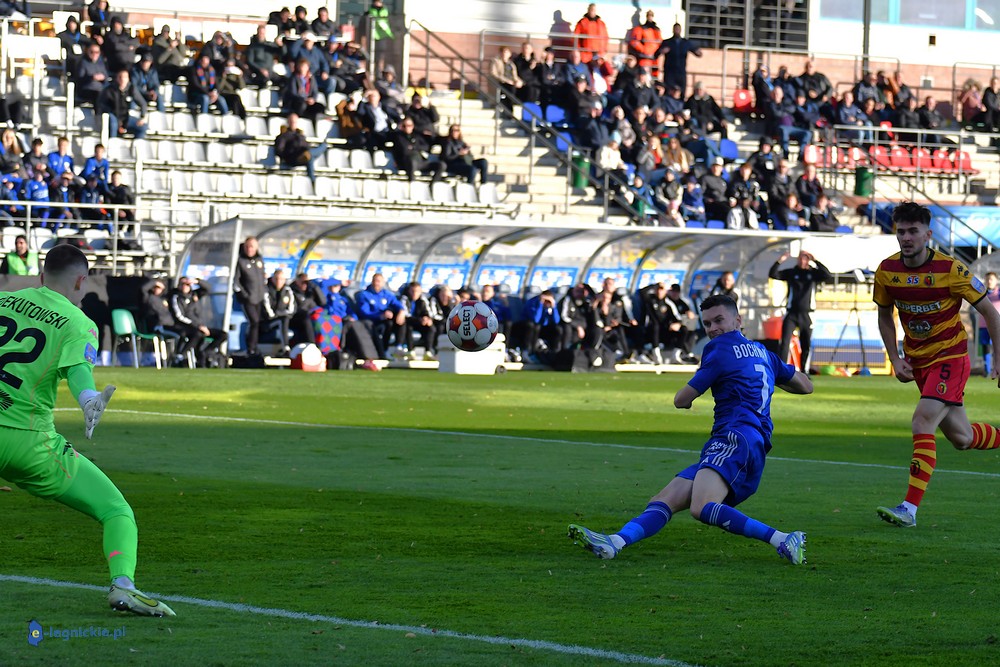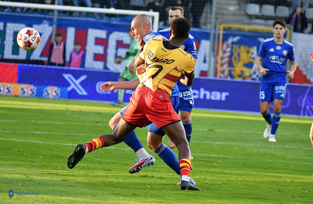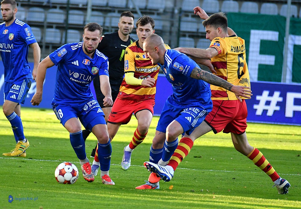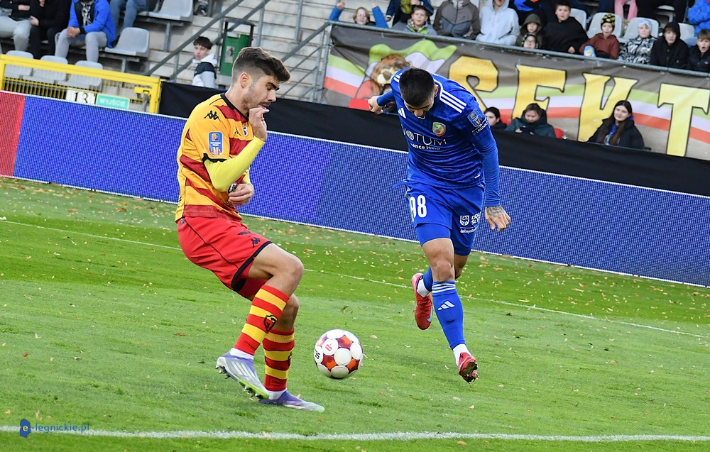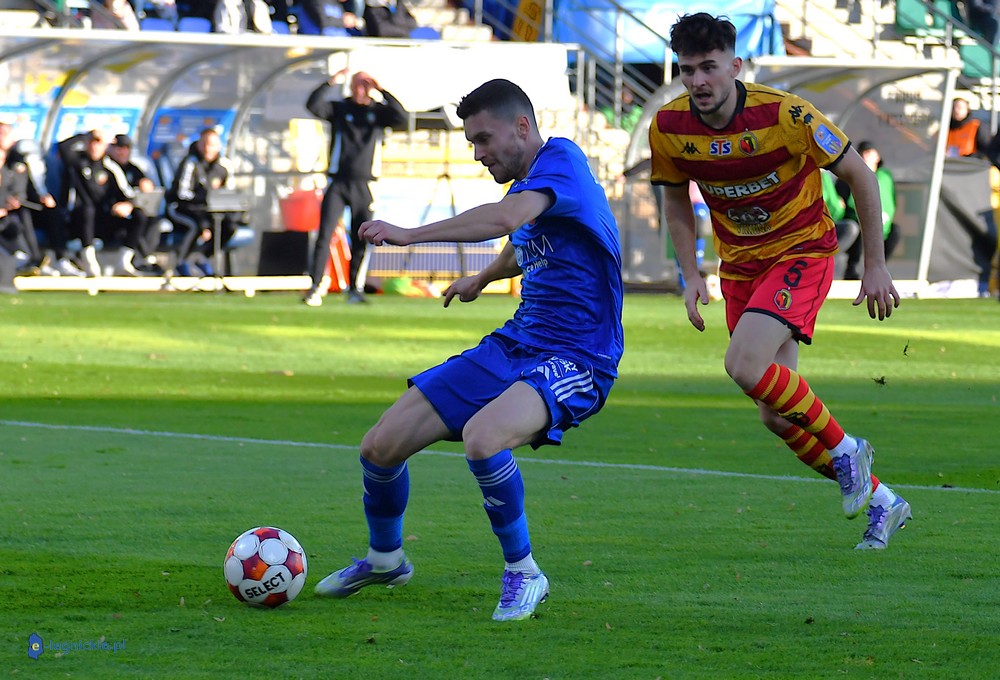 Legniczanie zdołali wyrównać w 36. minucie, kiedy Kamil Antonik uderzył głową i piłka jeszcze odbiła się od Alejandro Pozo i wpadła do siatki.