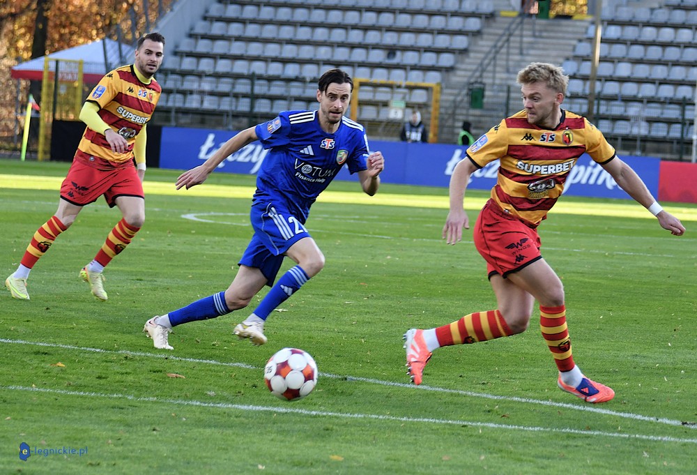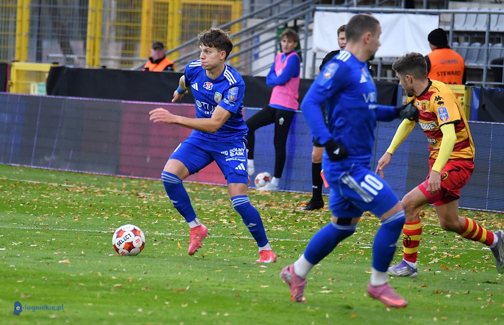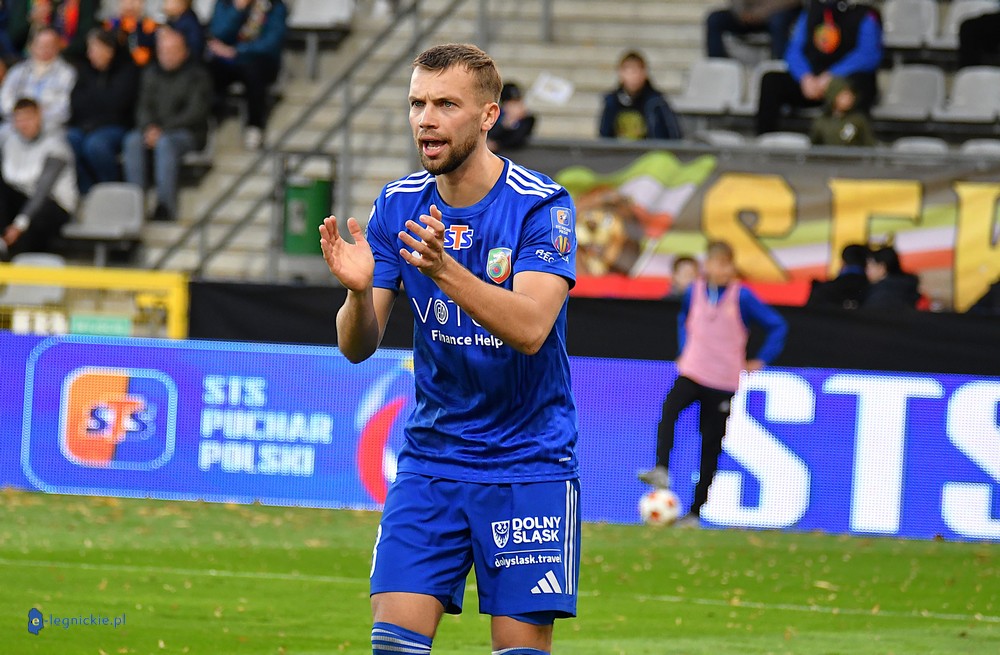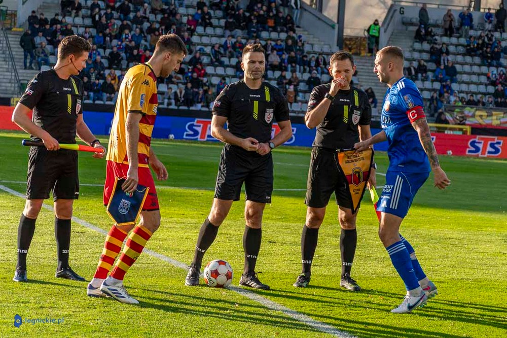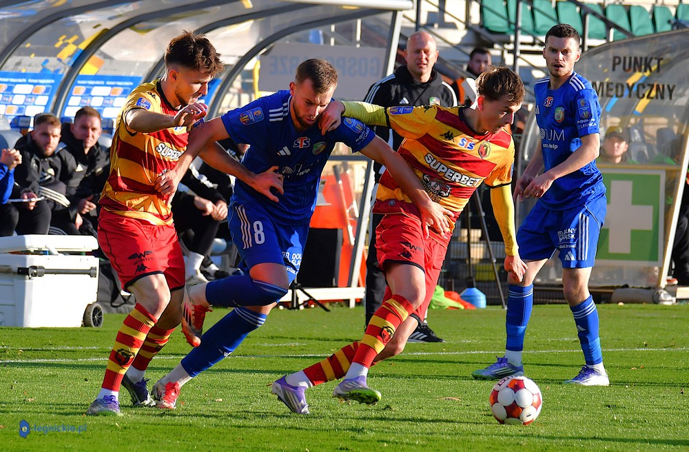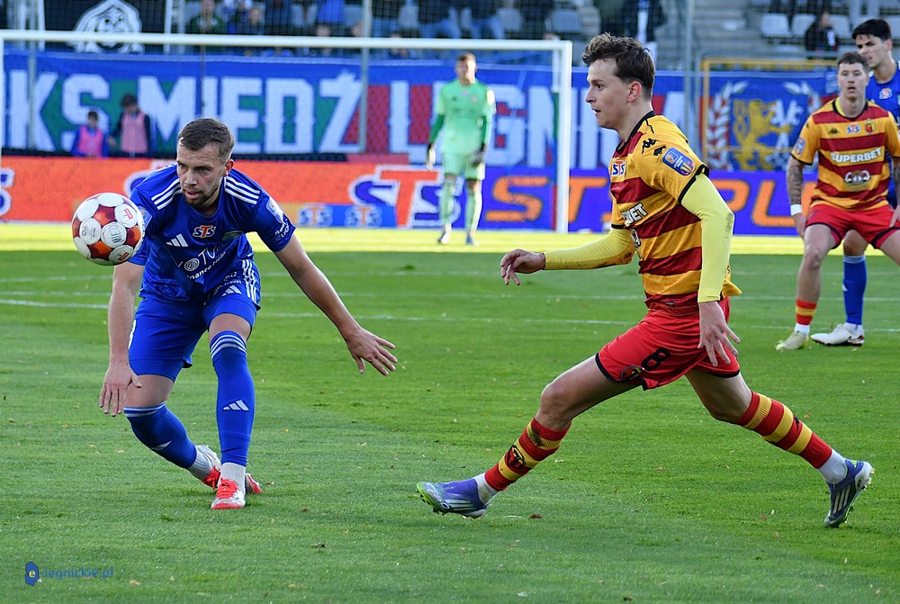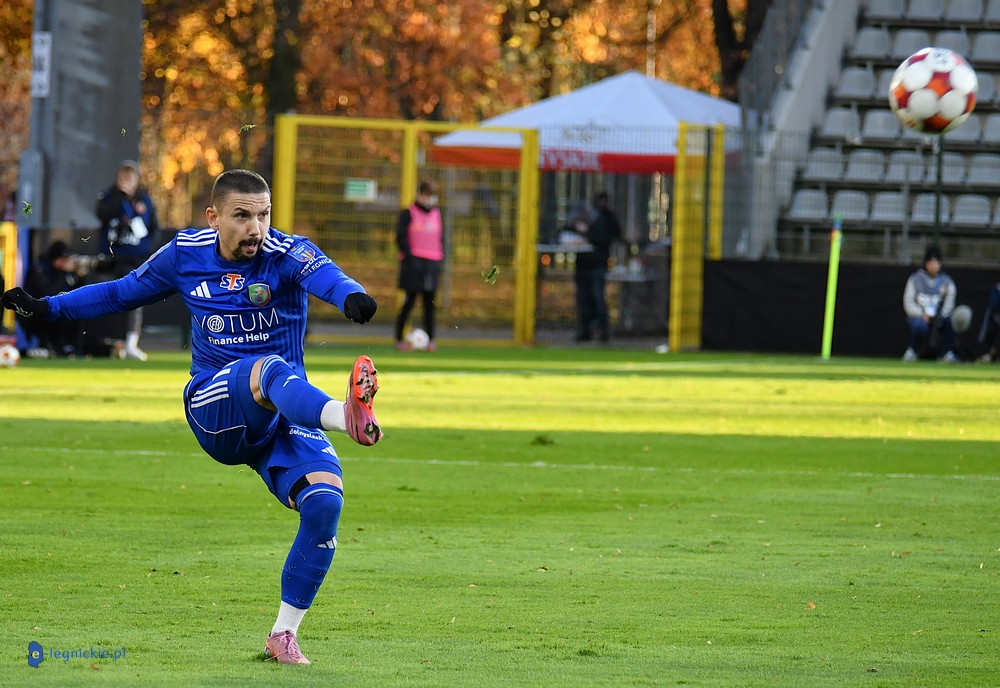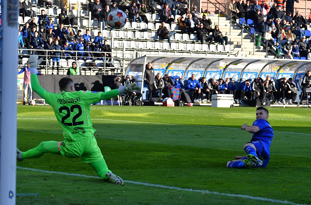 Legniczanie zdołali wyrównać w 36. minucie, kiedy Kamil Antonik uderzył głową i piłka jeszcze odbiła się od Alejandro Pozo i wpadła do siatki.