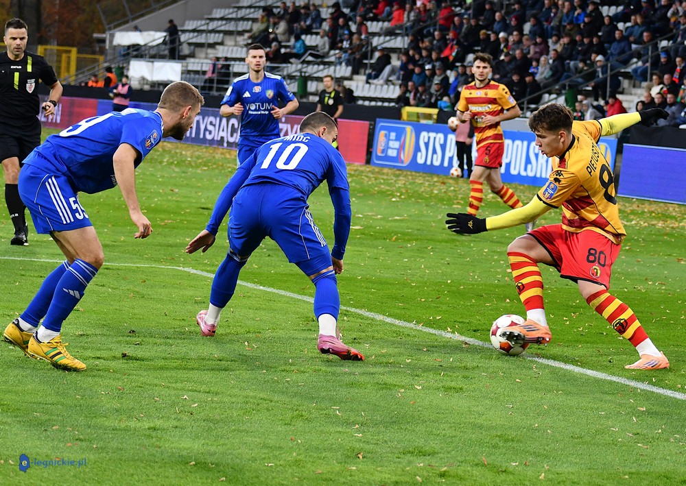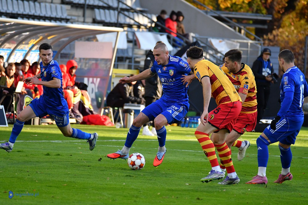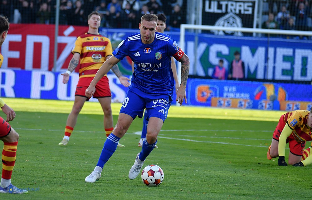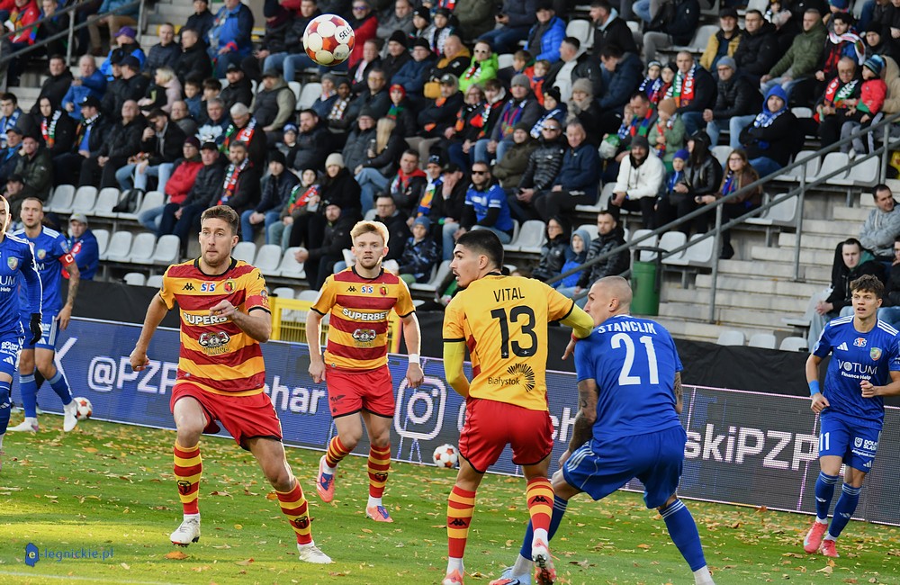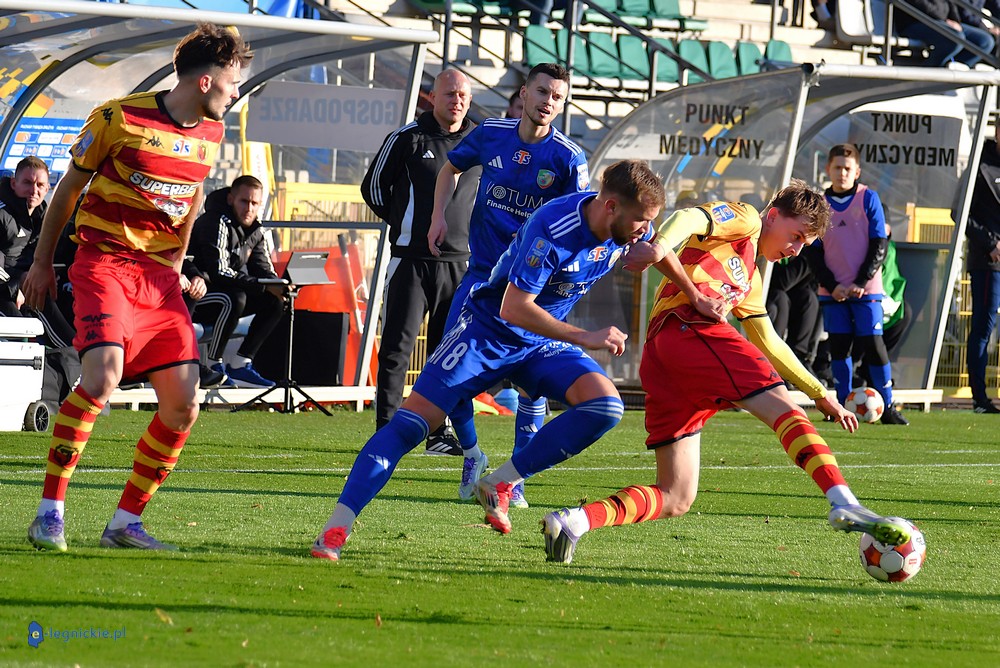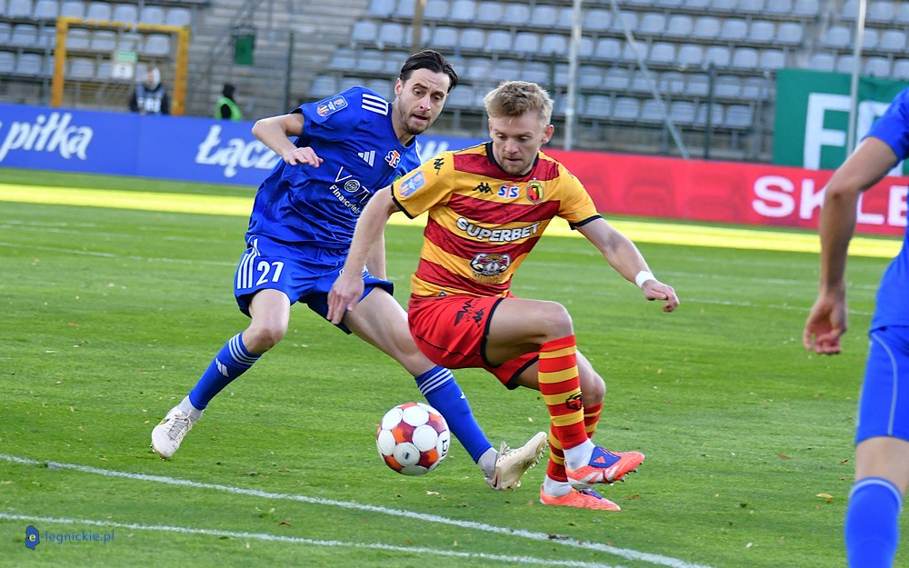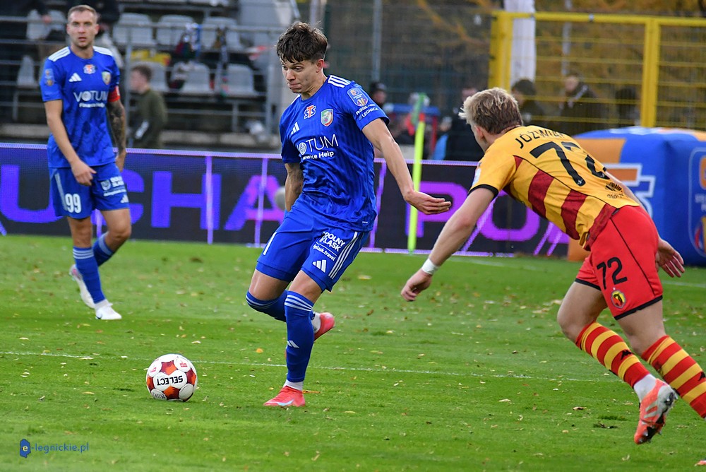 Legniczanie zdołali wyrównać w 36. minucie, kiedy Kamil Antonik uderzył głową i piłka jeszcze odbiła się od Alejandro Pozo i wpadła do siatki.