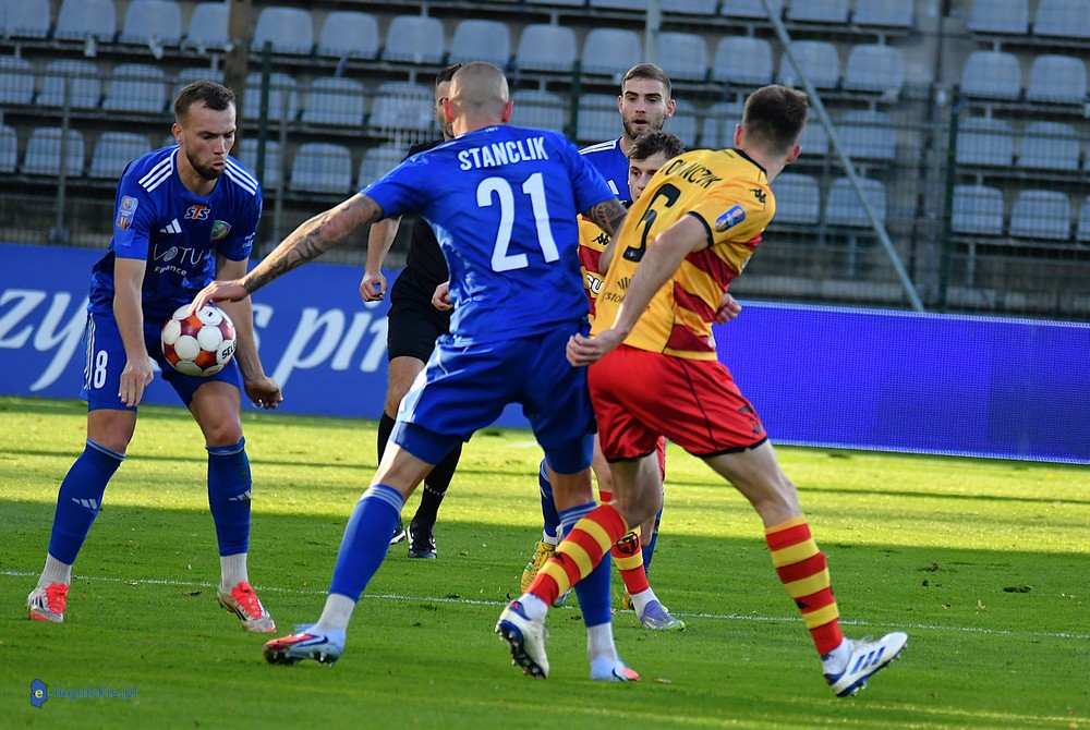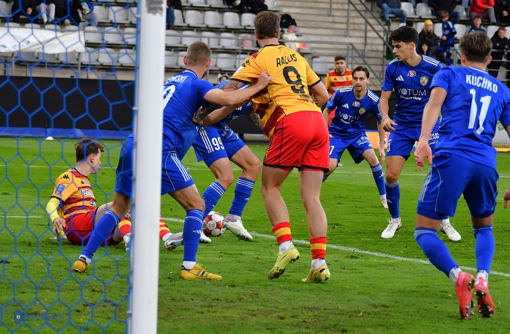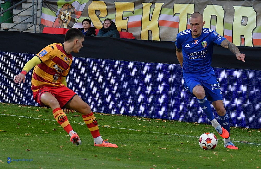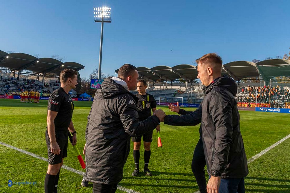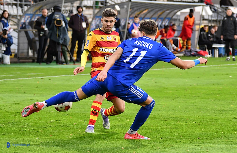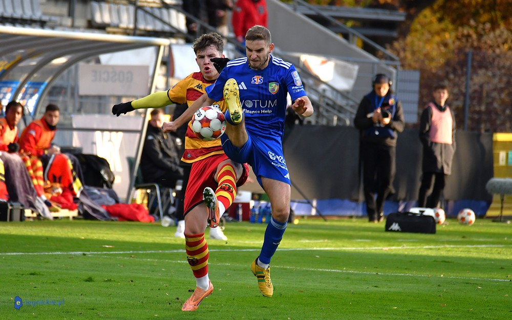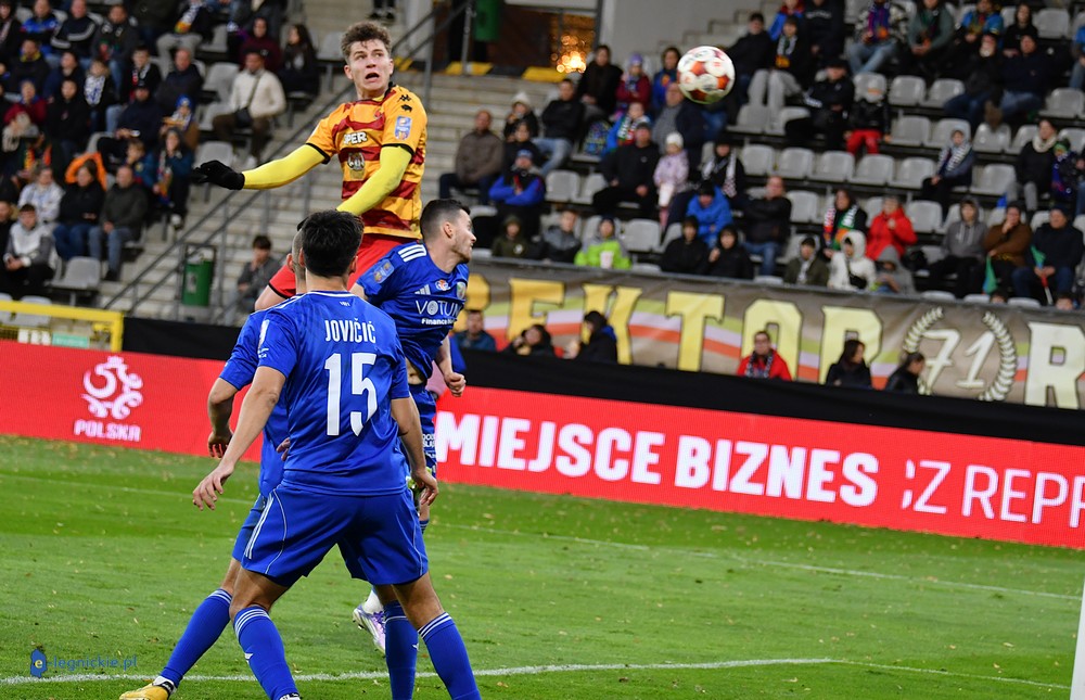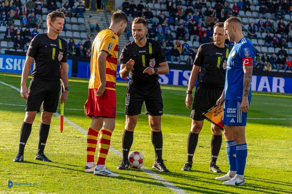 Legniczanie zdołali wyrównać w 36. minucie, kiedy Kamil Antonik uderzył głową i piłka jeszcze odbiła się od Alejandro Pozo i wpadła do siatki.