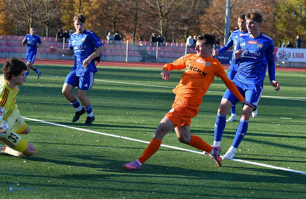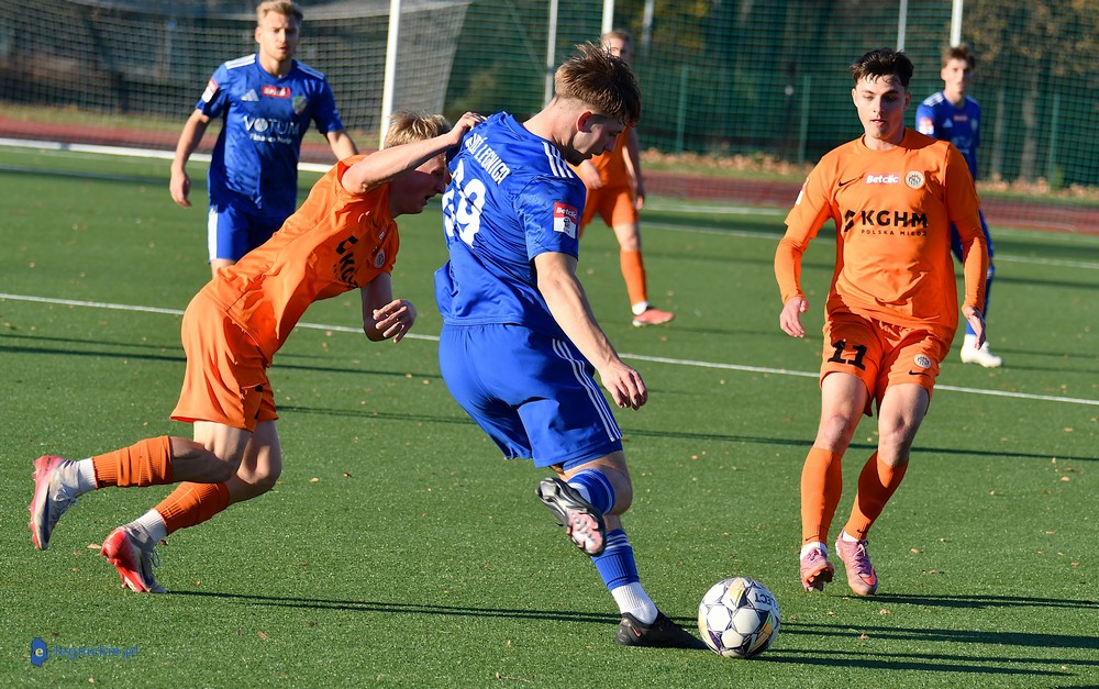 LEGNICA. Rezerwy Zagłębia Lubin już dawno zapomnieli o ligowym falstarcie i krok po kroku przekonują, że chcą być perłą Akademii Piłkarskiej KGHM Zagłębia. W derbowym spotkaniu w Legnicy podopieczni Arkadiusza RADOMSKIEGO nie mieli litości dla rezerw Miedzi do...69 minuty meczu. Wtedy to po koncertowej grze zwłaszcza w drugiej części meczu prowadzili 1:5. Ale potem odpaliła maszyna Miedzi trenera Marcina GARUCHA i po fantastycznym pościgu, "wielbłądach" w obronie gości doprowadzili do remisu.