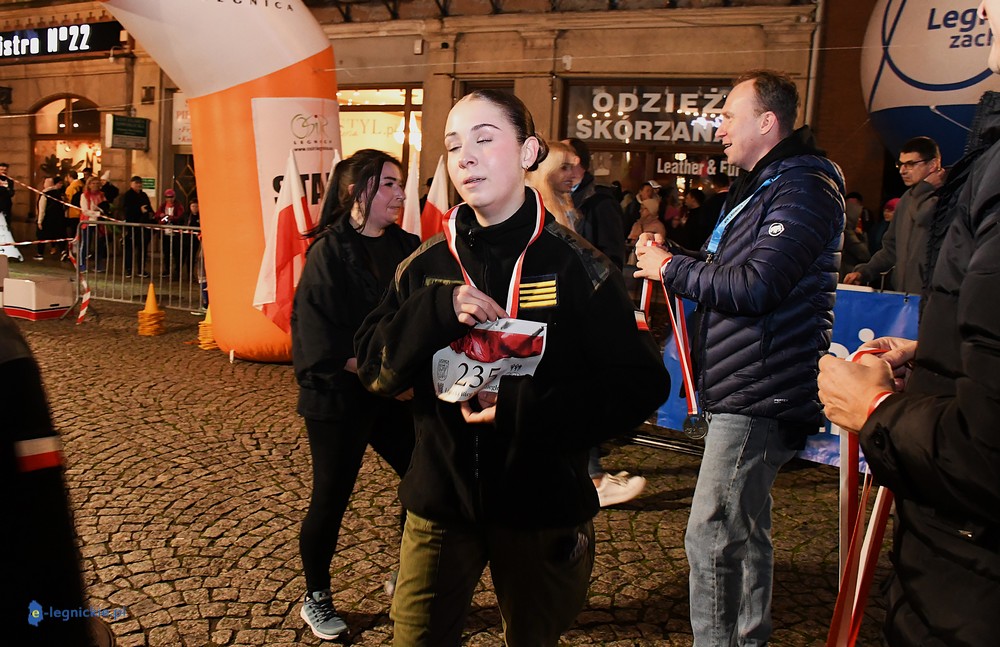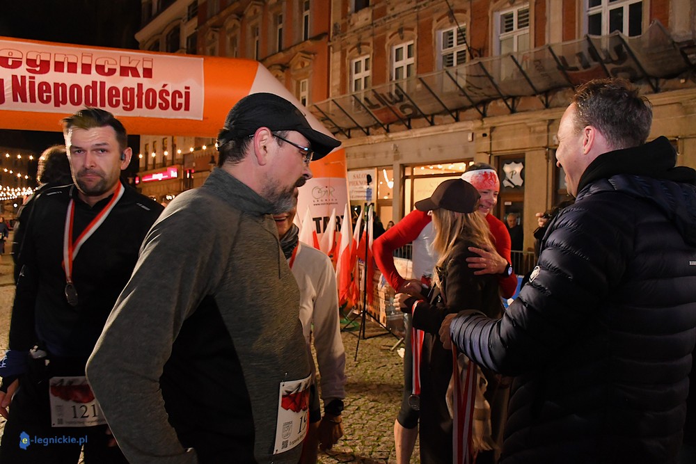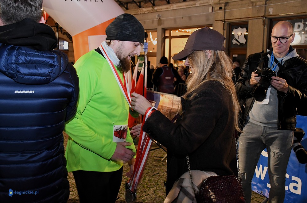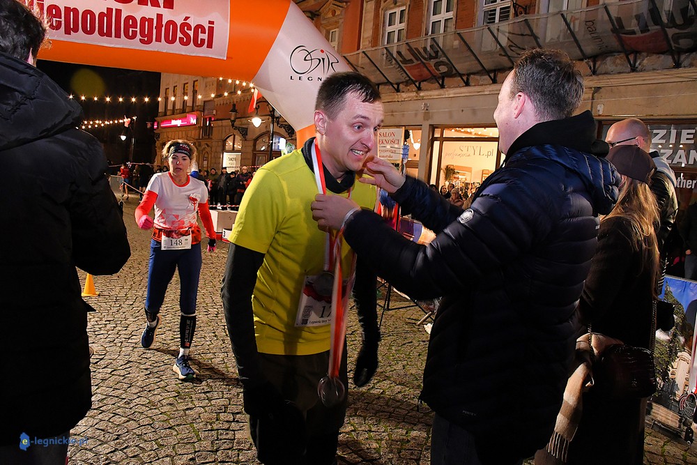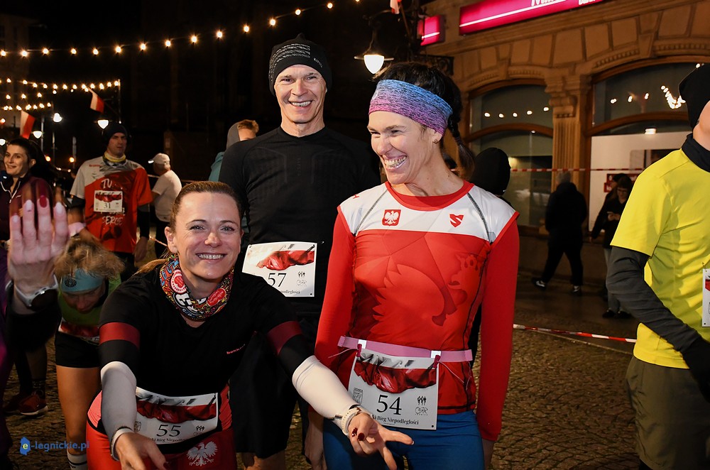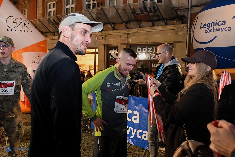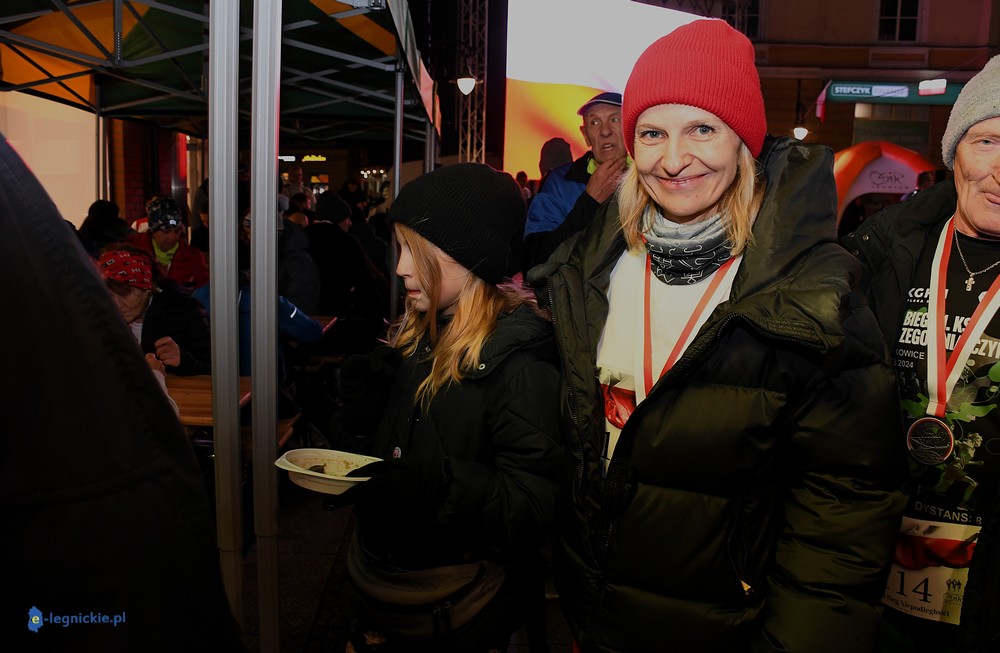 Bieg miał kapitalną, patriotyczną oprawę i nie ukrywajmy, powoli ta oprawa jest znakiem rozpoznawczym legnickiej imprezy biegowej. Podobnie jak nietuzinkowy, solidny medal, który dostawał każdy z biegaczy. Przed zawodami odśpiewano hymn, a przy biegnących uczestnikach trzymano biało-czerwone flagi i zapalone pochodnie. Był także poczęstunek dla mieszkańców, którzy mogli spróbować tradycyjnej gęsiny. Oczywiście nie zabrakło herbaty, bo czuć było mocny chłód.