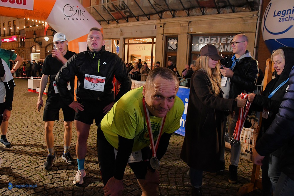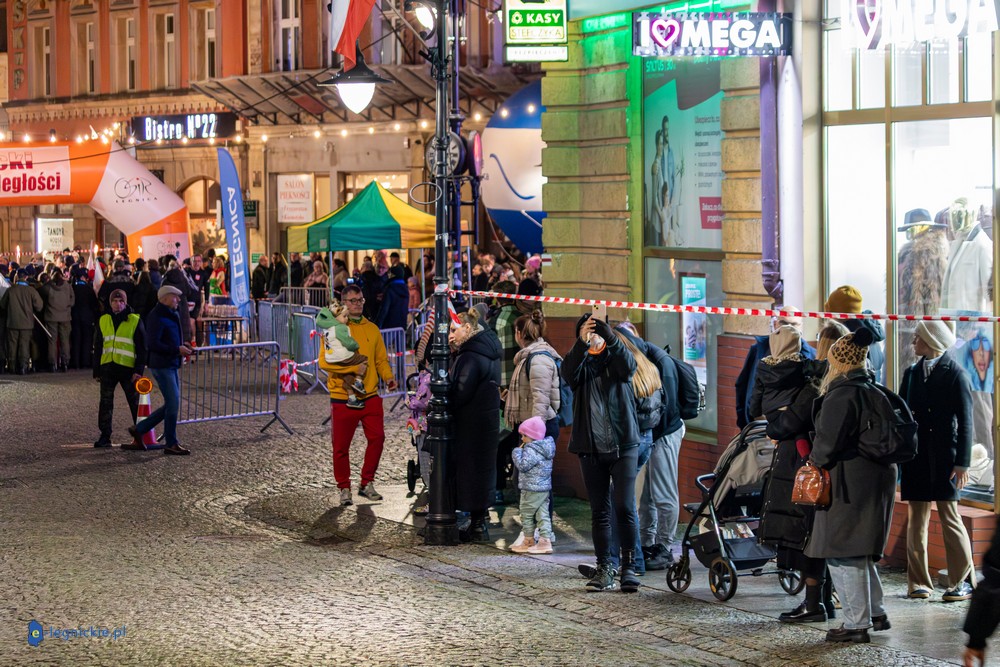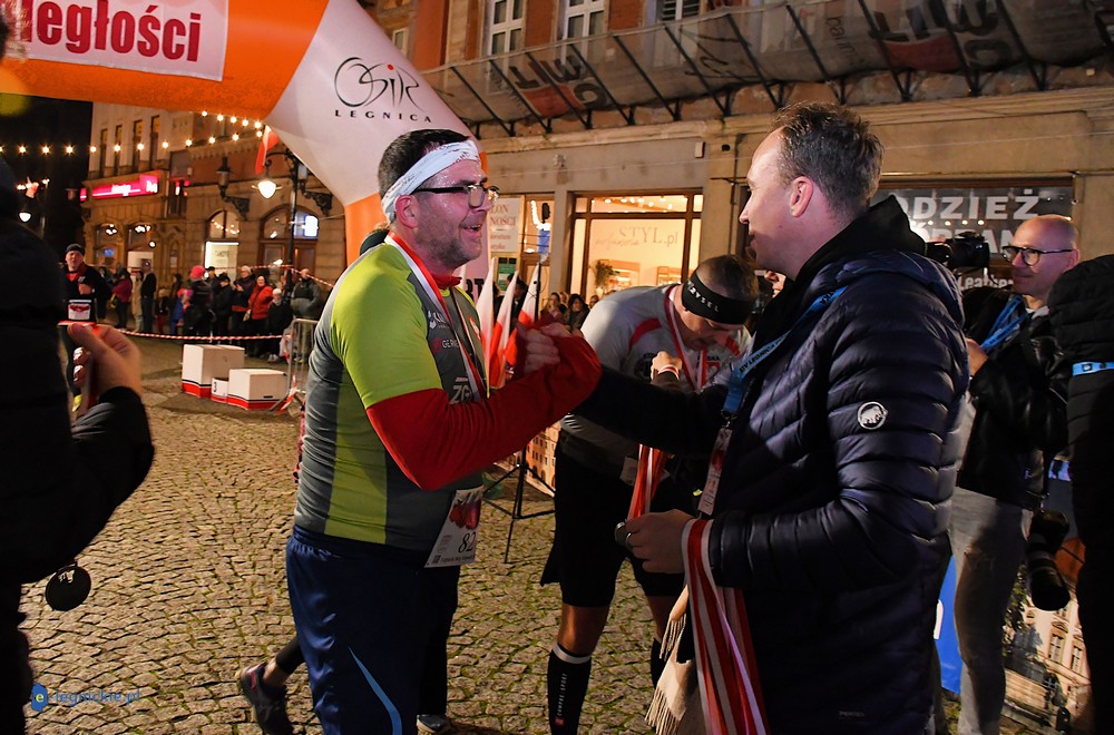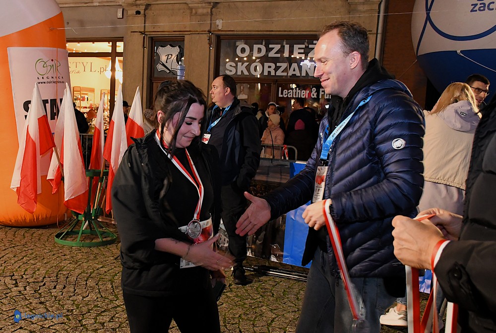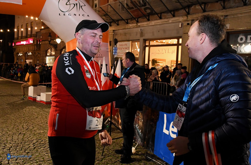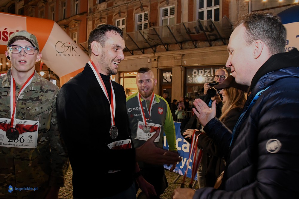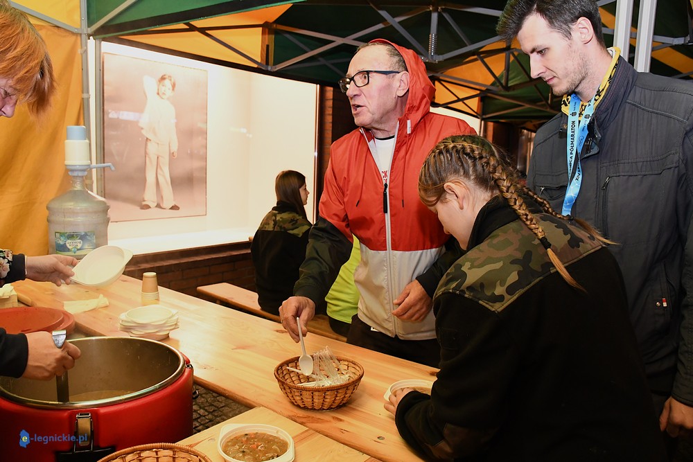Bieg miał kapitalną, patriotyczną oprawę i nie ukrywajmy, powoli ta oprawa jest znakiem rozpoznawczym legnickiej imprezy biegowej. Podobnie jak nietuzinkowy, solidny medal, który dostawał każdy z biegaczy. Przed zawodami odśpiewano hymn, a przy biegnących uczestnikach trzymano biało-czerwone flagi i zapalone pochodnie. Był także poczęstunek dla mieszkańców, którzy mogli spróbować tradycyjnej gęsiny. Oczywiście nie zabrakło herbaty, bo czuć było mocny chłód.