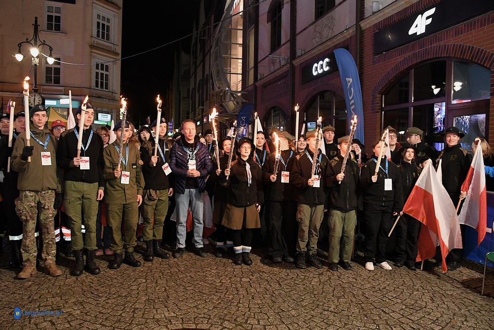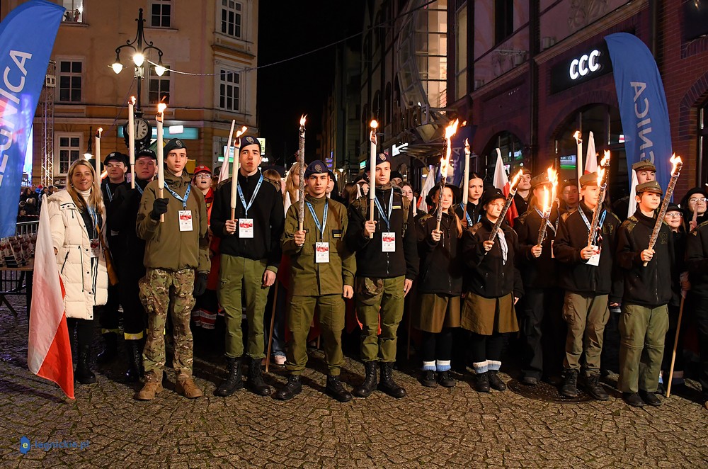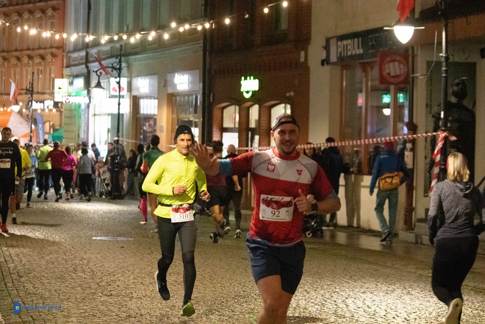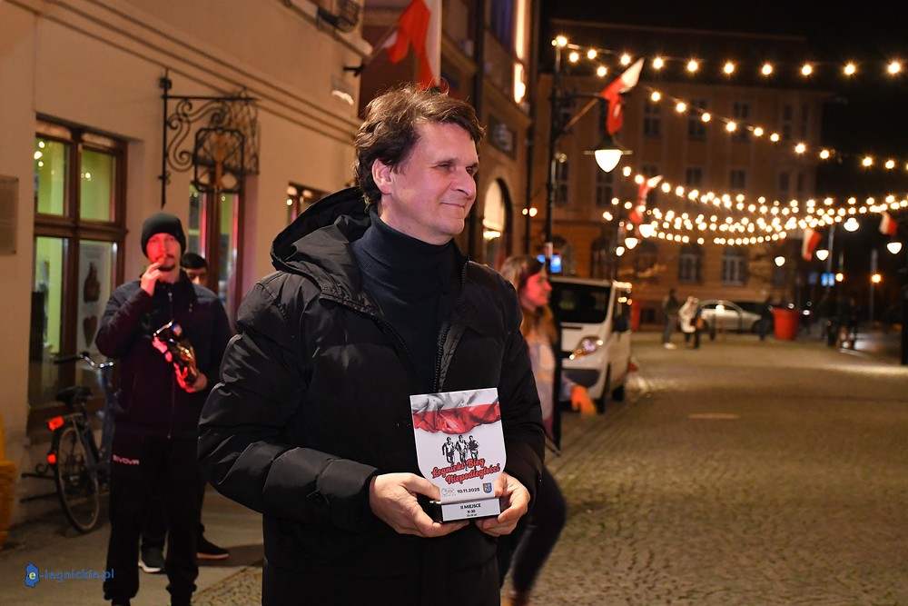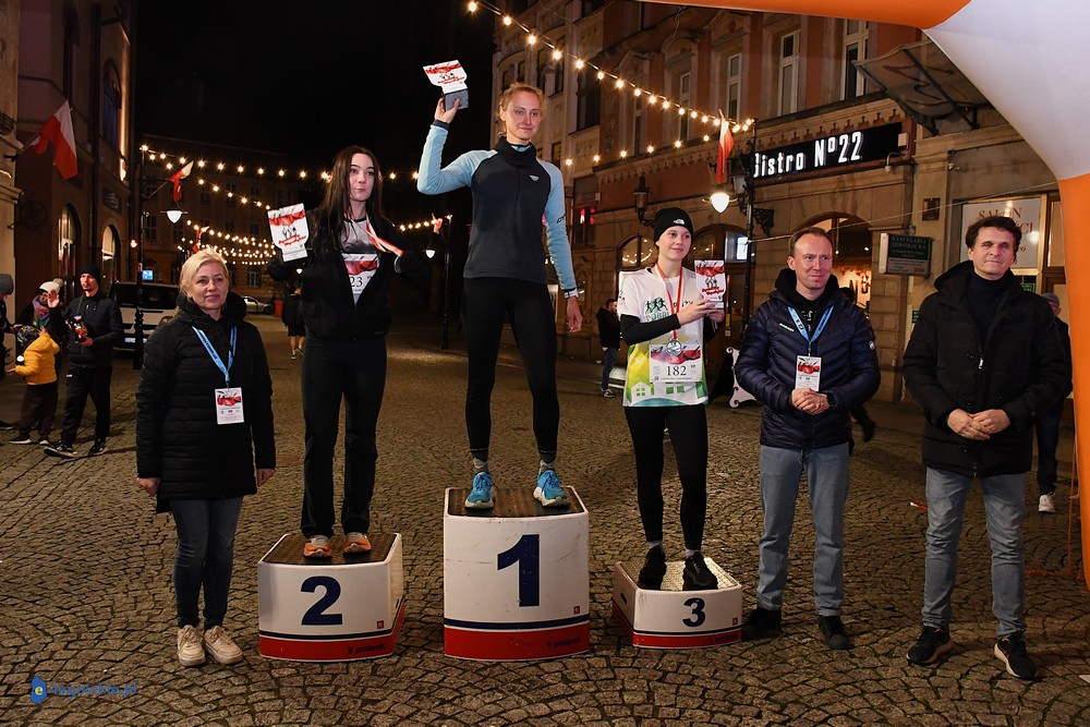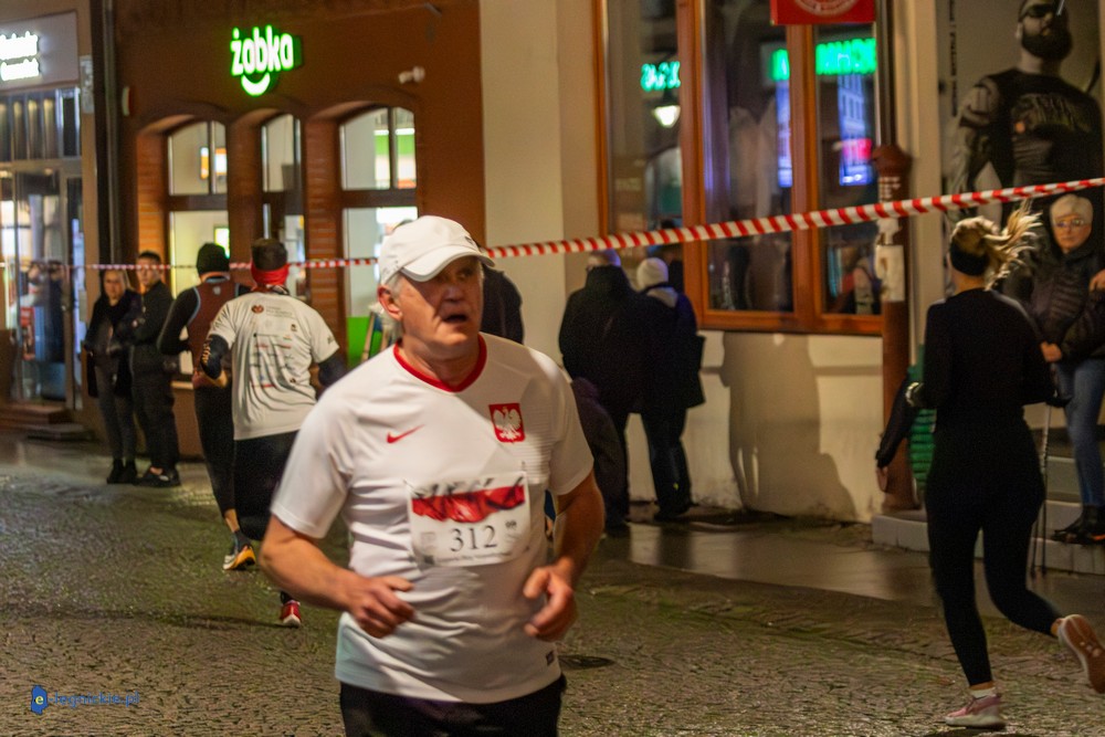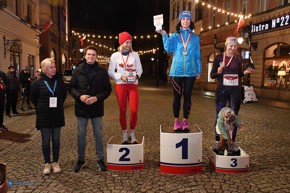 Bieg miał kapitalną, patriotyczną oprawę i nie ukrywajmy, powoli ta oprawa jest znakiem rozpoznawczym legnickiej imprezy biegowej. Podobnie jak nietuzinkowy, solidny medal, który dostawał każdy z biegaczy. Przed zawodami odśpiewano hymn, a przy biegnących uczestnikach trzymano biało-czerwone flagi i zapalone pochodnie. Był także poczęstunek dla mieszkańców, którzy mogli spróbować tradycyjnej gęsiny. Oczywiście nie zabrakło herbaty, bo czuć było mocny chłód.