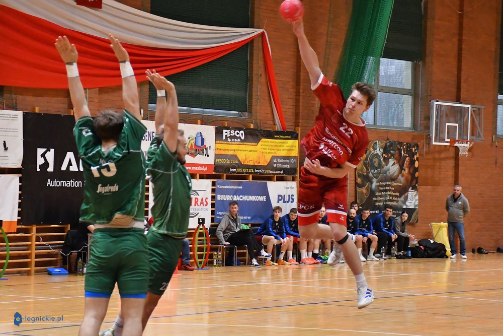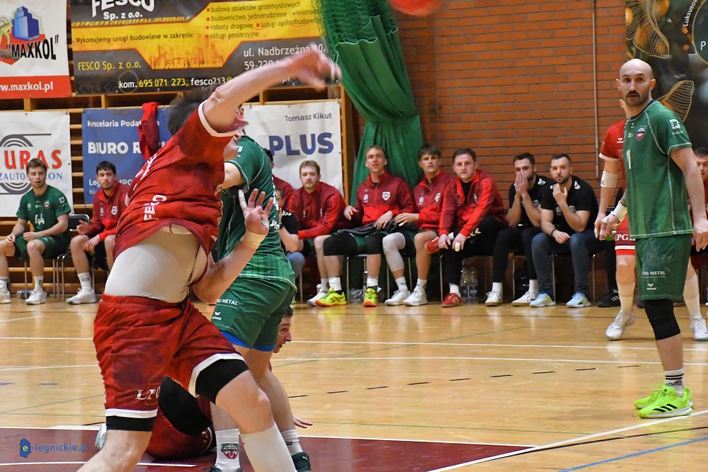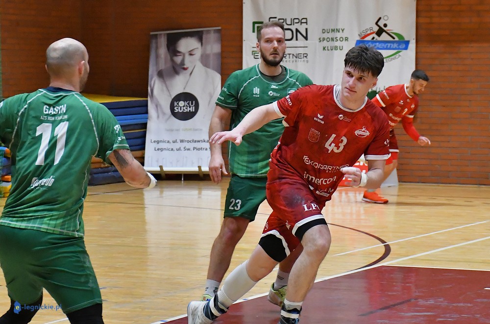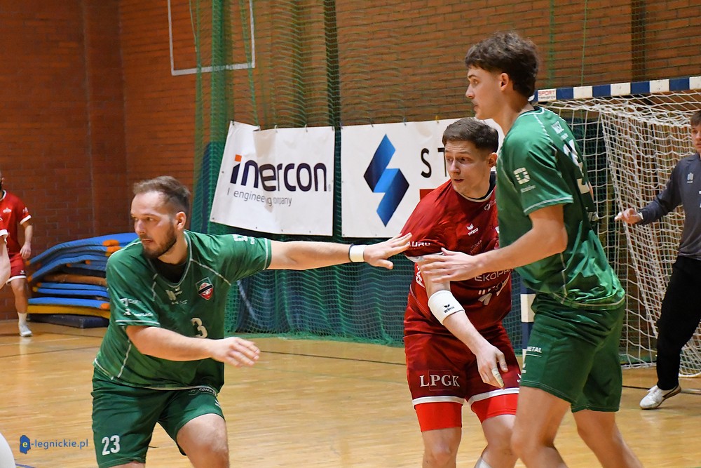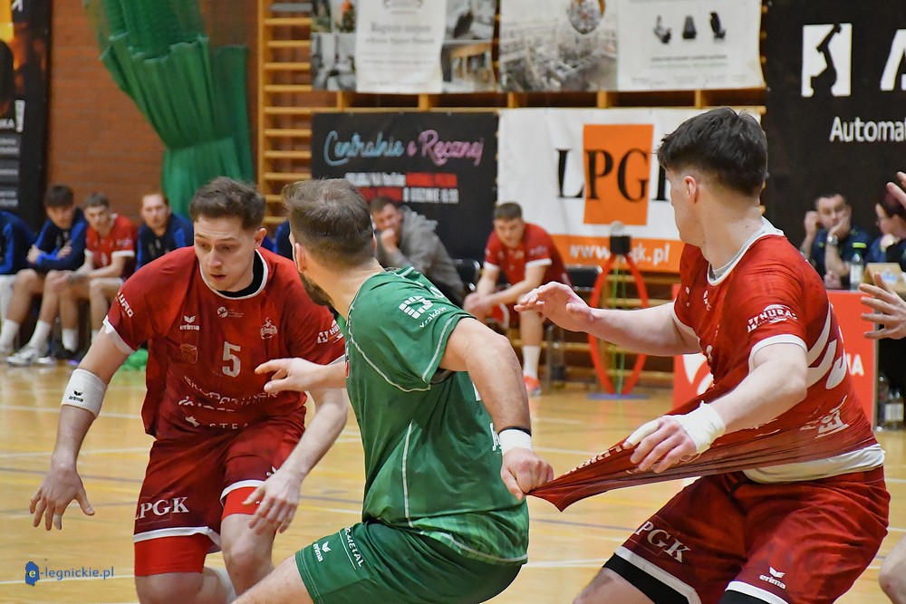 Co prawda w drugiej odsłonie nieco lepiej legniczanie grali w ataku, ale defensywa dalej nie dawała rady zatrzymać świetnych Jakuba Kaciuby czy Filipa Jarosza. Próby zmniejszenie dystansu niewiele dały, bo po 40 minutach wciąż akademicy prowadzili 9-trafieniami, a później jeszcze powiększyli przewagę.