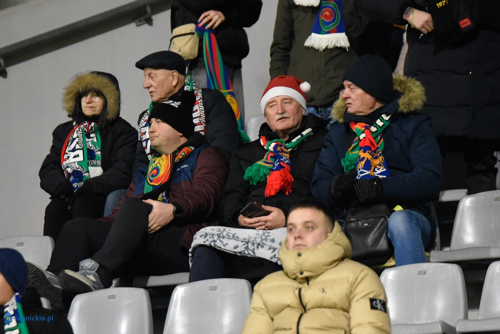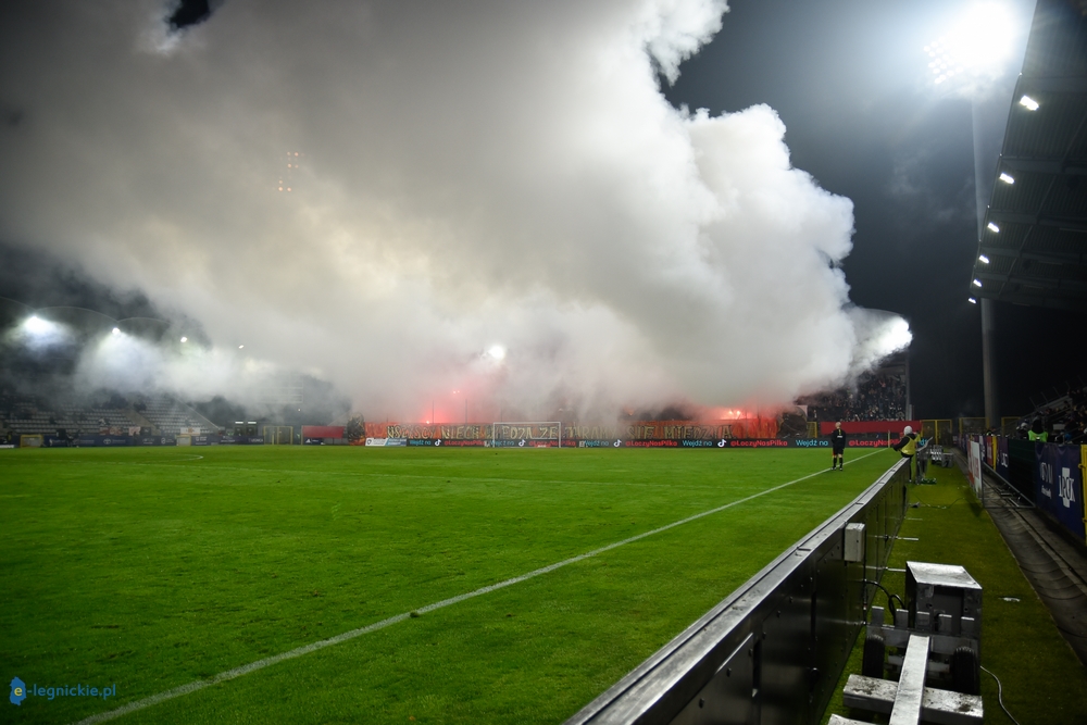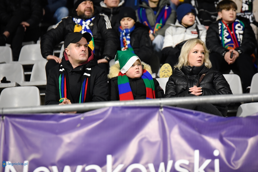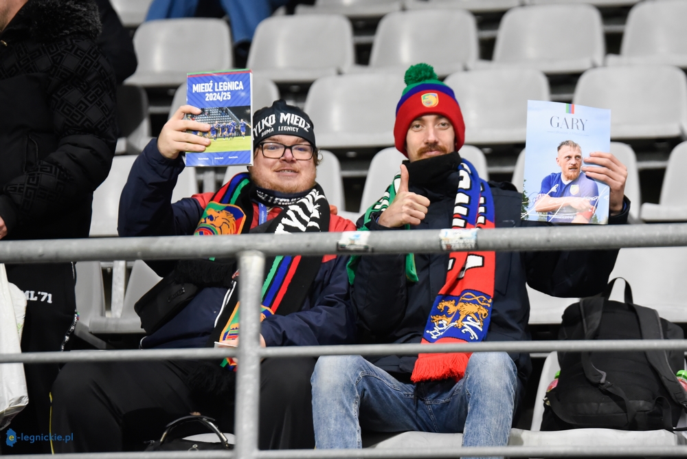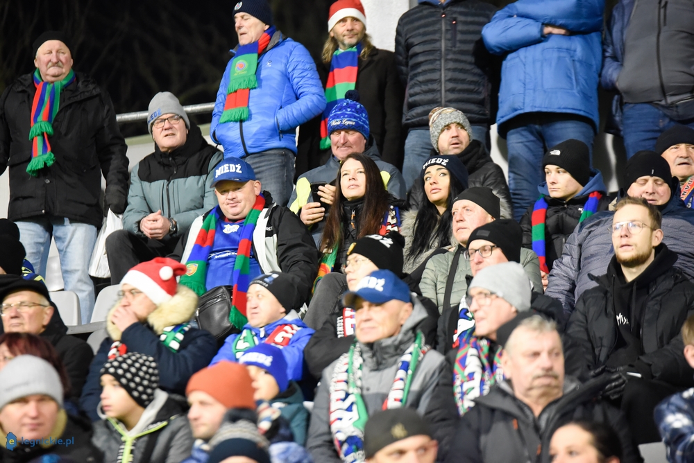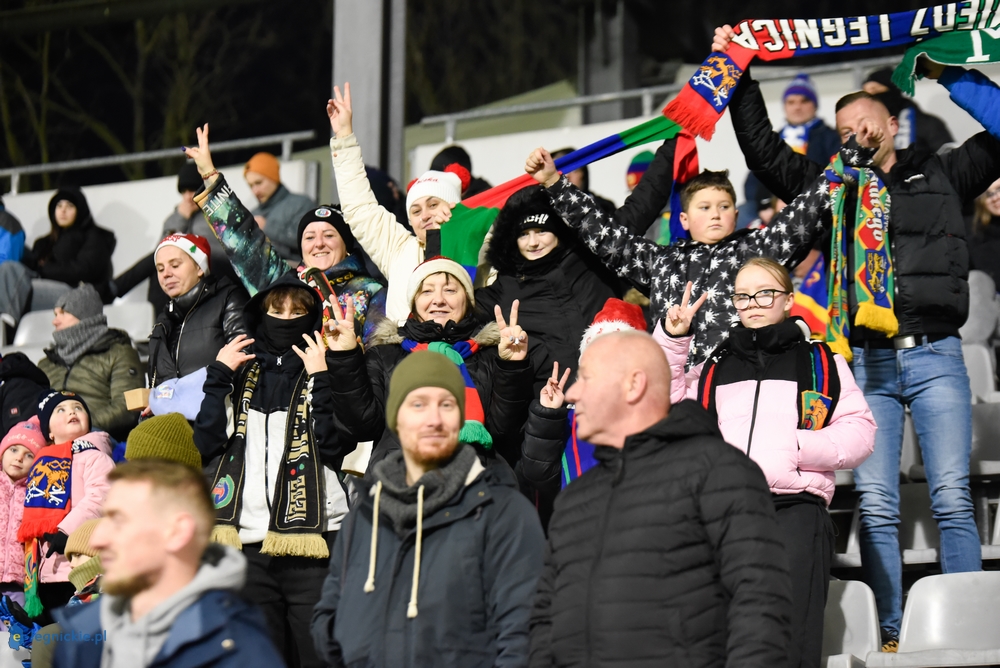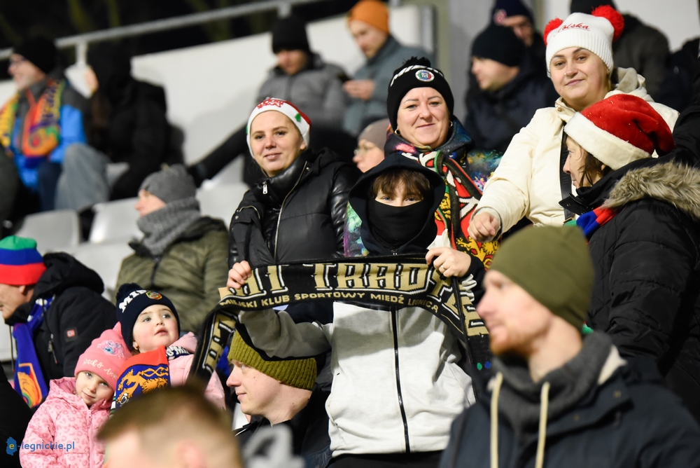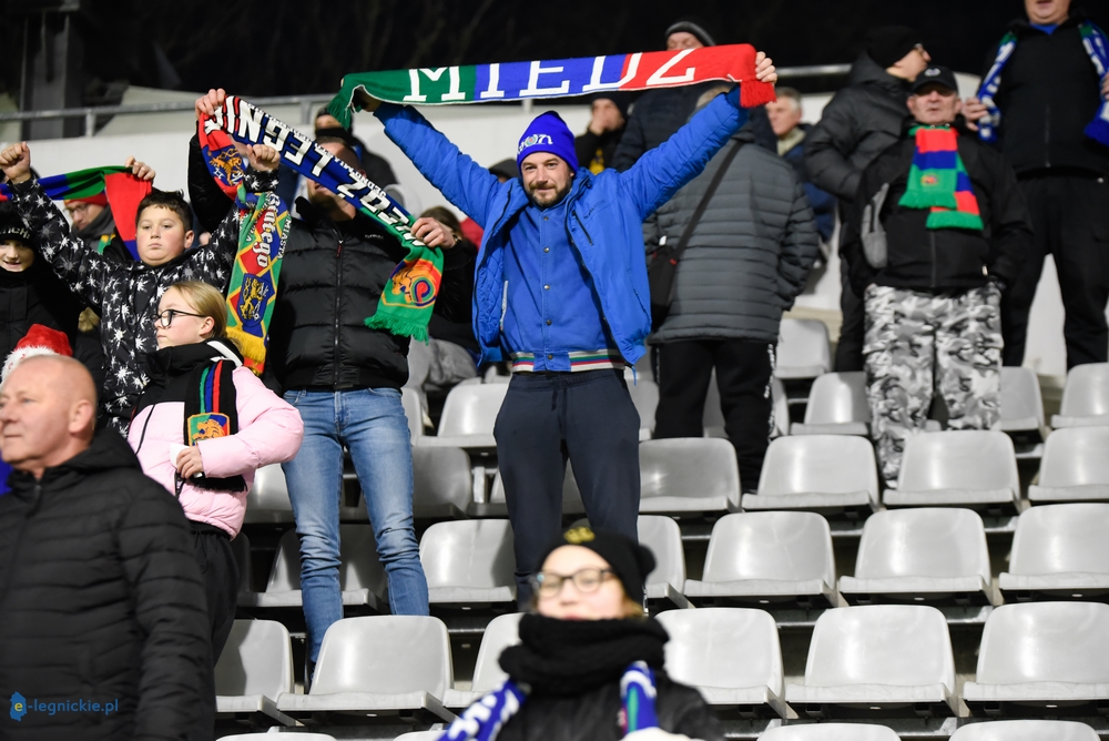 LEGNICA. To było iście fajerkowe pożegnanie piłkarskiego 2025 roku. 3500 widzów zasiadło na trybunach miejskiego stadionu podczas meczu Miedzi z Odra Opole. Jak na warunki pogodowe i klasę rywala frekwencyjny wynik więcej niż przyzwoity... Licznie przybyli fani z Opola, którzy musieli sobie radzić bez wsparcia z Lubina, a z kolei po drugiej stronie chyba padł rekord frekwencji kibicowskiej na sektorze C.
