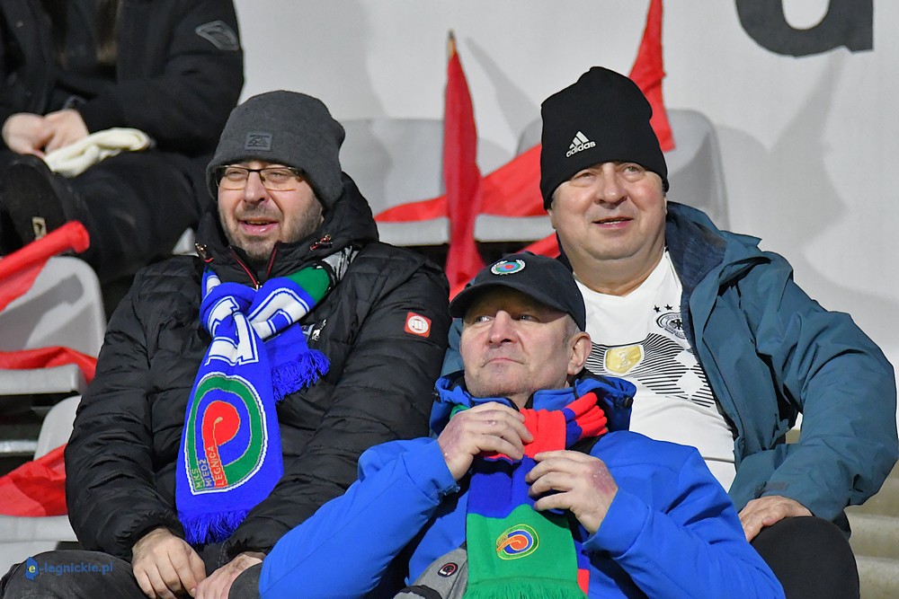 Mniejsza frekwencja ale "ciszy grobowej" na trybunach nie było, w czym zasługa fanów obu klubów. Z Głogowa przyjechało ok. 300 kibiców i praktycznie ani przez moment nie zamilkli. Nie zabrakło racowiska i flagowiska.