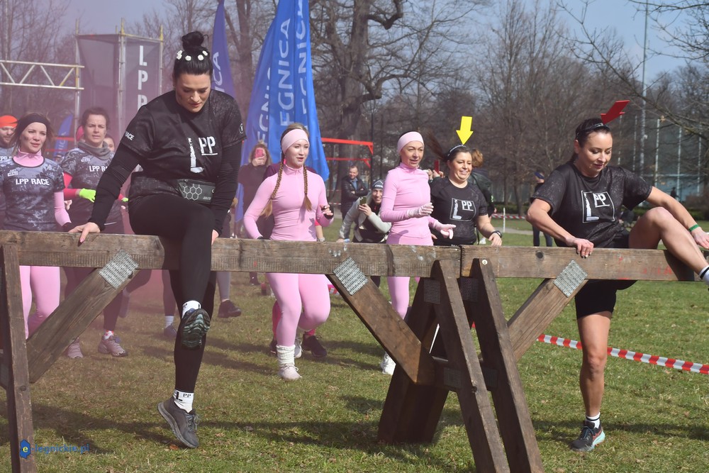 Organizatorzy przygotowali kilka przeszkód jakich jeszcze na LPP RACE nie było, między innymi: podwieszona lina, 3-metrowy low rig, drabina salmona czy szczęki v.3. I trzeba przyznać, że legnicki Park Miejski włącznie z Kaczawą, którą musiano forsować stał się znakomitym poligonem dla biegiwych twardzielek i twardzieli...
