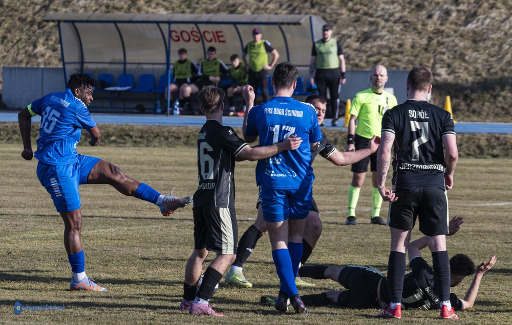 Mecz toczył się w dobrym tempie. Sokół, którego trenerem jest Grzegorz LICHWA, były piłkarz Odry Ścinawa, zagrał otwartą piłkę i za swoją otwartość zapłacił wysoką cenę. Niemniej to co Sokół pokazał w Ścinawie pozwala na stwierdzenie, że Sokół nie będzie walczyć rozpaczliwie o zachowanie ligowego bytu.