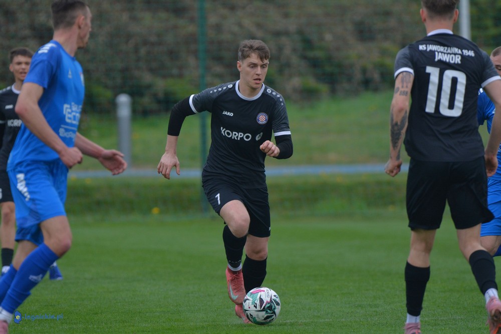 Lepiej w spotkanie weszli goście z Jawora, którzy zawitali na zawody z kilkoma absencjami w składzie. W pierwszych minutach dwukrotnie z lewego skrzydła w pole karne zagrywał Sebastian Sado, lecz ani Damian Danaj, ani Michał Zachaczewski nie doszli do piłki po jego podaniach.