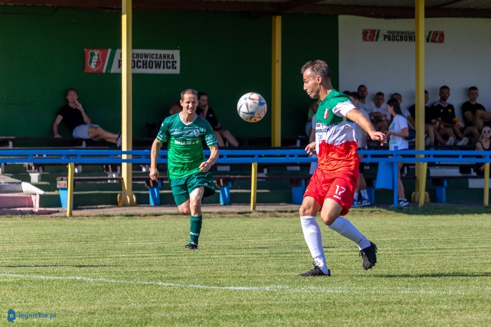 PROCHOWICE. Mecz o mistrzostwo A-klasy pomiędzy rezerwami Prochowiczanki Prochowice i Sokoła Krzywa przyniósł grad goli i efektowną wygraną prochowiczan. Trzecia wygrana Prochowiczanki umocniła zespół w strefie środkowej ale jak się wydaje to kwestia czasu kiedy ten zespół zamelduje się w czubie tabeli... Głośny doping reaktywowanego fan clubu i...kolejne gole grającego prezesa Jana RUSINA. Dokładnie gole nr 8 i 9 . Nic tylko pozazdrościć ! Gospodarze zagrali w nowych strojach ale nie to było kluczem do wygranej.