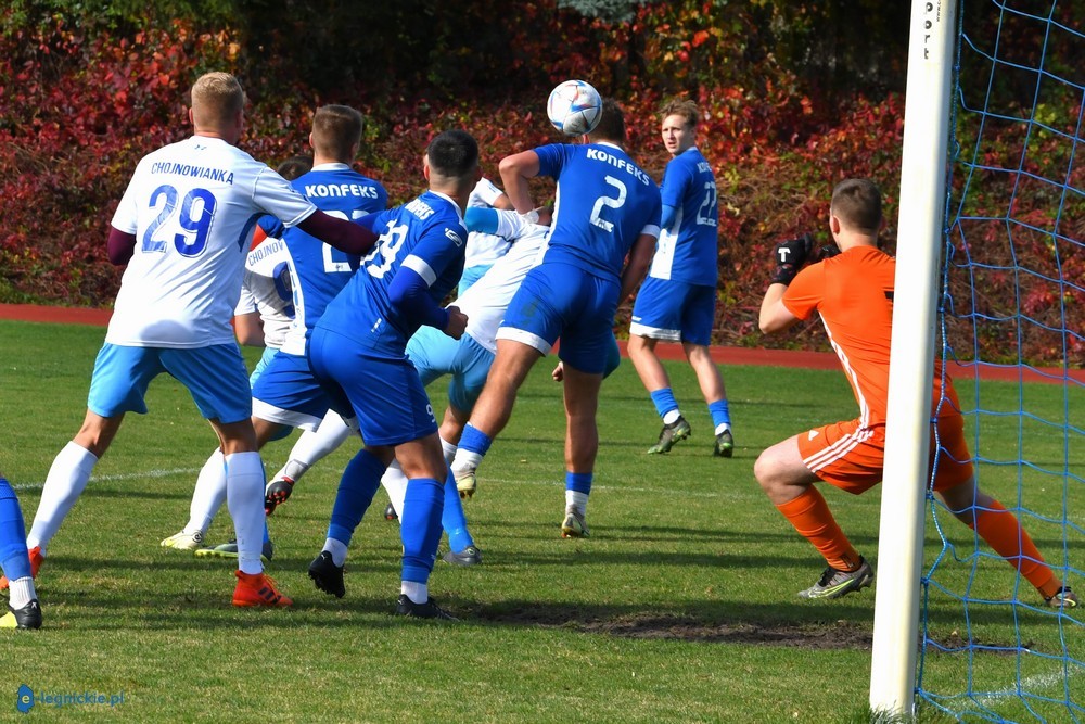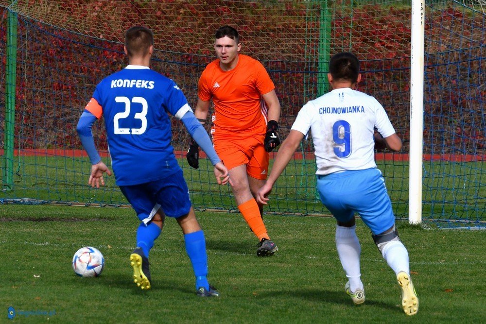 CHOJNÓW. To był szlagier legnickiej klasy okręgowej. Na boisku konfrontacja dwóch zespołów, które nadają mocno jakości tej klasie rozgrywkowej. Chojnowianka po golu w doliczonym czasie gry wygrała 3:2 (0:0). Oj działo się w tym meczu naprawdę dużo. Już w 23 minucie boisko opuścił po dwóch żółtych kartkach zawodnik Konfeksu Mateusz Korczyński. I w zasadzie w tym momencie rozpoczęło się meczycho. Po bezbramkowej pierwszej połowie grający w osłabieniu goście objęli prowadzenie w 52 minucie...